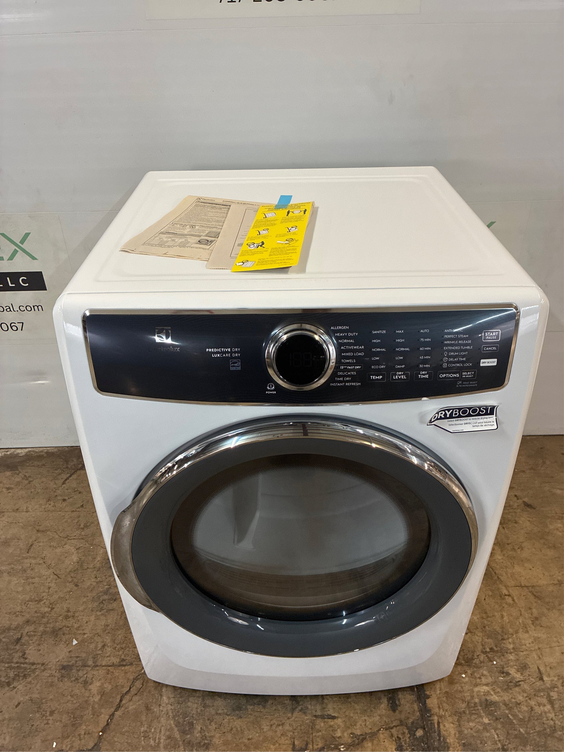 The Electrolux front load electric dryer with LuxCare Dry uses an advanced moisture sensor to prevent over or under-drying. The Instant Refresh cycle allows you to remove wrinkles and refresh clothing in just 10-minutes. Gently tumbles your clothes without heat to keep them tangle-free perfect for when you cannot remove clothes right after the cycle ends. Compatible with Electrolux's Stacking Kit (model: STACKIT7XL) and Pedestal (model: EPWD257UIW).. Amperage (A): 30 A. Appliance Category: Dryer. Appliance Series: Not Applicable. Appliance Type: Electric Dryer. Capacity - Dryer (cu. ft.): 8. Color/Finish: White. Color/Finish Family: White. Control Type: LED. Door Material: Plastic. Door Shape: Round Door. Door Style: Reversible. Dry Cycles: Damp Dry,Delicates,Extended Tumble,Heavy Duty,Mixed Loads,Quick Dry,Standard Dry Cycle Only,Timed Dry,Touch Up,Towels and Sheets. Dryer Drum Material: Painted Steel Drum. Dryer Features: Automatic Temperature Control,Delay Start,Digital Cycle Countdown,Door Window,Four-Way Venting,Front Control,Interior Light,Sensor Dry,Timed Dry. Dryer Fuel Type: Electric. Exhaust Vent Location: Back. Hardware Color/Finish: White. Hardware Color/Finish Family: White. Included: Power Cord. Lint Filter Location: Front. Matching Washer Type: Front Load Matching. Number of Drying Cycles: 10. Number of Drying Temperatures: 5. Pedestal Model#: EPWD257UTT. Product Weight (lb.): 126 lb. Returnable: Non-Returnable. Stackable: Stackable. Stacking Kit Model#: STACKIT7X. Steam Function: Steam. Vent Type: Vented. Voltage (volts): 240. Certifications and Listings: Energy Star,UL Listed. Depth With Door Open 90 Degrees (in.): 53.13 in. Door Opening Height (In.): 14.125. Door Opening Width (In.): 16.125. Product Depth (in.): 32 in. Product Height (in.): 38 in. Product Width (in.): 27 in. Capacity (cu. ft.): 8. Voltage (volts): 240. Features: Sensor Dry. Vent Type: Vented. Features: Interior Light. Features: Timed Dry. Width (in.): 27 in. Features: Front Control