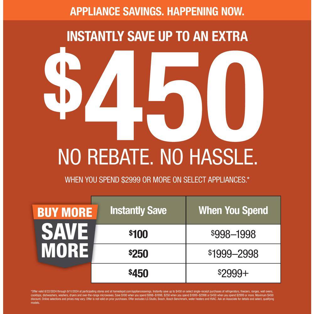 This dishwasher features a convenient 3rd rack, enabling you to load everything more efficiently. The AutoRelease Door delivers improved drying performance. Enjoy a peaceful kitchen - withoutthe background noise with a whisper quiet dishwasher with 51 dBA noise levels.. Amperage (A): 15 A. Appliance Category: Dishwasher. Appliance Series: Not Applicable. Appliance Type: Dishwasher. Color/Finish: Stainless Steel. Color/Finish Family: Stainless Steel. Control Location: Top Control. Control Type: Touch. Custom Door Panel Ready: No. Decibel (Sound) Rating: 51 dBA. Dishwasher Features: 3rd Rack,Automatic Door Release,Fingerprint Resistant,Hidden Controls,Leak Sensor. Dishwasher Rack Configuration: 3rd Rack- Adjustable. Dishwasher Wash Cycles: Auto,Delay Start,Quick Wash,Standard Wash. Dry Options: Delay Start,Heated Dry,High Temperature Wash. Energy Consumption (kWh/year): 239. Energy Efficiency Tier Rating: Not CEE rated. Handle Type: Bar Handle. Hardware Color/Finish: Stainless Steel. Hardware Color/Finish Family: Stainless Steel. Hose Length (ft.): 4 ft. Number of Cycles: 4. Number of Place Settings: 4. Product Weight (lb.): 71 lb. Rack Material: Other. Returnable: Non-Returnable. Silverware Basket Location: In Rack. Sound Rating Range (Decibels): Quiet. Steam Function: Without Steam. Tub Material: Hybrid Stainless Steel Tub. Voltage (V): 120 V. Certifications and Listings: Energy Star. Cut-Out Depth (in.): 24 in. Cut-Out Height (in.): 34.125 in. Cut-Out Width (in.): 24 in. Depth - Door Shut (with Handle) (in.): 26.875 in. Depth - Door Shut (without Handle) (in.): 24.75 in. Depth With Door Open 90 Degrees (in.): 54.875 in. Dishwasher Size: 24 In.. Height - Maximum (in): 33.75 in. Height - Minimum (in): 33.75 in. Product Depth (in.): 24.75 in. Product Height (in.): 33.75 in. Product Width (in.): 23.75 in. Dishwasher Size: 24 In.. Control Location: Top Control. Height - Max (in): 33.75 in. Features: 3rd Rack. Sound Rating Range (Decibels): Quiet. Features: Fingerprint Resistant. Handle Type: Bar Handle. Features: Leak Sensor