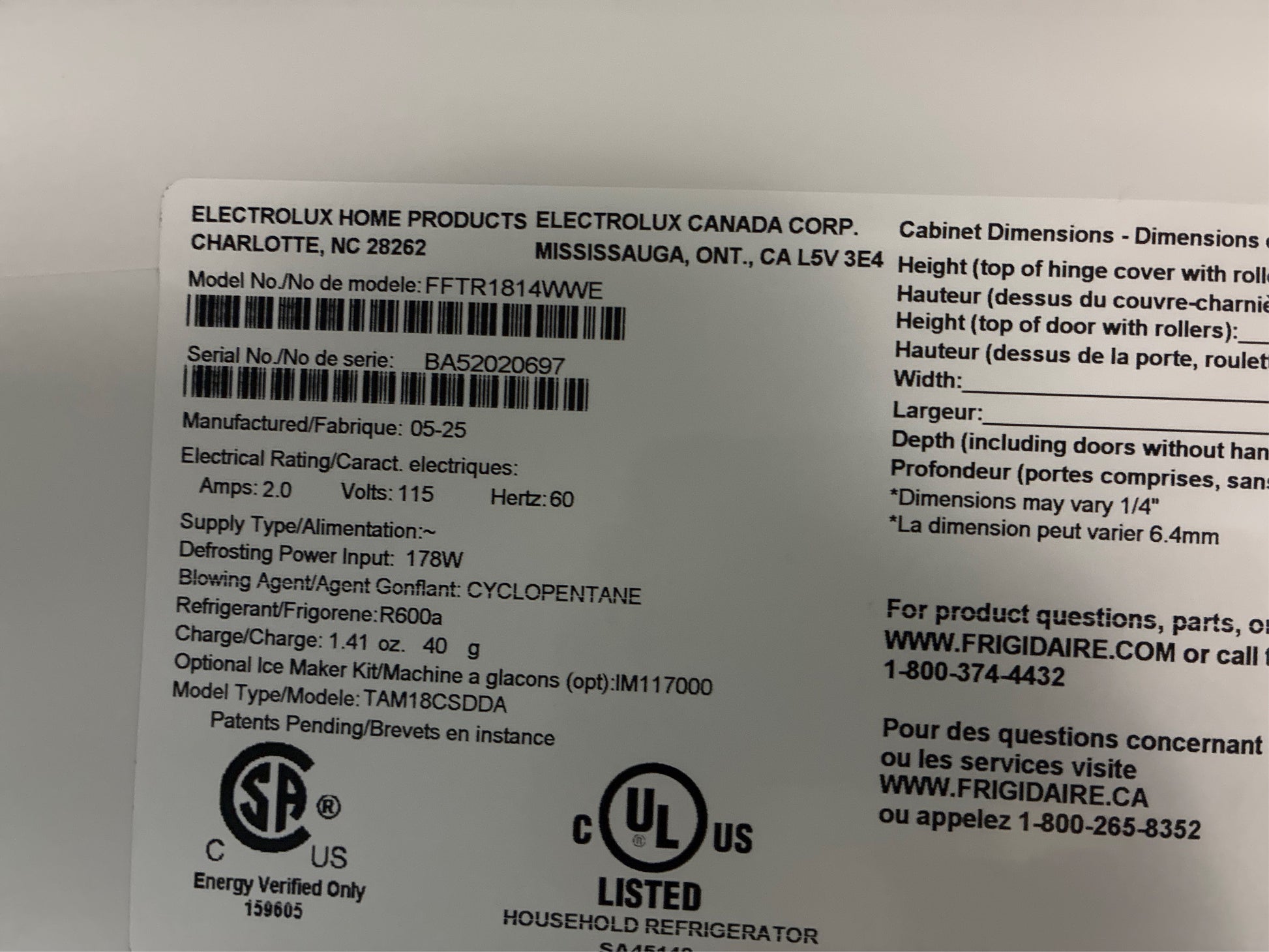 Title: Frigidaire 18.2 cu.ft Top Freezer Refrigerator in White