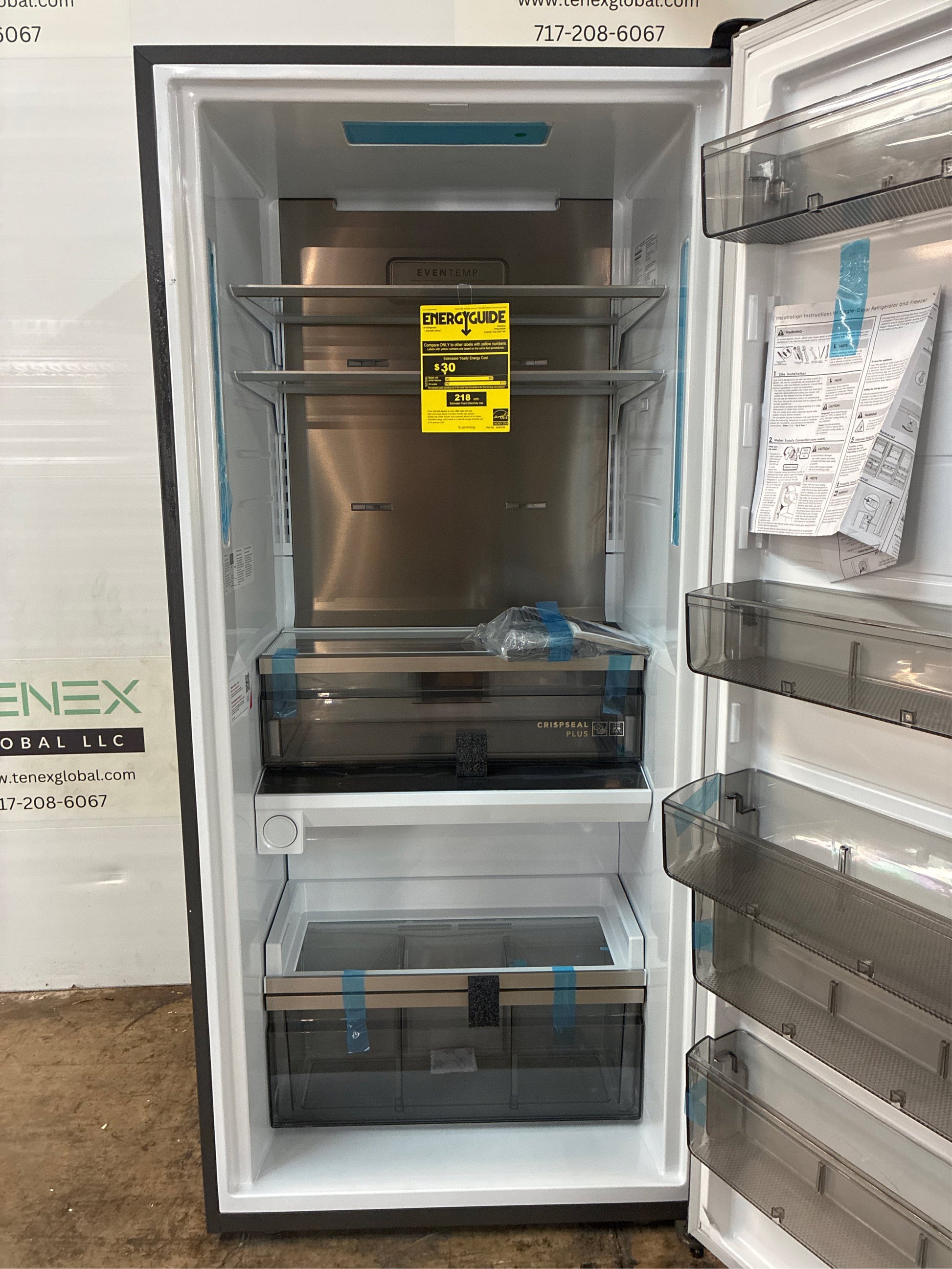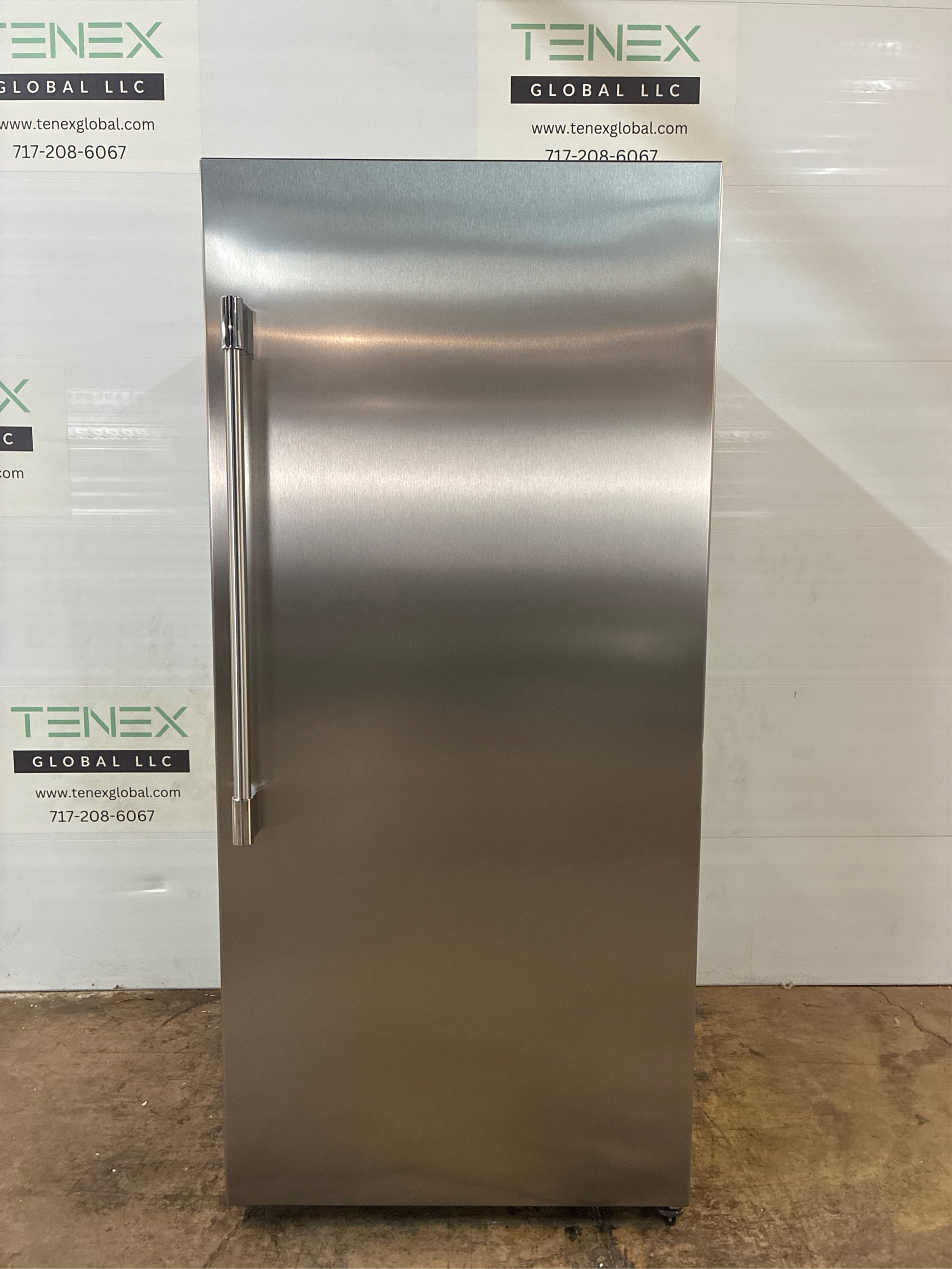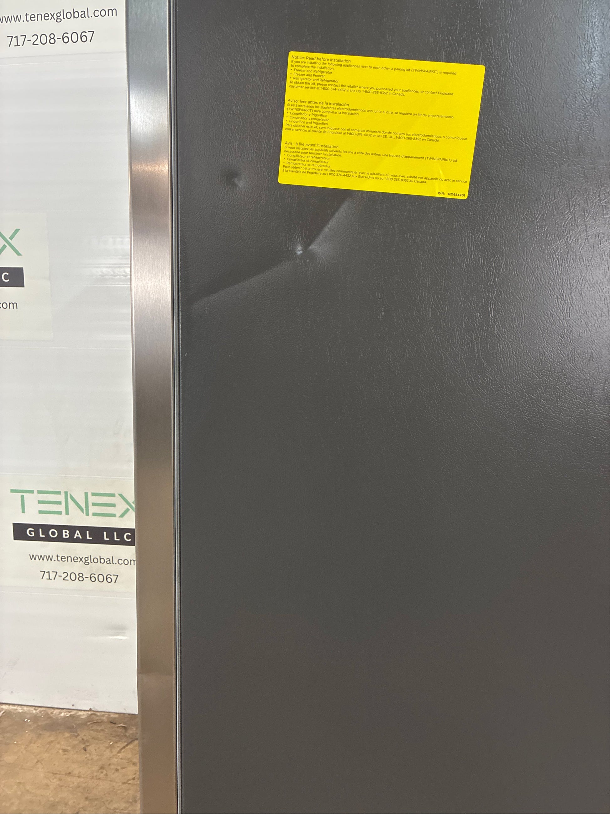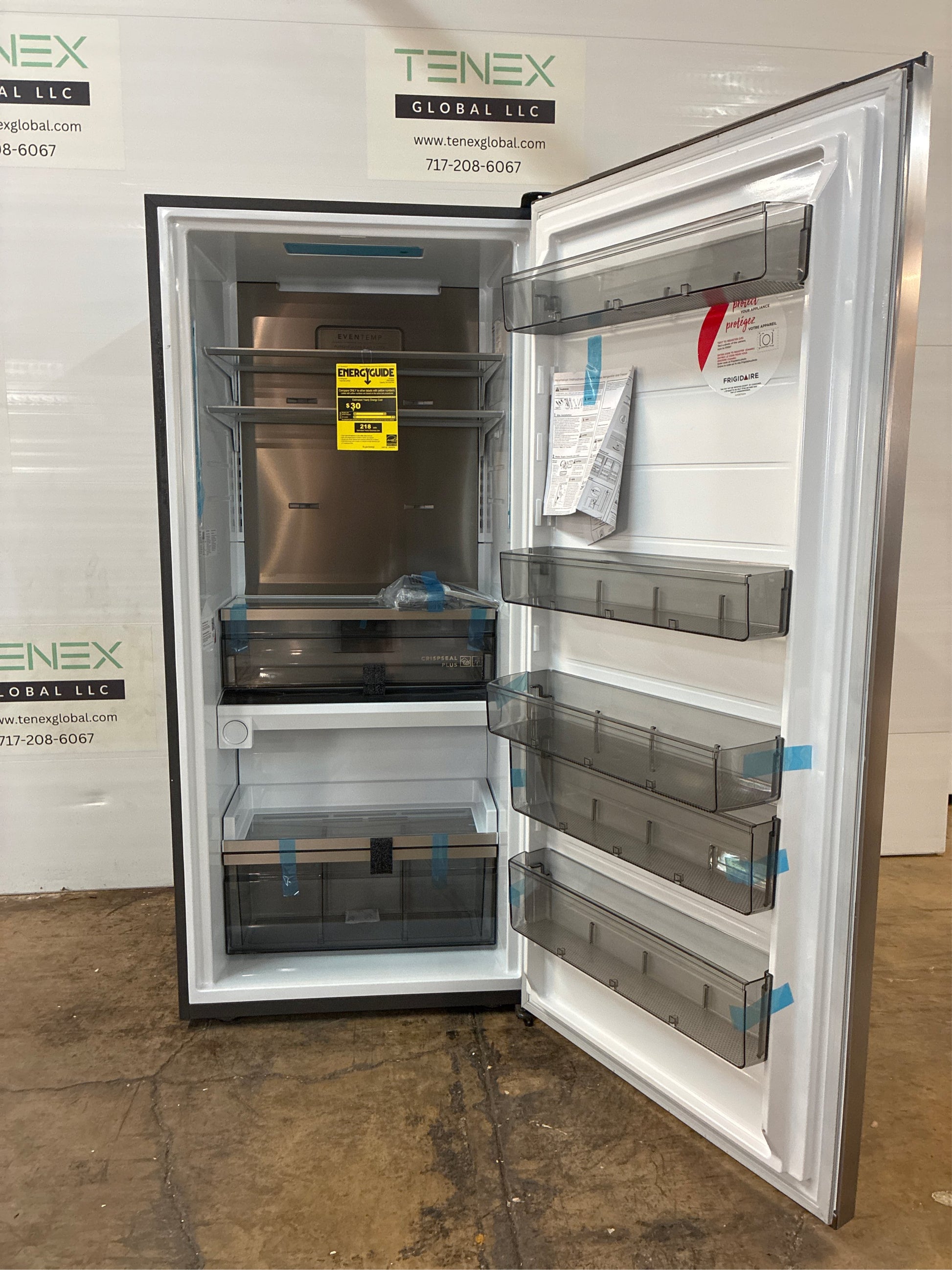 Frigidaire Professional Smudge-Proof Stainless Steel Single-Door Refrigerator offers show-stopping professional design and uniform temperature control with the EvenTemp Cooling System and the ability to easily fit up to 7 bags of groceries. Help prevent produce from spoiling with advanced CrispSeal Plus Crispers with Auto Humidity technology, which automatically removes excess moisture. An added ethylene adsorber reduces the gas emitted by many fruits and vegetables that causes spoiling. If installing together with freezer model pairing kit is required model #912000542.. Appliance Category: Refrigerator. Appliance Series: Frigidaire Professional. Appliance Type: Freezerless Refrigerator. Color - Appliance Cabinet: Gray. Color - Door Handle(s): Stainless Steel. Color/Finish: Smudge-Proof Stainless Steel. Color/Finish Family: Stainless Steel. Defrost Type: Manual. Energy Efficiency Tier Rating: Not CEE rated. Freezer Type: No Freezer. General Features: Digital Temperature Control,Door Alarm,Interior Light,LED Light Type,Reusable Filter,Sabbath Mode,Smudge-Proof. Handle Type: Bar Handle. Hardware Color/Finish: Smudge-Proof Stainless Steel. Hardware Color/Finish Family: Stainless Steel. Ice Maker Features: No Ice Maker. Indoor/Outdoor: Indoor. Installation Depth: Counter Depth. Number of Doors: 1 Door. Number of Freezer Baskets/Bins: 4 Baskets/Bins. Number of Refrigerator Shelves: 4 Shelves. Operational Features: Humidity Controlled Crisper,Sabbath Mode. Product Weight (lb.): 232.75 lb. Refrigeration Dispenser Features: Water Dispenser,Water Filtration. Returnable: Non-Returnable. Shelf Material - Refrigerator: Glass. Storage Features: Adjustable Shelves/Racks,Crisper Drawer. Temperature Control Type: Internal Digital. Total Capacity (cu. ft.): 18.9 cu ft. Water Filter Replacement Model#: FPPWFU01. Certifications and Listings: CSA Listed,Energy Star. Depth (Excluding Handles) (in.): 27 in. Depth (Including Handles) (in.): 27 in. Depth (Less Door) (in.): 25.25 in. Depth With Door Open 90 Degrees (in.): 58.25 in. Height to Top of Door Hinge (in.): 72.5 in. Height to Top of Refrigerator Case (in.): 71.5 in. Product Depth (in.): 27 in. Product Height (in.): 72.5 in. Product Width (in.): 32.875 in. Refrigerator Width (in.): 32.875 in. Total Capacity (cu. ft.): 18.9 cu ft. Freezer Type: No Freezer. Height to Top of Door Hinge (in.): 72.5 in. Height to Top (in.): 71.5 in. Depth (Including Handles) (in.): 27 in. Installation Depth: Counter Depth. Depth (Excluding Handles) (in.): 27 in. Width (In.): 32.875 in