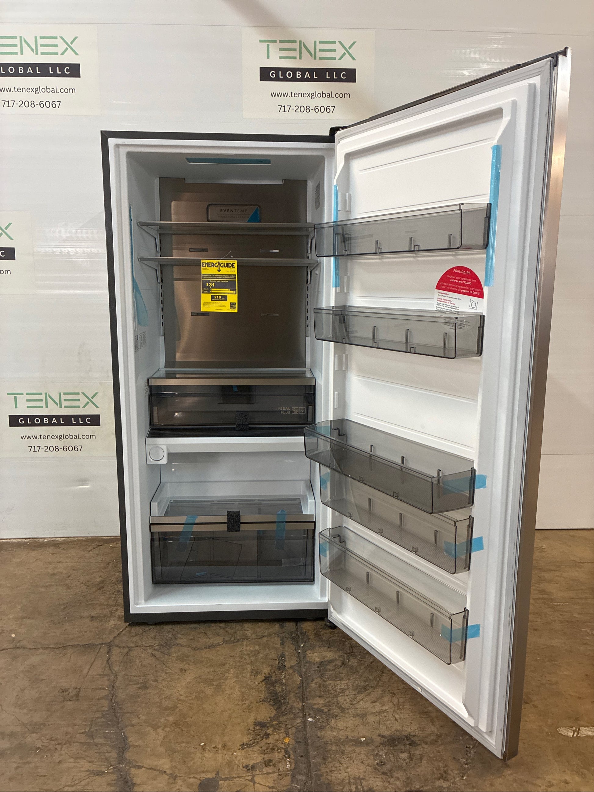 Frigidaire Professional Smudge-Proof Stainless Steel Single-Door Refrigerator offers show-stopping professional design and uniform temperature control with the EvenTemp Cooling System and the ability to easily fit up to 7 bags of groceries. Help prevent produce from spoiling with advanced CrispSeal Plus Crispers with Auto Humidity technology, which automatically removes excess moisture. An added ethylene adsorber reduces the gas emitted by many fruits and vegetables that causes spoiling. If installing together with freezer model pairing kit is required model #912000542.. Appliance Category: Refrigerator. Appliance Series: Frigidaire Professional. Appliance Type: Freezerless Refrigerator. Color - Appliance Cabinet: Gray. Color - Door Handle(s): Stainless Steel. Color/Finish: Smudge-Proof Stainless Steel. Color/Finish Family: Stainless Steel. Defrost Type: Manual. Energy Efficiency Tier Rating: Not CEE rated. Freezer Type: No Freezer. General Features: Digital Temperature Control,Door Alarm,Interior Light,LED Light Type,Reusable Filter,Sabbath Mode,Smudge-Proof. Handle Type: Bar Handle. Hardware Color/Finish: Smudge-Proof Stainless Steel. Hardware Color/Finish Family: Stainless Steel. Ice Maker Features: No Ice Maker. Indoor/Outdoor: Indoor. Installation Depth: Counter Depth. Number of Doors: 1 Door. Number of Freezer Baskets/Bins: 4 Baskets/Bins. Number of Refrigerator Shelves: 4 Shelves. Operational Features: Humidity Controlled Crisper,Sabbath Mode. Product Weight (lb.): 232.75 lb. Refrigeration Dispenser Features: Water Dispenser,Water Filtration. Returnable: Non-Returnable. Shelf Material - Refrigerator: Glass. Storage Features: Adjustable Shelves/Racks,Crisper Drawer. Temperature Control Type: Internal Digital. Total Capacity (cu. ft.): 18.9 cu ft. Water Filter Replacement Model#: FPPWFU01. Certifications and Listings: CSA Listed,Energy Star. Depth (Excluding Handles) (in.): 27 in. Depth (Including Handles) (in.): 27 in. Depth (Less Door) (in.): 25.25 in. Depth With Door Open 90 Degrees (in.): 58.25 in. Height to Top of Door Hinge (in.): 72.5 in. Height to Top of Refrigerator Case (in.): 71.5 in. Product Depth (in.): 27 in. Product Height (in.): 72.5 in. Product Width (in.): 32.875 in. Refrigerator Width (in.): 32.875 in. Total Capacity (cu. ft.): 18.9 cu ft. Freezer Type: No Freezer. Height to Top of Door Hinge (in.): 72.5 in. Height to Top (in.): 71.5 in. Depth (Including Handles) (in.): 27 in. Installation Depth: Counter Depth. Depth (Excluding Handles) (in.): 27 in. Width (In.): 32.875 in