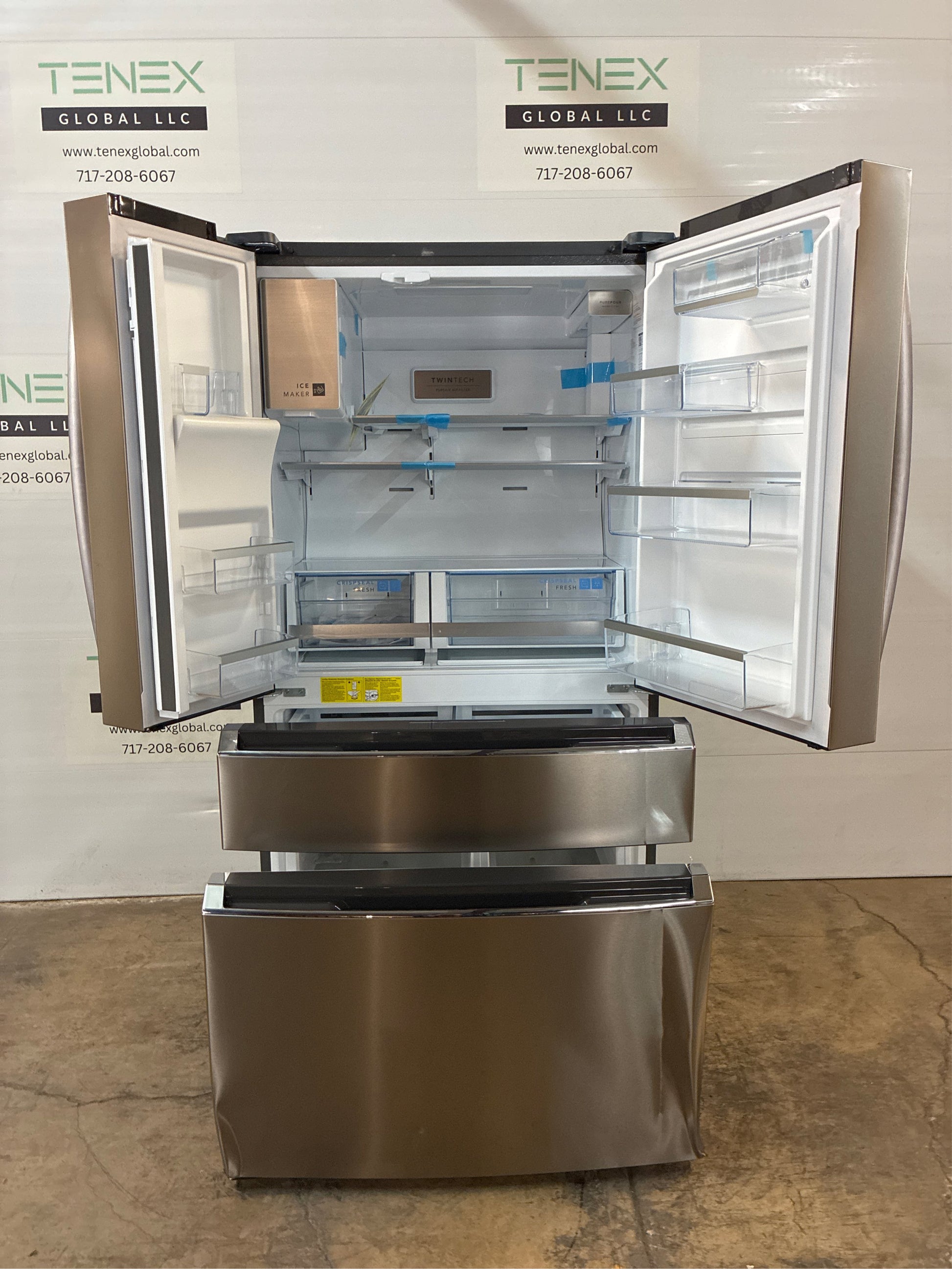 This Frigidaire Gallery French door refrigerator maintains the taste and texture of even your most delicate foods. Lettuce and broccoli stay fresh and crisp for longer in our exclusive CrispSeal fresh crispers than in any comparable crispers. Our 3 advanced technologies block out dry air, automatically optimize humidity while removing excess moisture, and our built-in antioxidant filter reduces ethylene gas, odors and preserves produce color. Get more storage out of your refrigerator with clever organization solutions that maximize usable space, including in-door condiment storage, a slide-under shelf, a snack zone, a flexible bin which can be used as crisper or an open compartment, and accessory railing system which works with our optional storage pan and wine rack. Get extra space for all your most used items with the custom-flex temp drawer. Store yogurt, beer, or even frozen pizzas with the middle drawer that can be a refrigerator or a freezer. Awarded Editor's Choice French Door Refrigerator of 2023 by Reviewed.com (USA Today). Crispers keep produce fresh with 3 advanced technologies Maximize usable space with our clever organization system Switch from fridge to freezer with the Custom-Flex Temp Drawer Packed with technologies that reduce food waste and energy consumption, our refrigerator is a smart option for the environment and your wallet Keep safer, great tasting water flowing and reduce up to 99% of contaminants while cutting back on plastic and the cost of bottled water with our water filter Our cooling system ensures temperature and airflow distribution is even, minimizing common issues, such as freezer burn and warm spots Save money and maximize energy efficiency with ENERGY STAR certification Easily access your favorites - reach up to 75% of your food with only one door open Smudge-Proof Stainless Steel resists fingerprints and cleans easily Appliance Color/Finish: Stainless steel Cabinet Color: Gray Handle Color: Stainless steel Manufacturer Color/Finish: Smudge-Proof Stainless Steel Toe Grille Color: Stainless steel Appliance Type: French door refrigerator Actual Width (Inches): 35.9 Common Width (Inches): 36 Popular Widths: 36-in Depth (Excluding Handles) (Inches): 29.5 Depth (Including Handles) (Inches): 32 Depth (Less Door) (Inches): 24.6 Depth Type: Counter-Depth Depth with Door Open (Inches): 46.9 Height to Top of Case (Inches): 70 Height to Top of Door (Inches): 70 Height to Top of Door Hinge (Inches): 70.16 Overall Capacity (Cu. Feet): 21.5 Refrigerator Capacity (Cu. Feet): 13.1 Freezer Capacity (Cu. Feet): 5.8 Refrigerator Size: Medium (33 - 36-in) Weight (lbs.): 313 Ice and Water Dispensers: Both Ice/Water Location: External dispenser Ice Maker: Single Ice Type: Cubed/Crushed Space-Saving In-Door Ice: No Water Filtration: Yes Water Filter Indicator: Yes Matching Replacement Water Filter Model: FPPWFU02 Freezer Door Style: Pull-out drawer Freezer Door Bins: 1 Freezer Baskets: 1 Freezer Drawers: 2 Freezer Shelves: 1 Freezer Light: Yes Frost-Free: Yes Reversible Freezer Door: No ADA Compliant: No Air Filtration: Yes Built-In: No Bulb Type: LED Child Safety Locks: Yes Customizable: No Dispenser Light: Yes Door Alarm: Yes Door Shelves: 7 Door Style: Flat Door Texture: Smooth Door within Door: No Dual Evaporator Cooling System: Yes Electronic Temperature Control: Yes Fingerprint-Resistant: Yes Gallon Door Storage: Yes Garage Ready: No Handle Type: Standard Hidden Hinge: Yes Hub Required: No Humidity-Controlled Crispers: 2 LED Light: Yes Lowe's Exclusive: No Number of Doors: 4 Panel Ready: No Pantry Drawer: Temperature-controlled Professional: No Refrigerator Interior Lighting: LED See-Thru Door: No Shelf Options: Adjustable glass shelves Snack/Deli Drawer: No Temperature Controlled Drawer: Yes Voice Controlled: No App Compatibility: No Bluetooth Compatibility: No Custom Door Kit Compatible: No Matching Air Filter (Model #): FRGPAAF2 Smart Compatible: No Wi-Fi Compatibility: No Works with Amazon Alexa: No Works with Android: No Works with Apple HomeKit: No Works with iOS: No Works with SmartThings: No Works with Sonos: No Works with the Google Assistant: No Approved for Outdoor Use: No CA Residents: Prop 65 Warning(s): Yes ENERGY STAR Certified: Yes Safety Listing: CSA safety listing UNSPSC: 52141500