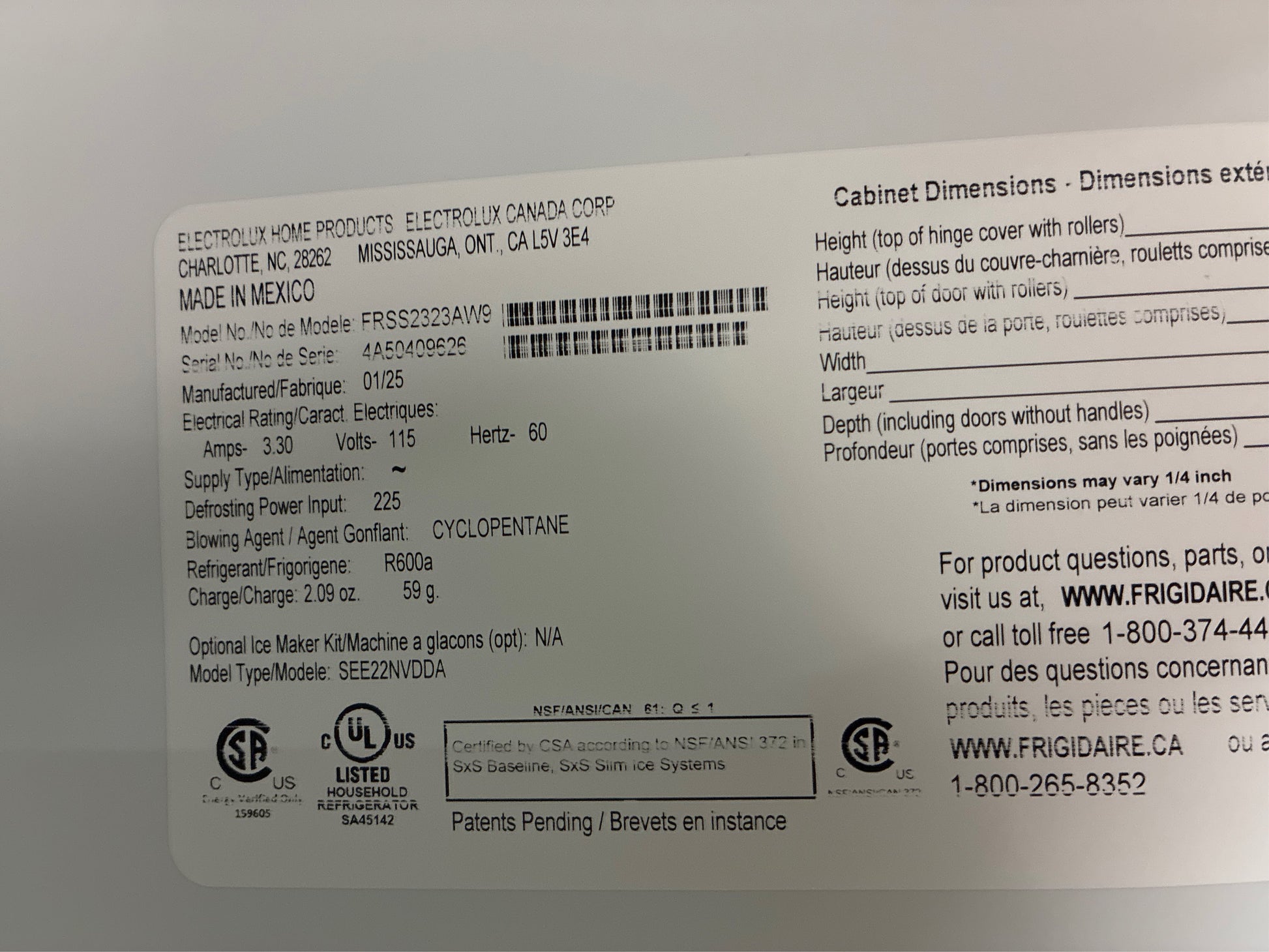 Model: FRSS2323AW