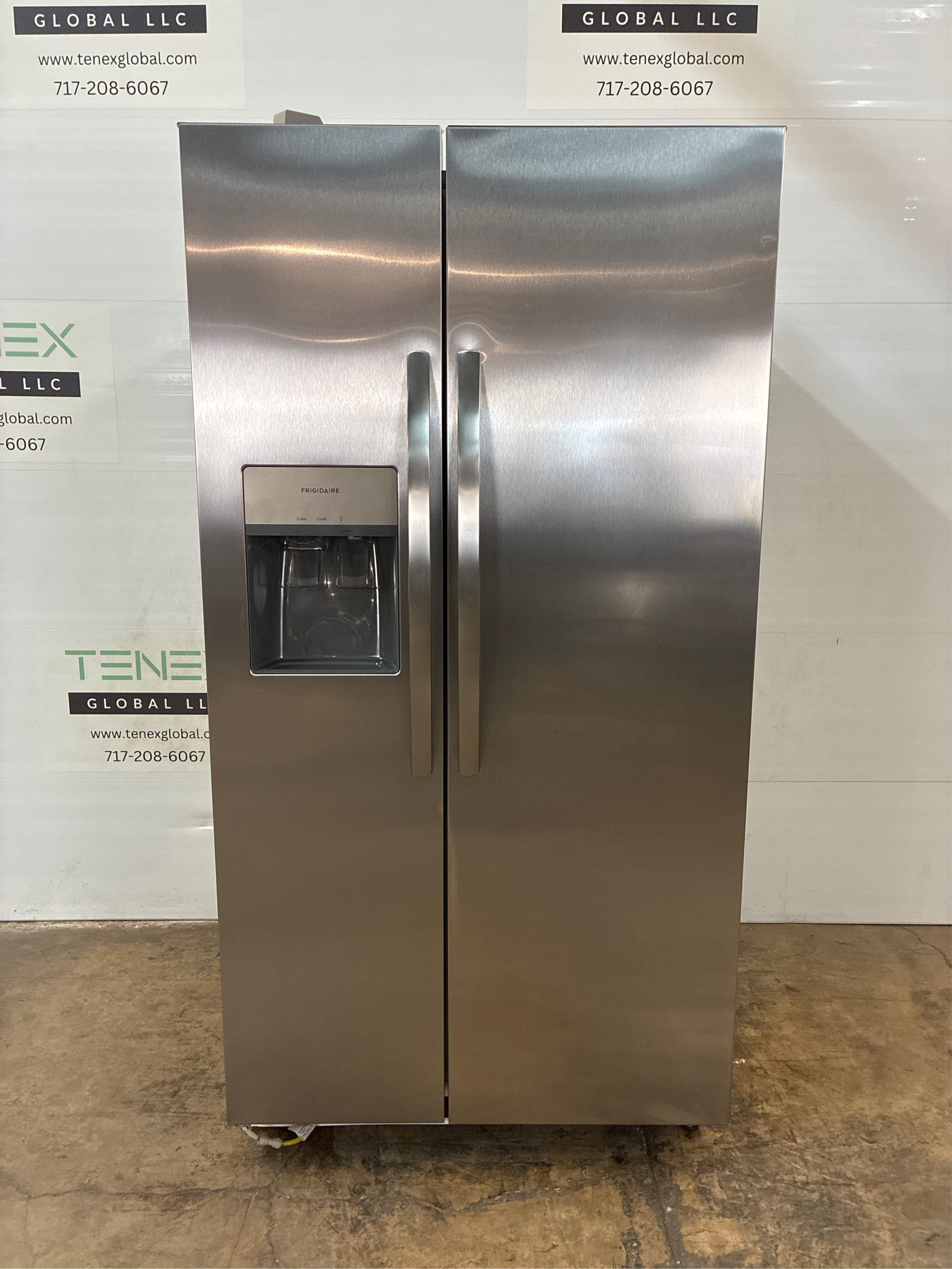 This Frigidaire 36-in side-by-side refrigerator offers our EvenTemp Cooling System which reacts quickly to temperature fluctuations and constantly circulates cold air throughout the fresh food and freezer compartments, ensuring a consistent cool from top to bottom. Keep fruits and vegetables fresh in our crispers that offer a seal to block out dry air. Enjoy the capacity to fit all of your family's favorites and keep everything tidy with our flexible organization system that includes adjustable gallon door bins, removable glass shelves and two produce drawers. Awarded the Best Overall Side by Side Refrigerator of 2023 by Reviewed.com (USA Today). Three flexible shelves that are easily adjustable and removable Enjoy the largest ice bucket capacity at 11-lb Built in air filter that captures and keeps odors away Find fresh foods quickly with our bright LED lighting Our filter reduces up to 99% of contaminants Store more items with adjustable gallon door bins, removable edge-to-edge glass shelves and two crisper drawers Air filter ready - sold separately (model: PAULTRA2 item #2691534) Tall flat doors and hidden hinges for a clean exterior look and design Appliance Color/Finish: Stainless steel Cabinet Color: Gray Handle Color: Stainless steel Manufacturer Color/Finish: Stainless steel Sub-Brand: N/A Toe Grille Color: Gray Actual Width (Inches): 36.25 Common Width (Inches): 36 Depth (Excluding Handles) (Inches): 32.75 Depth (Including Handles) (Inches): 35.75 Depth (Less Door) (Inches): 28.75 Depth Type: Standard-Depth Depth with Door Open (Inches): 50 Freezer Capacity (Cu. Feet): 9 Height to Top of Case (Inches): 68.125 Height to Top of Door (Inches): 68.125 Height to Top of Door Hinge (Inches): 70 Overall Capacity (Cu. Feet): 25.6 Popular Widths: 36-in Refrigerator Capacity (Cu. Feet): 16.6 Refrigerator Size: Medium (33 - 36-in) Weight (lbs.): 278.35 ADA Compliant: No Air Filtration: Yes Appliance Type: Side-by-side refrigerator Automatic Door Sensor: No Automatic Drawer Sensor: No Built-In: No Built-in Water Pitcher: No Child Safety Locks: No Customizable: No Dispenser Light: Yes Door Alarm: Yes Door Shelves: 4 Door Style: Flat Door Texture: Smooth Door within Door: No Dual Evaporator Cooling System: No Electronic Temperature Control: Yes Fingerprint-Resistant: No Freezer Baskets: 1 Freezer Door Bins: 4 Freezer Door Shelves: 0 Freezer Light: Yes Freezer Shelves: 2 Frost-Free: Yes Gallon Door Storage: Yes Garage Ready: No Handle Type: Standard Hidden Hinge: No Hub Required: No Humidity-Controlled Crispers: 0 Ice and Water Dispensers: Both Ice Maker: Single Ice Type: Cubed/Crushed Ice/Water Location: External dispenser LED Light: Yes Lowe's Exclusive: No Matching Replacement Water Filter Model: FPPWFU01 Panel Ready: No Professional: No Refrigerator Interior Lighting: LED Reversible Freezer Door: No See-Thru Door: No Shelf Options: Adjustable sliding glass shelves Snack/Deli Drawer: No Space-Saving In-Door Ice: No Temperature Controlled Drawer: No Voice Controlled: No Water Filter Indicator: Yes Water Filtration: Yes App Compatibility: No Bluetooth Compatibility: No Custom Door Kit Compatible: No Matching Air Filter (Model #): PAULTRA2 Matching Previous (Model #): FFSS2615TS Smart Compatible: No Wi-Fi Compatibility: No Works with Amazon Alexa: No Works with Android: No Works with Apple HomeKit: No Works with iOS: No Works with SmartThings: No Works with Sonos: No Works with the Google Assistant: No Approved for Outdoor Use: No CA Residents: Prop 65 Warning(s): Yes ENERGY STAR Certified: Yes Safety Listing: UL safety listing UNSPSC: 52141500