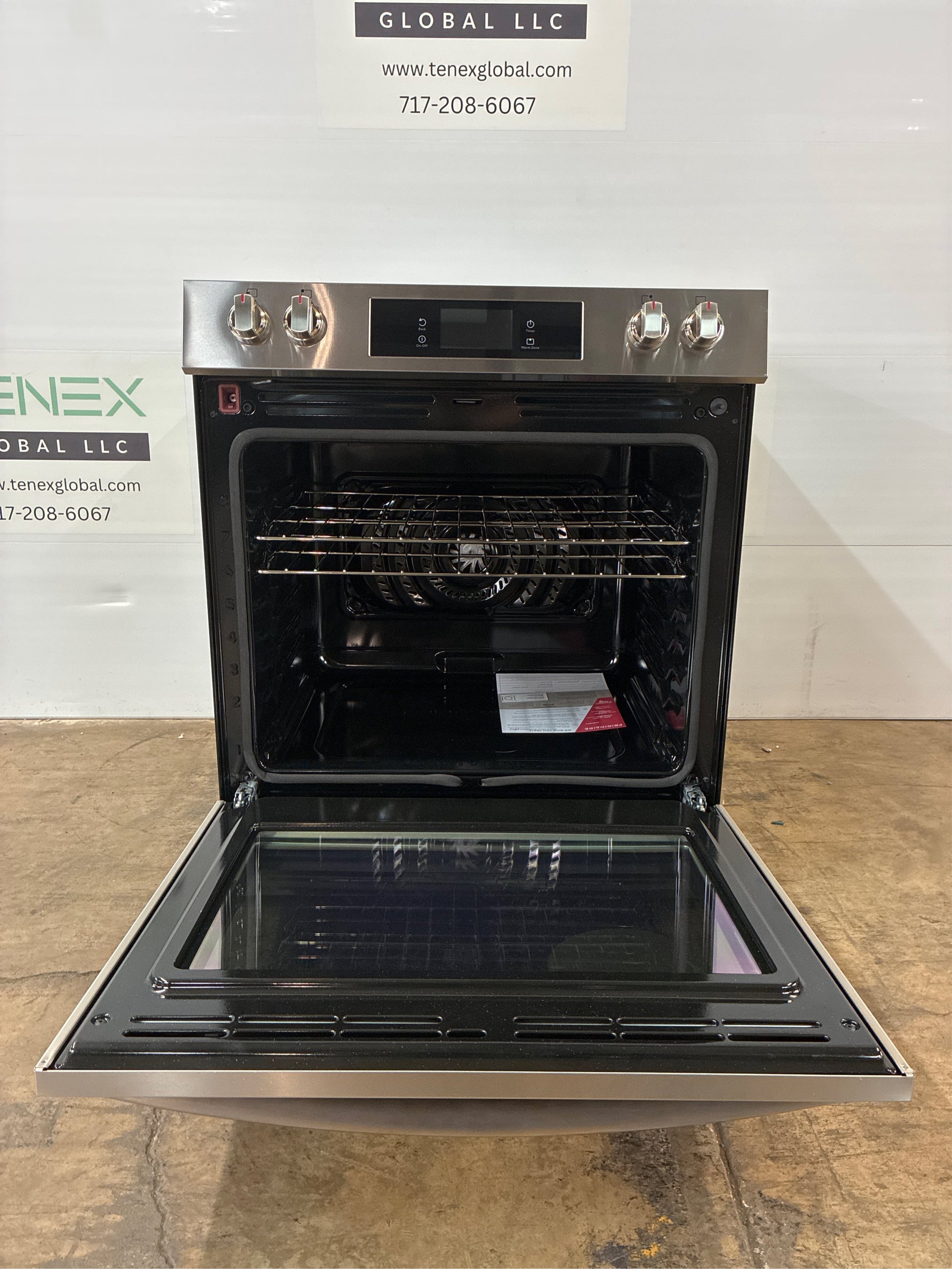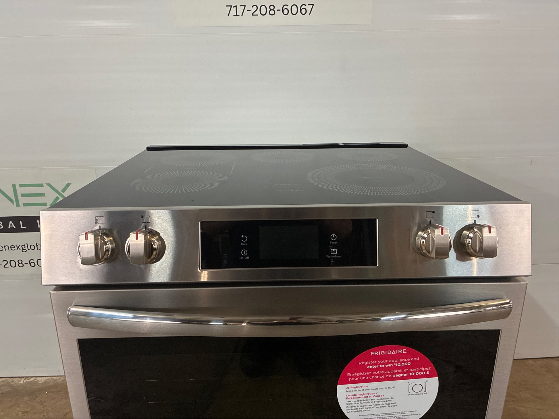 The Frigidaire Gallery 30 in. Front Control Electric Range with Total Convection features our most powerful and advanced convection system, which enables cooking modes like No Preheat, Air Fry, Slow Cook, Steam Bake, Steam Roast, Air Sous Vide, Convection Roast, Convection Bake, Bread Proof and more. The flexible five element cooktop includes a powerful 3,200 Watt EvenTemp element and a convenient bridge element - designed to handle all of your cooking needs. This range also features backlit LED knobs, our premium touch screen digital control panel and our fingerprint resistant, Smudge-Proof Stainless Steel finish. Get over 15 easy-to-use cooking modes with Total Convection. Skip preheating and start baking immediately with No Preheat. Deliver all of the flavor and none of the guilt with Air Fry (Compatible with optional ReadyCook Air Fry Tray model: FRIGPEREAFT). Flexible 5 Element cooktop handles all of your cooking needs. Lock in moisture and flavor, with perfect results with Slow Cook. Temperature probe monitors and alerts when your food is ready. Our EvenTemp cooktop delivers consistent heat across the pan. Achieve bakery results, right at home with Steam Bake. Offers a 30 minute Steam Clean and multiple Self Clean cycles. Appliance Color/Finish: Stainless steel Handle Color: Stainless steel Manufacturer Color/Finish: Fingerprint Resistant Stainless Steel Sub-Brand: Gallery Type: Slide-In Adjustable Height: Yes Capacity (Cu. Feet): 6.2 Cutout Depth (Inches): 26 Cutout Height (Inches): 35 Cutout Width (Inches): 30 Depth (Inches): 28.5 Element #1 Size: 9-in Element #2 Size: 6-in Element #3 Size: 7-in Element #4 Size: 7-in Element #5 Size: 5-in Maximum Assembled Height (Inches): 36.375 Minimum Assembled Height (Inches): 35.375 Popular Widths: 30-in Range Size (Inches): 30 Usable Oven Interior (H x W x D): 21.31 x 25.1875 x 19.875 Width (Inches): 30 ADA Compliant: No Adjustable Cleaning Levels: Yes Air Fry: Yes Air Sous Vide: Yes Appliance Type: Single oven electric range Automatic Convection Conversion: Yes Automatic Shut-Off: Yes Bridge Element: Yes Cleaning Method: Self-cleaning and steam cleaning Control Location: In front of elements Control Lockout: Yes Convection Element Type: Single-fan European element Convection Oven: Yes Cooking Surface Control Type: Knobs Cooking Surface Type: Smooth surface Customizable: No Dehydrator Oven: Yes Delay Bake: Yes Digital Display: Yes Door Lock: Yes Downdraft Exhaust: No Dual/Triple Element: No Element #1 Wattage: 3200 Element #2 Wattage: 1200 Element #3 Wattage: 1800 Element #4 Wattage: 1800 Element #5 Wattage: 100 Element #6 Wattage: 0 Favorite Setting: No Fingerprint-Resistant: Yes Food Temperature Probe: Yes Fuel Type: Electric Glide/Rollout Racks: No Half/Split Rack: No Hidden Bake Element: Yes Hot Surface Indicator Lights: Yes Hub Required: No Induction Cooking: No Installation Type: Slide-in Interior Light(s) Type: Halogen Keep Warm Setting: Yes Light(s) Control: Oven light touch pad Lowe's Exclusive: No Number of Cooking Zones: 5 burners Number of Oven Rack Positions: 8 Number of Racks: 2 Oven Control Type: Electronic Pan Size Sensor: No Power Cord Included: No (sold separately) Power Element: Yes Power Source: Electric Professional: No Proofing: Yes Rapid Preheat: Yes Removable Washable Trays: No Sabbath Mode: Yes Self-Cleaning Oven Racks: No Simmer Element: Yes Single/Double Oven: Single Temperature-Sensor Baking: No Time Bake: Yes True Convection: Yes Voice Controlled: No Warming Drawer: No App Compatibility: No Bluetooth Compatibility: No Matching Gas (Model #): GCFG3060BF Matching Previous (Model #): FGEH3047VF Smart Compatible: No Wi-Fi Compatibility: No Works with Amazon Alexa: No Works with Android: No Works with Apple HomeKit: No Works with iOS: No Works with SmartThings: No Works with Sonos: No Works with the Google Assistant: No CA Residents: Prop 65 Warning(s): Yes ENERGY STAR Certified: No Safety Listing: UL safety listing UNSPSC: 52141500