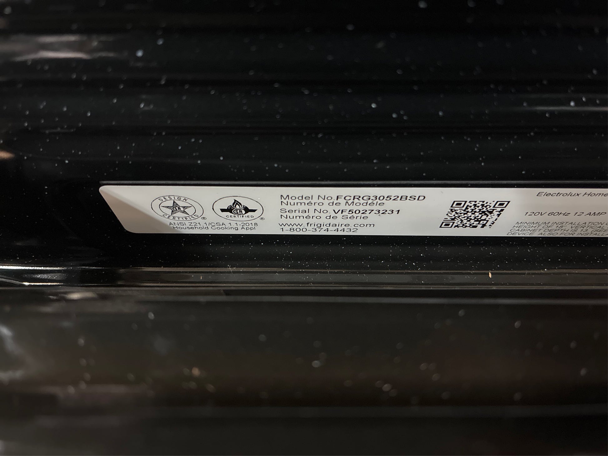 The Frigidaire 30 Gas Range allows you to get to mealtime faster with the powerful 18,000 BTU Quick Boil burner. Experience the ultimate in cooktop flexibility with our five-burner cooktop, designed to handle all of your cooking needs. Enjoy consistent, even baking results with our Even Baking Technology. Plus, cook more at once with our large 5.1 cu. ft. capacity oven. Get quicker boil times with the 18,000 BTU Quick Boil burner Get the ultimate cooking flexibility with a cooktop that has five burners designed to handle all of your cooking needs Get consistent results every time with our Even Baking Technology Moving heavy pots and pans across the cooktop is easier with continuous edge-to-edge grates Large 5.1 cu ft oven capacity allows you to cook more at once Our redesigned Store-More Storage drawer is now even wider - allowing you to store any unused oven racks, baking trays and more Cleaning your cooktop is easier with removable, dishwasher safe burner caps Proudly Assembled in the USA Appliance Color/Finish: Stainless steel Handle Color: Stainless steel Manufacturer Color/Finish: Stainless Steel Type: Freestanding Adjustable Height: Yes Capacity (Cu. Feet): 5.1 Cutout Depth (Inches): 26 Cutout Height (Inches): 45 Cutout Width (Inches): 30 Depth (Inches): 26 Maximum Assembled Height (Inches): 47.75 Minimum Assembled Height (Inches): 46.75 Popular Widths: 30-in Range Size (Inches): 30 Usable Oven Interior (H x W x D): 17.625 x 25.187 x 19.875 Width (Inches): 30 ADA Compliant: No Adjustable Cleaning Levels: No Air Fry: No Appliance Type: Single oven gas range Auto Re-Ignition: Yes Automatic Convection Conversion: No Automatic Shut-Off: No Broiler Drawer: No Burner #1 Max BTU: 18000 Burner #2 Max BTU: 5000 Burner #3 Max BTU: 14000 Burner #4 Max BTU: 10000 Burner #5 Max BTU: 10000 Burner #6 Max BTU: 0 Burner Grate Material: Matte cast iron Cleaning Method: Manual cleaning Continuous Grates: Yes Control Location: Behind elements Control Lockout: Yes Convection Element Type: None Convection Oven: No Cooking Surface Control Type: Knobs Cooking Surface Type: Standard Customizable: No Dehydrator Oven: No Delay Bake: No Digital Display: Yes Dishwasher-Safe Grates: No Door Lock: No Downdraft Exhaust: No Drip Pans: No Dual/Tri-Ring Burner(s): No Favorite Setting: No Fingerprint-Resistant: No Food Temperature Probe: No Fuel Type: Natural gas Glide/Rollout Racks: No Half/Split Rack: No Hot Surface Indicator Lights: No Hub Required: No Ignition Type: Electronic Installation Type: Freestanding Integrated Griddle: No Interior Light(s) Type: Halogen Keep Warm Setting: No Light(s) Control: Oven light touch pad Lowe's Exclusive: No LP Conversion Kit Included: No LP Convertible: Yes Modular Design: No Number of Cooking Zones: 5 burners Number of Oven Rack Positions: 6 Number of Racks: 2 Oval Burner: Yes Oven Control Type: Electronic Power Burner (15,000 BTU+): Yes Power Cord Included: Yes Power Source: Plug-in Professional: No Rapid Preheat: No Removable Washable Trays: No Sabbath Mode: No Sealed Burners: Yes Self-Cleaning Oven Racks: No Simmer Burner: Yes Single/Double Oven: Single Steam Cook: No Temperature-Sensor Baking: No Time Bake: No True Convection: No Voice Controlled: No Warming Drawer: No Wok Grate Included: No App Compatibility: No Bluetooth Compatibility: No Matching Electric (Model #): FCRE3052BS Matching Newer (Model #): FCRG3052BB, FCRG3052BW Matching Previous (Model #): FCRG3052AS Smart Compatible: No Wi-Fi Compatibility: No Works with Amazon Alexa: No Works with Android: No Works with Apple HomeKit: No Works with iOS: No Works with SmartThings: No Works with Sonos: No Works with the Google Assistant: No CA Residents: Prop 65 Warning(s): Yes ENERGY STAR Certified: No Safety Listing: CSA safety listing UNSPSC: 52141500