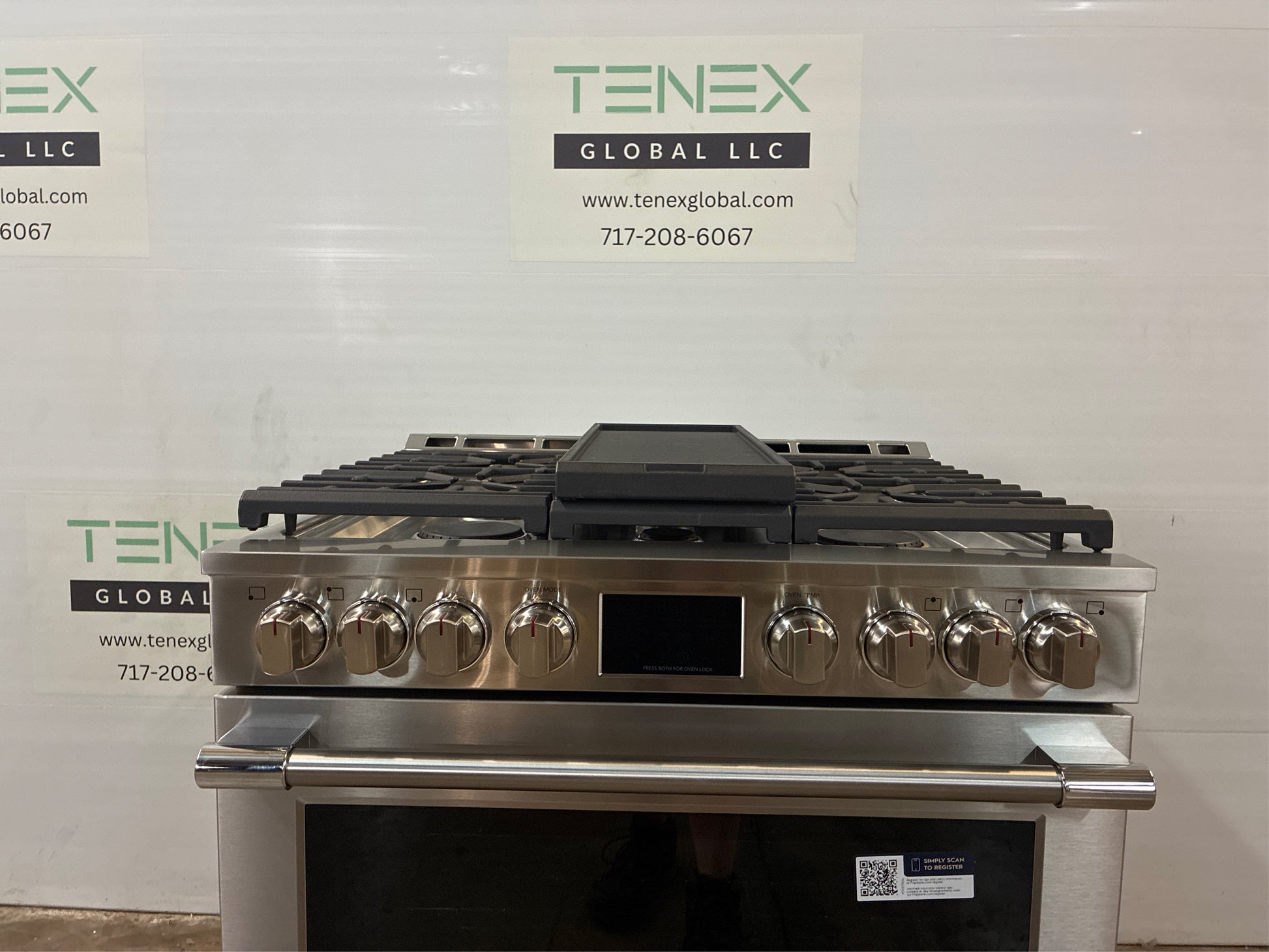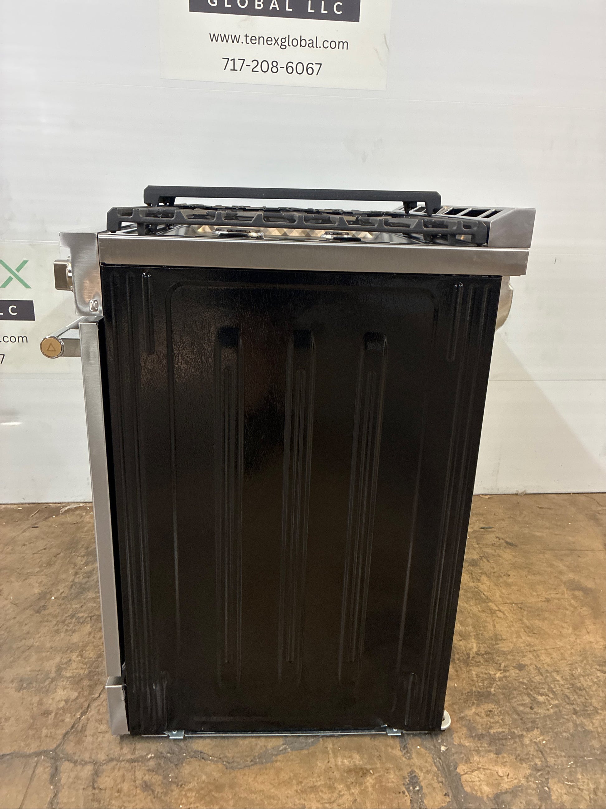 The Frigidaire Professional 30 Front Control Gas Range with Total Convection, features our most powerful and advanced convection system, which enables cooking modes like No Preheat, Air Fry, Slow Cook, Steam Bake, Steam Roast, Convection Roast, Convection Bake and more! The flexible six burner cooktop includes our 18,000 BTU Even TempTM burner and an integrated cast iron griddle. This range also features backlit LED knobs and our fingerprint resistant, Smudge-Proof Stainless Steel finish.. Appliance Category: Range. Appliance Series: Frigidaire Professional. Appliance Type: Gas Range. Burner Grate Material: Cast Iron. Burner No.1 BTU: 18000. Burner No.2 BTU: 5000. Burner No.3 BTU: 18000. Burner No.4 BTU: 10000. Burner No.5 BTU: 10000. Burner No.6 BTU: 10000. Capacity of Oven (cu. ft.): 6 cu ft. Cleaning Type: Steam Clean. Color of Cooktop: Stainless Steel. Color/Finish: Smudge-Proof Stainless Steel. Color/Finish Family: Stainless Steel. Commercial/Residential: Residential. Control Type: Electro-Mechanical. Controls Location: Front Control. Cooktop Features: Smudge-Proof,With Griddle. Cooktop Surface Type: Burner Grate. Drawer Type: Lower Storage Drawer. Fuel Type: Gas. Hardware Color/Finish: Smudge-Proof Stainless Steel. Hardware Color/Finish Family: Stainless Steel. Ignition Type: Electrical. Included: No Additional Items Included. Number of Burners: 6 burner. Number of Oven Racks: 3. Number of Rack Positions: 7. Oven Cleaning Options: Self-Cleaning,Steam Clean. Oven Cooking Process: Air Fry,Convection,Steam Oven. Oven Features: Adjustable Leg Heights,Automatic Convection Conversion,Fingerprint Resistant,Gliding/Roll Out Racks,Oven Light,Oven Temperature Probe,Sabbath Mode. Product Weight (lb.): 178 lb. Range Installation Type: Slide-In. Returnable: Non-Returnable. Certifications and Listings: CSA Listed. Depth With Door(s) Open 90 Degrees (in.): 47.25 in. Oven Interior Depth (in): 19.875. Oven Interior Height (in): 20.6875. Oven Interior Width (in): 25.1875. Product Depth (in.): 26 in. Product Height (in.): 35.625 in. Product Width (in.): 30 in. Range Size (Width): 30 in.. Range Size (Width): 30 in.. Range Installation Type: Slide-In. No of Burners: 6 burner. Capacity (cu. ft.): 6 cu ft. Capacity (cu. ft.): 6 cu ft.. Cleaning Type: Steam Clean. Oven Cooking Process: Air Fry. Oven Cooking Process: Convection