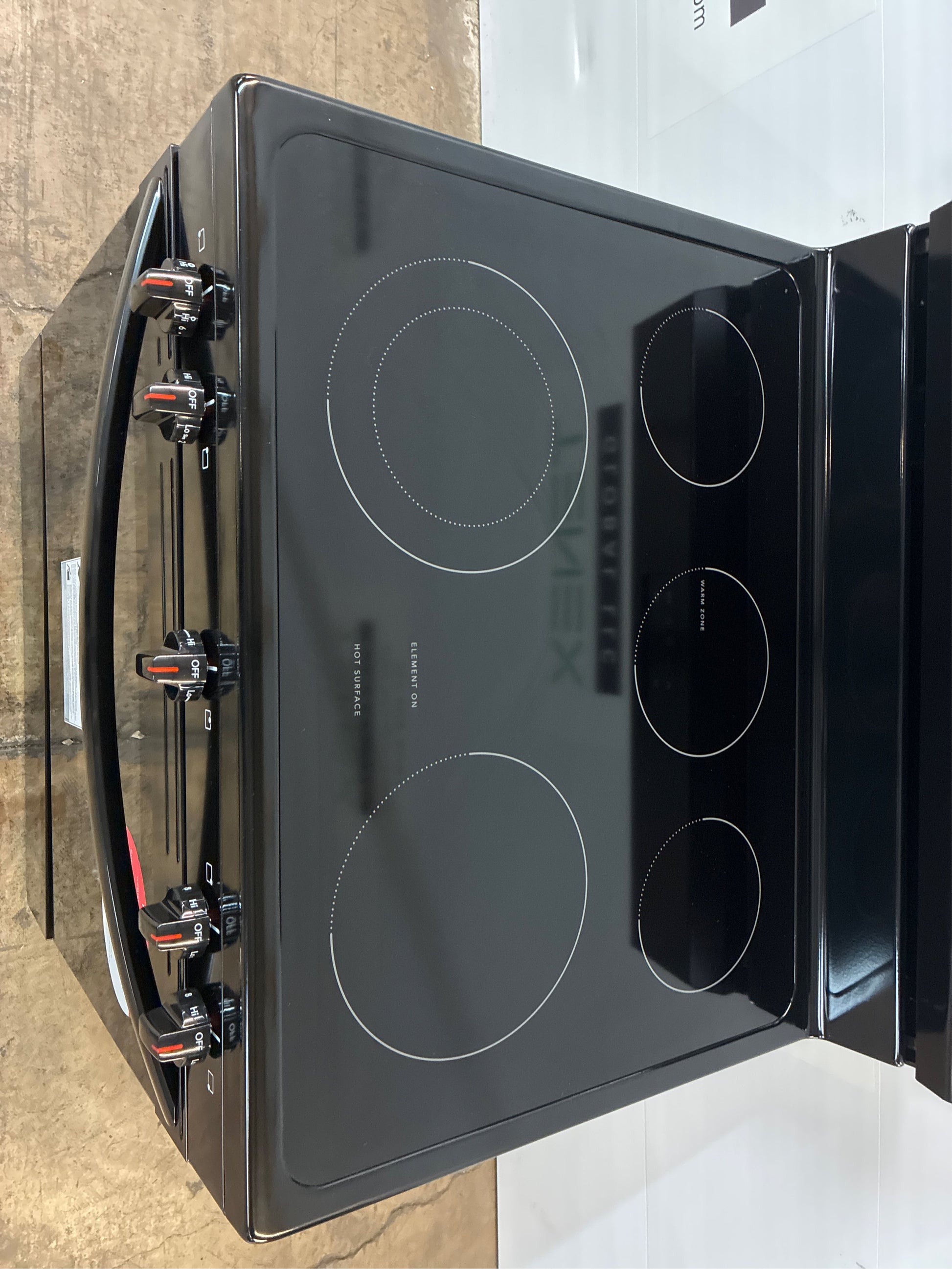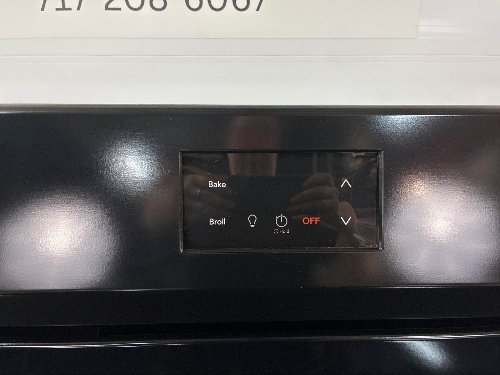 The Frigidaire 30 Electric Range allows you to get meals on the table faster with our 3,000W Quick Boil Element. Enjoy more cooktop flexibility with five cooktop elements designed to handle all of your cooking needs, include the SpaceWise Dual Expandable Element. Plus, enjoy our redesigned Extra Wide Store-More Storage Drawer, now with more space to store your unused oven racks and cookware. Get meals to the table faster with the powerful 3,000W Quick Boil element. Experience ultimate cooking flexibility with a cooktop that has five elements designed to handle all of your cooking needs. Get consistent results every time with our Even Baking Technology. Get two elements in one with the Dual Expandable element - a 6 inner ring for smaller pots and pans and a 9 outer ring for larger cookware. Large 5.3 cu ft oven capacity allows you to cook more at once. Our redesigned Store-More Storage drawer is now even wider - allowing you to store any unused oven racks, baking trays and more. Keep food warm until everything - and everyone - is ready. Proudly Assembled in the USA. Manual clean oven. Appliance Color/Finish: Black. Handle Color: Black. Manufacturer Color/Finish: Black. Type: Freestanding. Adjustable Height: Yes. Capacity (Cu. Feet): 5.3. Cutout Depth (Inches): 26. Cutout Height (Inches): 45. Cutout Width (Inches): 30. Depth (Inches): 26. Element #1 Size: 9-in. Element #2 Size: 6-in. Element #3 Size: 6-in/9-in. Element #4 Size: 6-in. Element #5 Size: 5-in. Maximum Assembled Height (Inches): 47.75. Minimum Assembled Height (Inches): 46.75. Popular Widths: 30-in. Range Size (Inches): 30. Usable Oven Interior (H x W x D): 18.125 x 25.1875 x 19.875. Width (Inches): 30. ADA Compliant: No. Adjustable Cleaning Levels: No. Air Fry: No. Air Sous Vide: No. Appliance Type: Single oven electric range. Automatic Convection Conversion: No. Automatic Shut-Off: No. Bridge Element: No. Cleaning Method: Manual cleaning. Control Location: Behind elements. Control Lockout: No. Convection Element Type: None. Convection Oven: No. Cooking Surface Control Type: Knobs. Cooking Surface Type: Smooth surface. Customizable: No. Dehydrator Oven: No. Delay Bake: No. Digital Display: Yes. Door Lock: No. Downdraft Exhaust: No. Dual/Triple Element: Yes. Element #1 Wattage: 3000. Element #2 Wattage: 1200. Element #3 Wattage: 3000. Element #4 Wattage: 1200. Element #5 Wattage: 100. Element #6 Wattage: 0. Favorite Setting: No. Fingerprint-Resistant: No. Food Temperature Probe: No. Fuel Type: Electric. Glide/Rollout Racks: No. Half/Split Rack: No. Hidden Bake Element: No. Hot Surface Indicator Lights: Yes. Hub Required: No. Induction Cooking: No. Installation Type: Freestanding. Interior Light(s) Type: Halogen. Keep Warm Setting: Yes. Light(s) Control: Oven light touch pad. Lowe's Exclusive: No. Number of Cooking Zones: 5 burners. Number of Oven Rack Positions: 6. Number of Racks: 2. Oven Control Type: Electronic. Pan Size Sensor: No. Power Cord Included: No (sold separately). Power Element: Yes. Power Source: Electric. Professional: No. Proofing: No. Rapid Preheat: No. Removable Washable Trays: No. Sabbath Mode: No. Self-Cleaning Oven Racks: No. Simmer Element: No. Single/Double Oven: Single. Steam Cook: No. Temperature-Sensor Baking: No. Time Bake: No. True Convection: No. Voice Controlled: No. Warming Drawer: No. App Compatibility: No. Bluetooth Compatibility: No. Matching Gas (Model #): FCRG3052AB. Matching Previous (Model #): FCRE3052AB. Smart Compatible: No. Wi-Fi Compatibility: No. Works with Amazon Alexa: No. Works with Android: No. Works with Apple HomeKit: No. Works with iOS: No. Works with SmartThings: No. Works with Sonos: No. Works with the Google Assistant: No. CA Residents: Prop 65 Warning(s): Yes. ENERGY STAR Certified: No. Safety Listing: UL safety listing. UNSPSC: 521