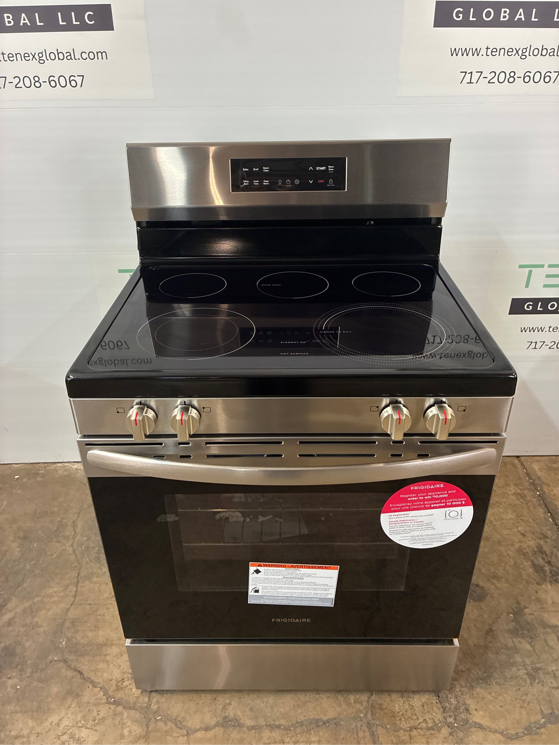 The Frigidaire 30 Electric Range with the EvenTemp cooktop element delivers consistent results every time, because it reduces hot and cold spots in your pan. Plus, enjoy easier cleanup with our Steam Clean cycle that provides a quick 30-minute oven cleaning that's chemical-free, odor-free and fast. Also features our EasyCare Stainless Steel Finish which resists fingerprints and is easy to clean. With our EvenTemp cooktop technology, heat is evenly distributed across the element's surface, which reduces hot spots and cold areas in your pan. With five elements, this cooktop is designed to handle all of your cooking needs, including our powerful 3,200 Watt EvenTemp element, a Dual Expandable Element and a convenient Warm Zone. Get consistent results every time with our Even Baking Technology. EasyCare Finish resists fingerprints and is easy to clean. 30 Minute Steam Clean that's chemical free, odor free and fast. Our convenient 2-in-1 element expands from 6 in for smaller pots to 9 in for larger cookware, providing more cooktop flexibility. Our redesigned Store-More Storage drawer is now even wider - allowing you to store any unused oven racks or baking trays. Cook more at once with our extra-large 5.3 cu ft capacity oven. Lower heating elements are beneath the oven floor, making for a smooth surface that is easy to clean. Appliance Color/Finish: Stainless steel. Handle Color: Stainless steel. Manufacturer Color/Finish: Fingerprint Resistant Stainless Steel. Type: Freestanding. Adjustable Height: Yes. Capacity (Cu. Feet): 5.3. Cutout Depth (Inches): 26. Cutout Height (Inches): 30. Cutout Width (Inches): 30. Depth (Inches): 26. Element #1 Size: 9-in. Element #2 Size: 6-in. Element #3 Size: 6-in/9-in. Element #4 Size: 6-in. Element #5 Size: 5-in. Maximum Assembled Height (Inches): 47.75. Minimum Assembled Height (Inches): 46.75. Popular Widths: 30-in. Range Size (Inches): 30. Usable Oven Interior (H x W x D): 18.125 x 25.1875 x 19.875. Width (Inches): 30. ADA Compliant: No. Adjustable Cleaning Levels: No. Air Fry: No. Air Sous Vide: No. Appliance Type: Single oven electric range. Automatic Convection Conversion: No. Automatic Shut-Off: No. Bridge Element: No. Cleaning Method: Steam cleaning. Control Location: In front of elements. Control Lockout: Yes. Convection Element Type: None. Convection Oven: No. Cooking Surface Control Type: Knobs. Cooking Surface Type: Smooth surface. Customizable: No. Dehydrator Oven: No. Delay Bake: Yes. Digital Display: Yes. Door Lock: Yes. Downdraft Exhaust: No. Dual/Triple Element: Yes. Element #1 Wattage: 3200. Element #2 Wattage: 1200. Element #3 Wattage: 3000. Element #4 Wattage: 1200. Element #5 Wattage: 100. Element #6 Wattage: 0. Favorite Setting: No. Fingerprint-Resistant: Yes. Food Temperature Probe: No. Fuel Type: Electric. Glide/Rollout Racks: No. Half/Split Rack: No. Hidden Bake Element: Yes. Hot Surface Indicator Lights: Yes. Hub Required: No. Induction Cooking: No. Installation Type: Freestanding. Interior Light(s) Type: Halogen. Keep Warm Setting: Yes. Light(s) Control: Oven light touch pad. Lowe's Exclusive: Yes. Number of Cooking Zones: 5 burners. Number of Oven Rack Positions: 6. Number of Racks: 2. Oven Control Type: Electronic. Pan Size Sensor: No. Power Cord Included: No (sold separately). Power Element: Yes. Power Source: Plug-in. Professional: No. Proofing: No. Rapid Preheat: No. Removable Washable Trays: No. Sabbath Mode: No. Self-Cleaning Oven Racks: No. Simmer Element: Yes. Single/Double Oven: Single. Steam Cook: No. Temperature-Sensor Baking: No. Time Bake: No. True Convection: No. Voice Controlled: No. Warming Drawer: No. App Compatibility: No. Bluetooth Compatibility: No. Matching Gas (Model #): FCRG306LAF. Matching Previous (Model #): LFEF3054TF. Smart Compatible: No. Wi-Fi Compatibility: No. Works with Amazon Alexa: No. Works with Android: No. Works with Apple HomeKit: No. Works with iOS: No. Works with SmartThings: No. Works with Sonos: No. Works with the Google Assistant: No. CA Residents: Prop 65 Warning(s): Yes. ENERGY STAR Certified: No. Safety Listing: UL safety listing. UNSPSC: 52141500