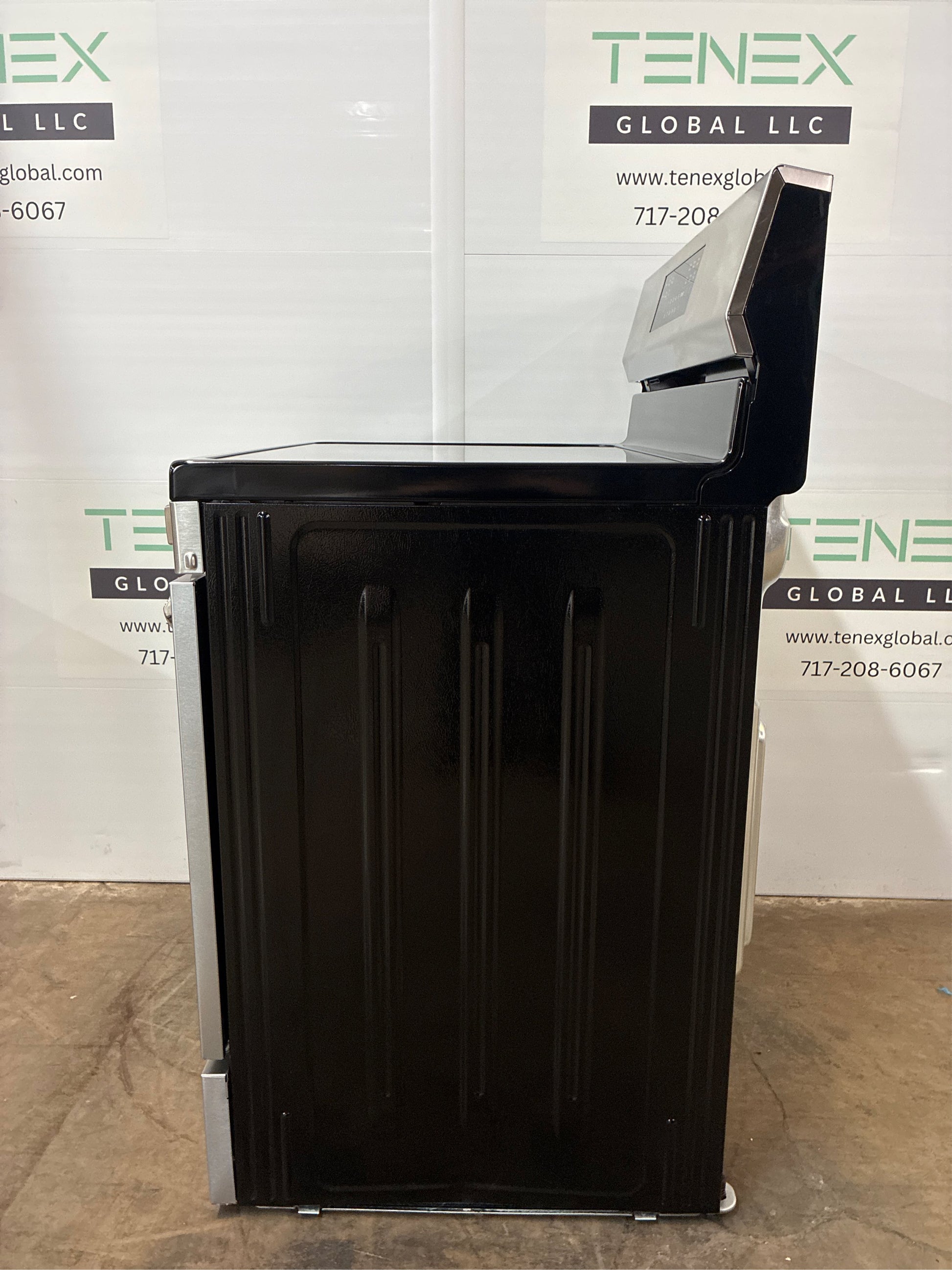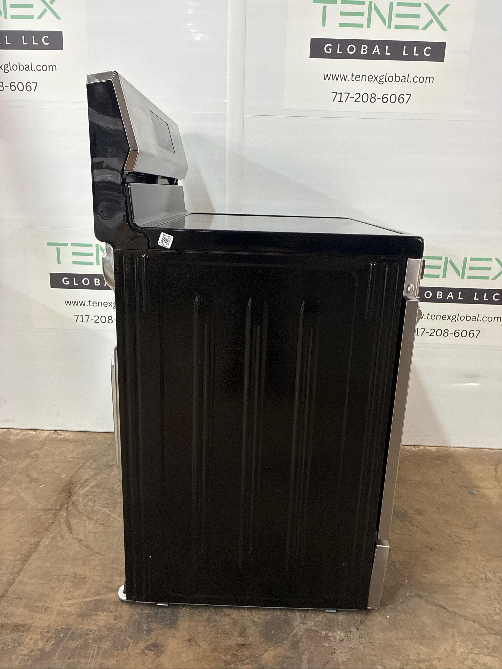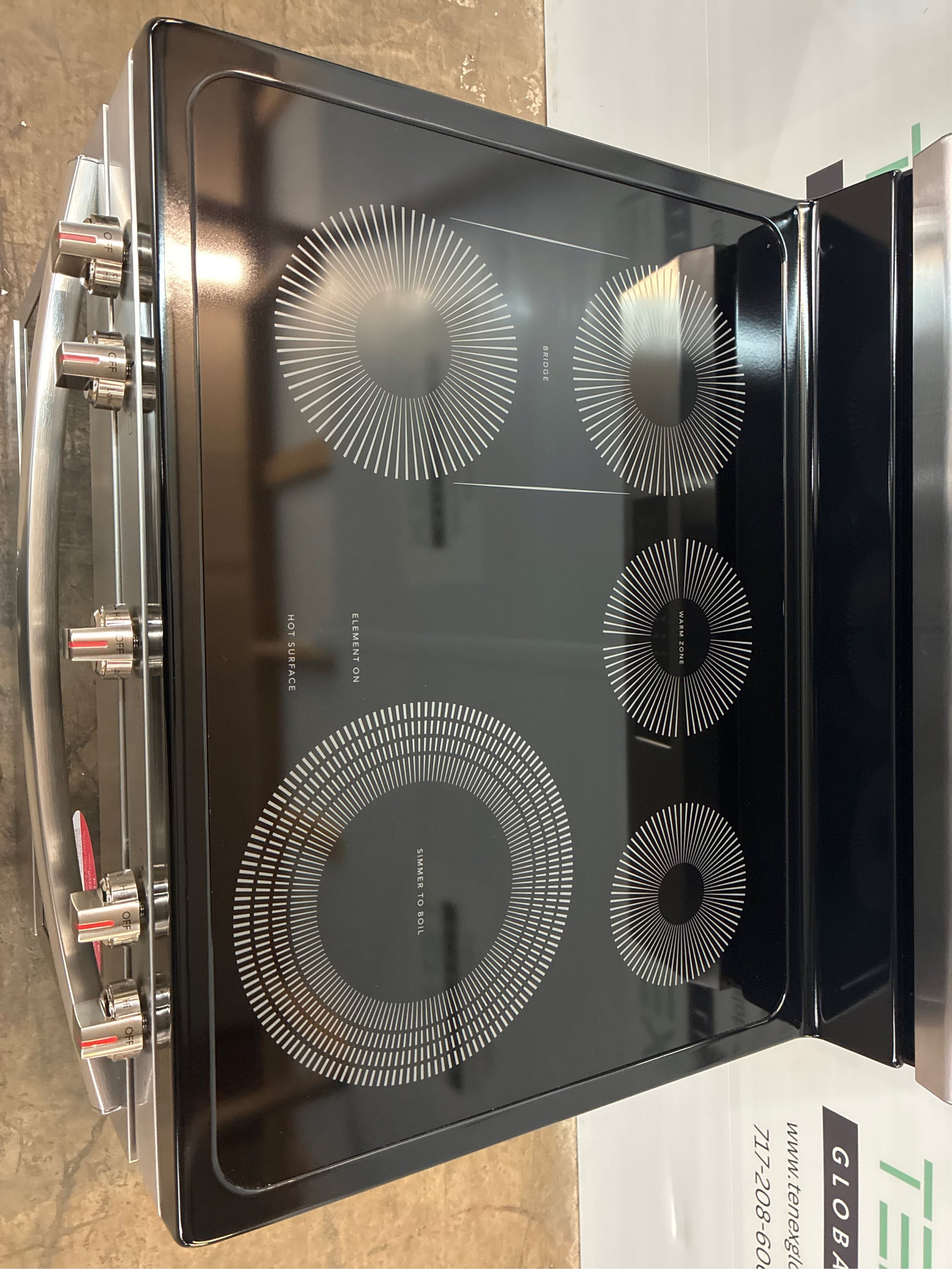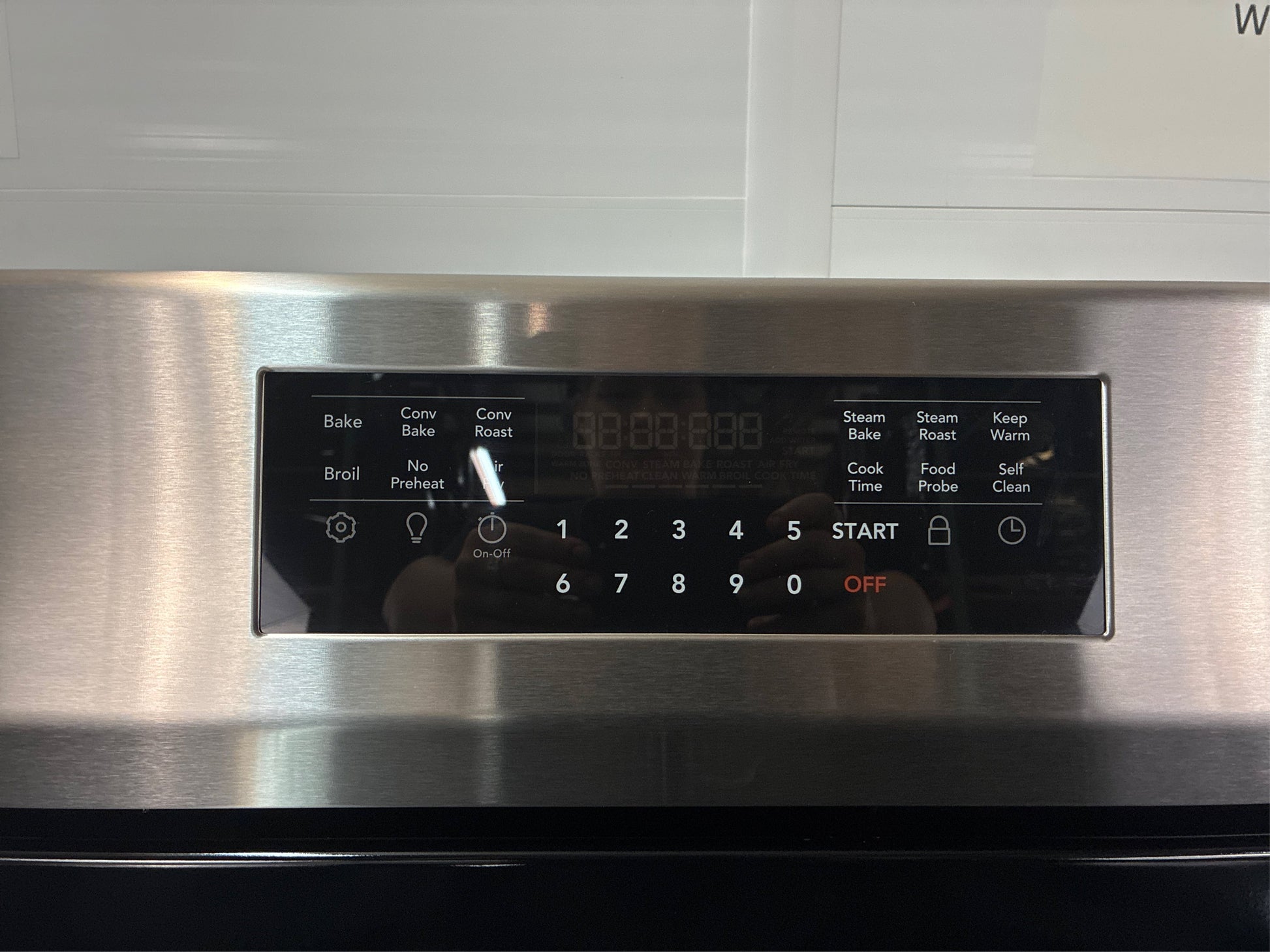 The Frigidaire Gallery 30 Rear Control Electric Range features our most powerful and advanced convection system, Total Convection, enabling so many cooking modes like No Preheat, Air Fry, Slow Cook, Steam Bake, Steam Roast, Air Sous Vide, Convection Roast, Convection Bake and more! The flexible five element cooktop includes a powerful 3,200 Watt EvenTemp element and a convenient bridge element - designed to handle all of your cooking needs. Also includes our fingerprint resistant, Smudge-Proof Stainless Steel finish. Slow Cook, Steam Bake plus more, powered by Total Convection. Skip preheating and start baking immediately with No Preheat. Deliver all of the flavor and none of the guilt with Air Fry - don't forget to add-on the Frigidaire ReadyCook air fry tray (model FRIGPEREAFT sold separately). This cooktop has five elements designed to handle all of your cooking needs, including our powerful 3,200 Watt EvenTemp element and convenient bridge element. With Slow Cook, your food cooks slowly and at a lower temperature (as low as 100 F), allowing you to lock in moisture and flavor without over or undercooking your food. The Temperature Probe monitors and alerts when the desired finished cooking temperature has been reached. With our EvenTemp cooktop technology, heat is evenly distributed across the element's surface, which reduces hot spots and cold areas in your pan. With Steam Bake, steam evenly circulates throughout the oven cavity, resulting in breads and muffins that rise higher and are light and fluffy. Enjoy more cleaning flexibility, select Steam Clean for a quick, 30 minute clean or choose Self Clean, which is available in 2, 3 and 4 hour cycles. Appliance Color/Finish: Stainless steel Handle Color: Stainless steel Manufacturer Color/Finish: Fingerprint Resistant Stainless Steel Sub-Brand: Gallery Type: Freestanding Adjustable Height: Yes Capacity (Cu. Feet): 5.3 Cutout Depth (Inches): 26 Cutout Height (Inches): 45 Cutout Width (Inches): 30 Depth (Inches): 26 Element #1 Size: 9-in Element #2 Size: 6-in Element #3 Size: 7-in Element #4 Size: 7-in Element #5 Size: 5-in Maximum Assembled Height (Inches): 47.75 Minimum Assembled Height (Inches): 46.75 Popular Widths: 30-in Range Size (Inches): 30 Usable Oven Interior (H x W x D): 18.125 x 25.187 x 19.875 Width (Inches): 30 ADA Compliant: No Adjustable Cleaning Levels: Yes Air Fry: Yes Appliance Type: Single oven electric range Automatic Convection Conversion: Yes Automatic Shut-Off: Yes Bridge Element: Yes Cleaning Method: Self-cleaning and steam cleaning Control Location: Behind elements Control Lockout: Yes Convection Element Type: Single-fan European element Convection Oven: Yes Cooking Surface Control Type: Knobs Cooking Surface Type: Smooth surface Customizable: No Delay Bake: Yes Digital Display: Yes Door Lock: Yes Downdraft Exhaust: No Dual/Triple Element: No Element #1 Wattage: 3200 Element #2 Wattage: 1200 Element #3 Wattage: 1800 Element #4 Wattage: 1800 Element #5 Wattage: 100 Element #6 Wattage: 0 Favorite Setting: No Fingerprint-Resistant: Yes Food Temperature Probe: Yes Fuel Type: Electric Glide/Rollout Racks: No Half/Split Rack: No Hidden Bake Element: Yes Hot Surface Indicator Lights: Yes Hub Required: No Induction Cooking: No Installation Type: Freestanding Interior Light(s) Type: Halogen Keep Warm Setting: Yes Light(s) Control: Oven light touch pad Lowe's Exclusive: No Number of Cooking Zones: 5 burners Number of Oven Rack Positions: 6 Number of Racks: 2 Oven Control Type: Electronic Pan Size Sensor: No Power Cord Included: No (sold separately) Power Element: Yes Power Source: Plug-in Professional: No Proofing: No Rapid Preheat: Yes Removable Washable Trays: No Sabbath Mode: Yes Self-Cleaning Oven Racks: No Simmer Element: Yes Single/Double Oven: Single Temperature-Sensor Baking: No Time Bake: Yes Voice Controlled: No Warming Drawer: No App Compatibility: No Bluetooth Compatibility: No Matching Gas (Model #): GCRG3060BF Matching Previous (Model #): GCRE3060AF Smart Compatible: No Wi-Fi Compatibility: No Works with Amazon Alexa: No Works with Android: No Works with Apple HomeKit: No Works with iOS: No Works with SmartThings: No Works with Sonos: No Works with the Google Assistant: No CA Residents: Prop 65 Warning(s): Yes ENERGY STAR Certified: No Safety Listing: UL safety listing UNSPSC: 52141500