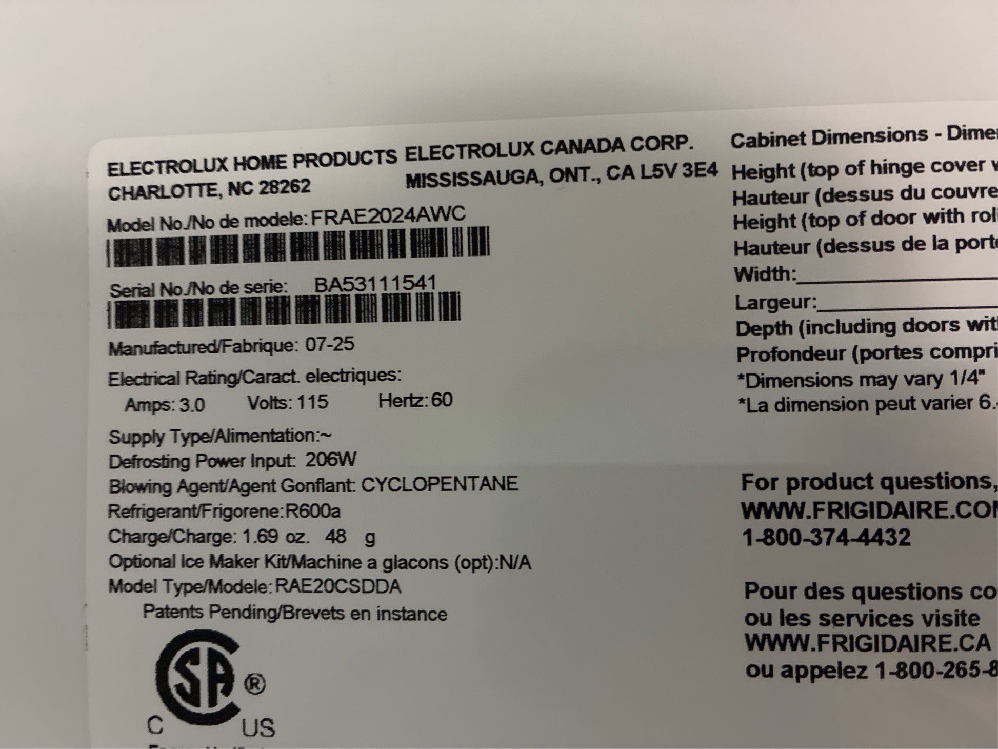 Brand: Frigidaire