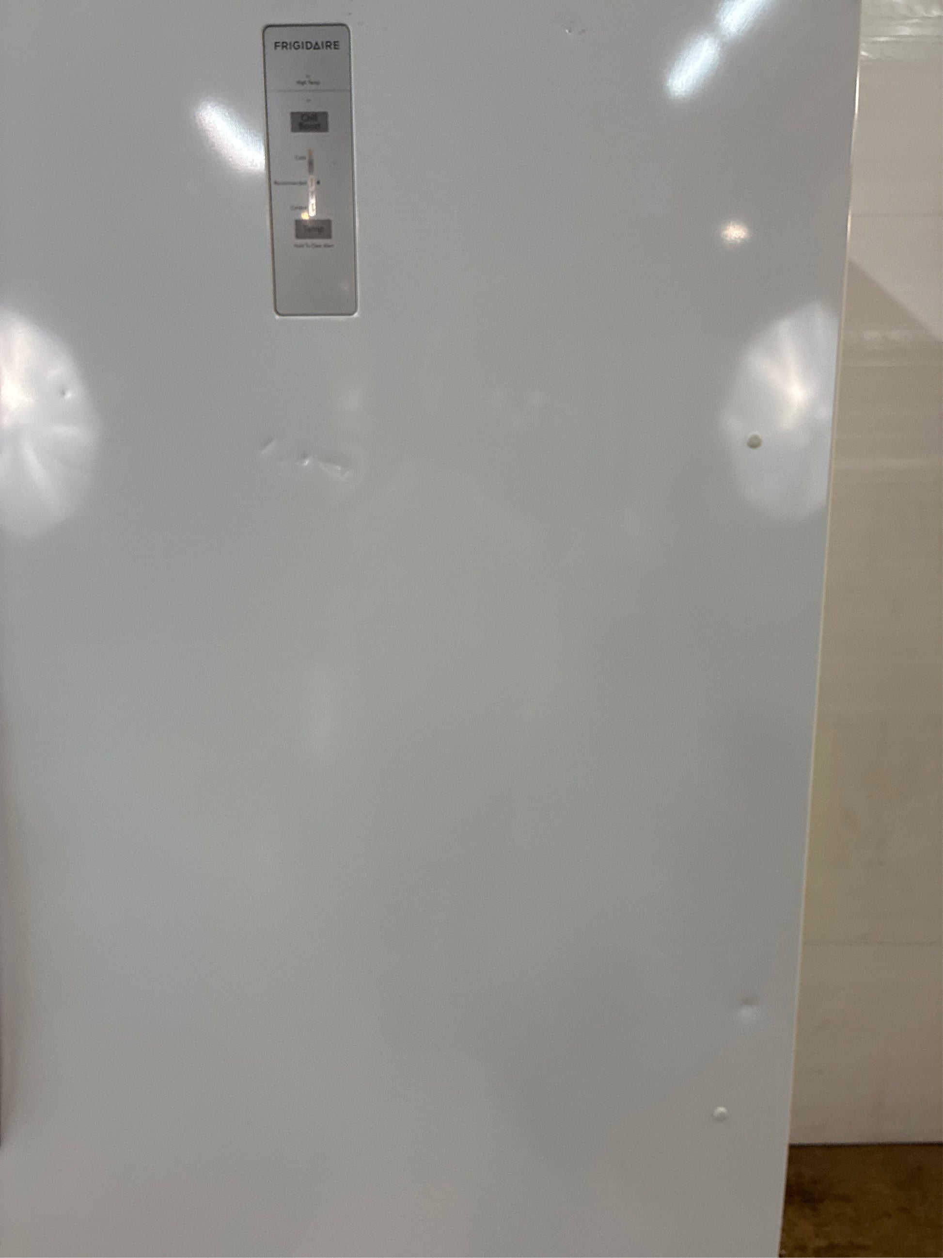 This Frigidaire 20 cubic foot upright refrigerator prevents warm spots and unwanted freezing and ensures a consistent temperature throughout with the EvenTemp cooling system. The flexible interior organization system enables you to easily organize your family's favorite foods with four adjustable, full-width glass shelves, deep bottom basket and five spacious door bins. Additionally, enjoy the ability to maintain the ideal environment for your refrigerated foods with our audible temperature alarm that alerts you if the door is left open or the refrigerator's temperature rises and auto-close doors, which ensure that your refrigerator is never left slightly open by mistake.. Appliance Category: Refrigerator. Appliance Series: Not Applicable. Appliance Type: Freezerless Refrigerator. Color - Appliance Cabinet: White. Color - Door Handle(s): Stainless Look. Color/Finish: White. Color/Finish Family: White. Defrost Type: Frost Free. Energy Efficiency Tier Rating: Not CEE rated. Freezer Type: No Freezer. General Features: Door Alarm,Garage Ready,Interior Light,LED Light Type,Sabbath Mode. Handle Type: Bar Handle. Hardware Color/Finish: White. Hardware Color/Finish Family: White. Ice Maker Features: No Ice Maker. Indoor/Outdoor: Indoor,Outdoor. Installation Depth: Standard Depth. Number of Doors: 1 Door. Number of Freezer Baskets/Bins: 5 Baskets/Bins. Number of Refrigerator Shelves: 4 Shelves. Operational Features: Sabbath Mode,Self-Closing Door. Product Weight (lb.): 165 lb. Refrigeration Dispenser Features: No Dispenser. Returnable: Non-Returnable. Shelf Material - Refrigerator: Glass. Storage Features: Adjustable Door Storage. Temperature Control Type: External Digital. Total Capacity (cu. ft.): 20 cu ft. Water Filter Replacement Model#: N/A. Certifications and Listings: Energy Star,UL Listed. Depth (Excluding Handles) (in.): 28.25 in. Depth (Including Handles) (in.): 29.875 in. Depth (Less Door) (in.): 24.25 in. Depth With Door Open 90 Degrees (in.): 58 in. Height to Top of Door Hinge (in.): 71.75 in. Height to Top of Refrigerator Case (in.): 71.25 in. Product Depth (in.): 29.875 in. Product Height (in.): 71.75 in. Product Width (in.): 32.625 in. Refrigerator Width (in.): 32.625 in. Total Capacity (cu. ft.): 20 cu ft. Height to Top (in.): 71.25 in. Installation Depth: Standard Depth. Features: Garage Ready. Dispenser Features: No Dispenser. Depth (Including Handles) (in.): 29.875 in. Height to Top of Door Hinge (in.): 71.75 in. Freezer Type: No Freezer