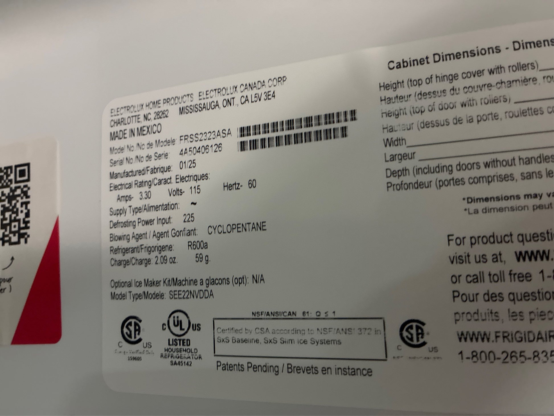 Title: Frigidaire 33 in. 22.3 cu. ft. Side by Side Fridge