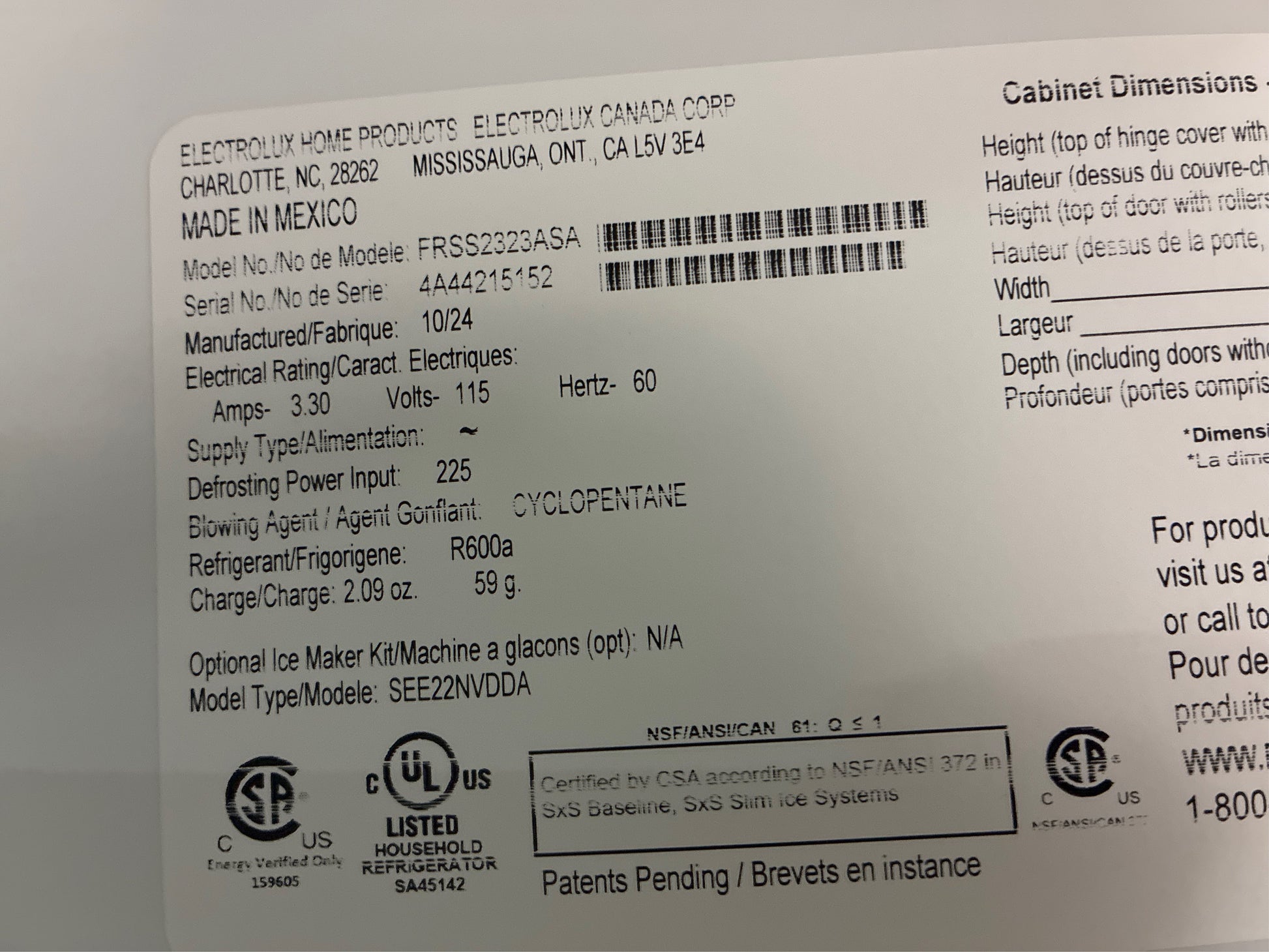 Title: Frigidaire 33 in. 22.3 cu. ft. Side by Side Fridge