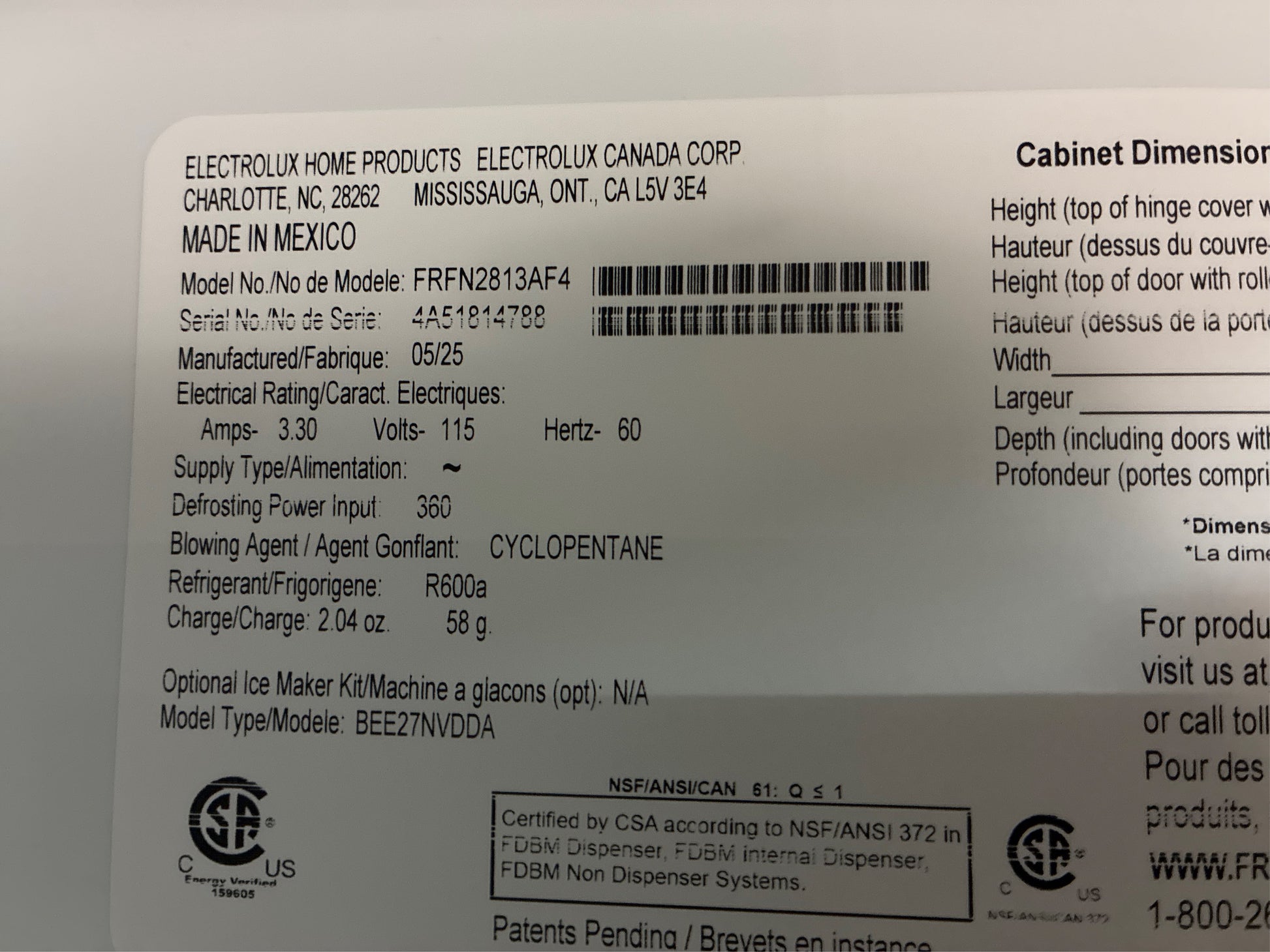 Brand: Frigidaire