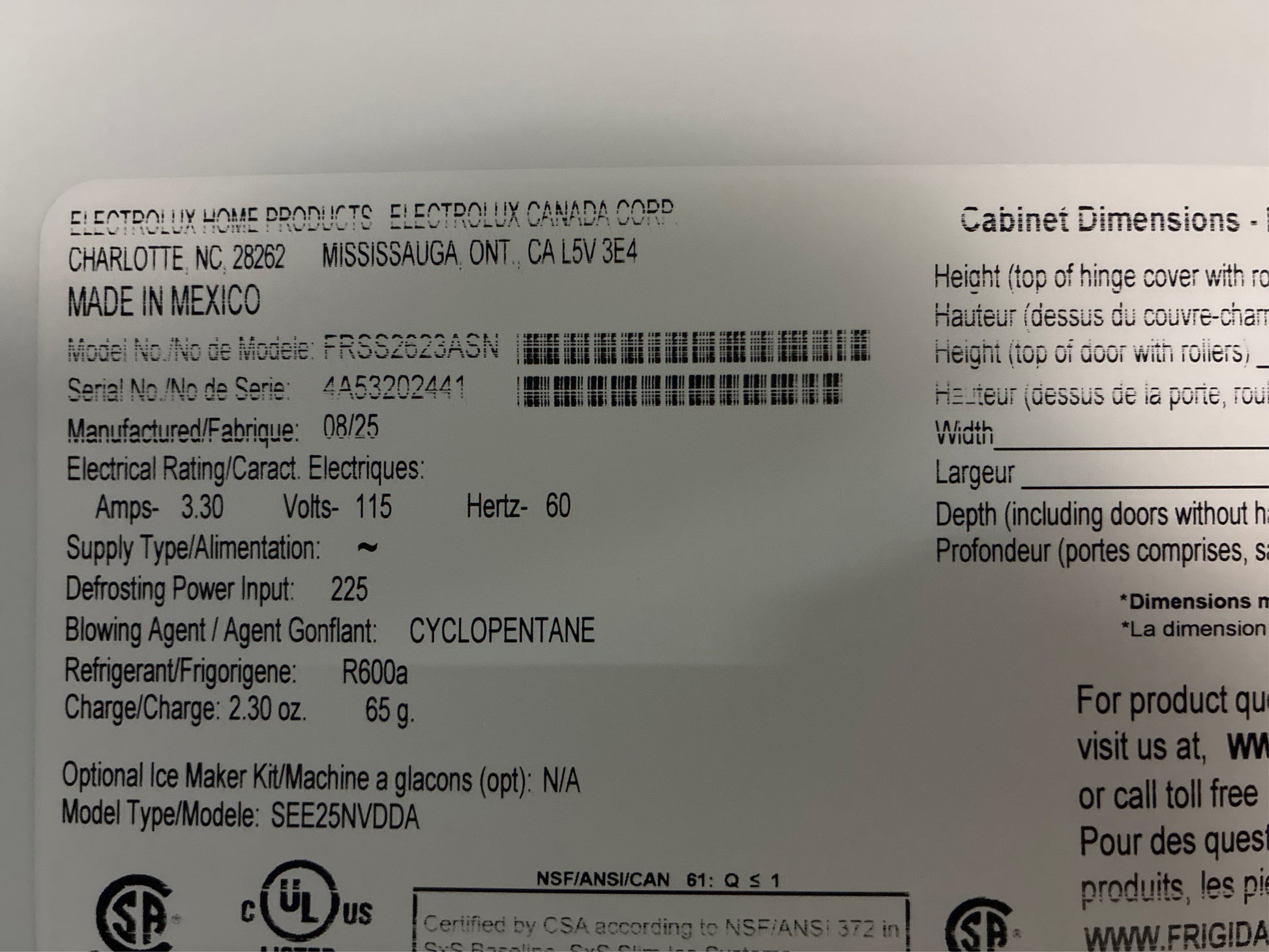 Model: FRSS2623AS