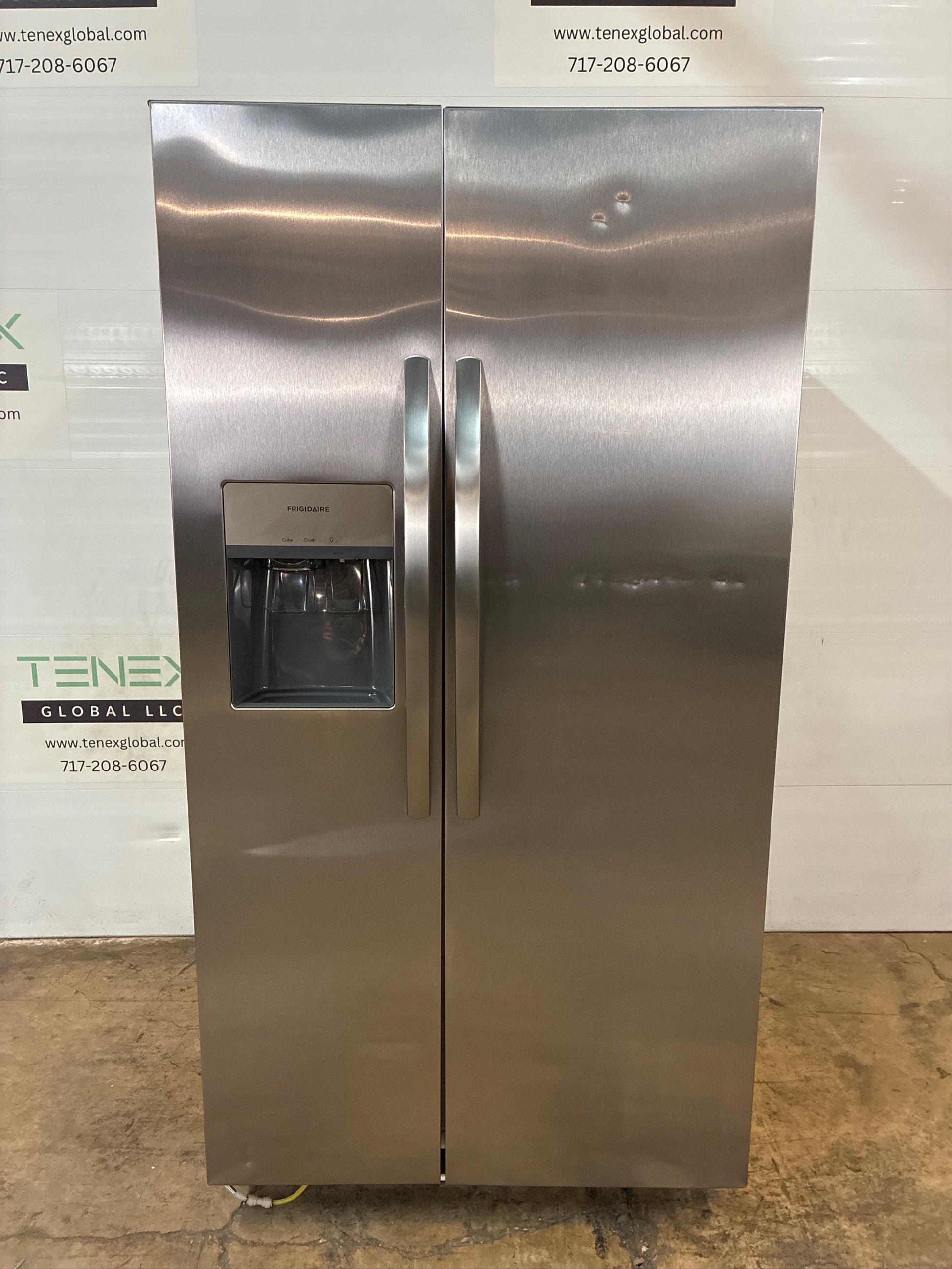This Frigidaire 36 in. Side-by-side refrigerator offers our EvenTemp Cooling System which reacts quickly to temperature fluctuations and constantly circulates cold air throughout the fresh food and freezer compartments, ensuring a consistent cool from top to bottom. PureSource 3-filtration gives you great-tasting clean water and ice. Bright Lighting in both the refrigerator and freezer compartments makes it easy to see what's inside.. EvenTemp Cooling System. Fresh Storage Crispers. Large Capacity with Flexible Organization. Bright LED Lighting. PurePour Water Filter. Cubed/Crushed Ice Dispenser. Power Failure Alarm. Door Ajar Alarm. Freezer: Automatic Defrost. Refrigerator Air Filter. SpillSafe Shelves. Compatible with water filter model : HDFPPWFU01 . Compatible with air filter model : PAULTRA2 . Click here for more information on Electronic Recycling Programs . Installation Depth: Standard Depth. Height to Top (in.): 68.625 in. Total Capacity (cu. ft.): 25.6 cu ft. Dispenser Features: Water Dispenser. Height to Top of Door Hinge (in.): 69.875 in. Ice Maker Features: Ice Maker. Depth (Excluding Handles) (in.): 32.5 in. Ice Maker Type: Dual Ice Maker