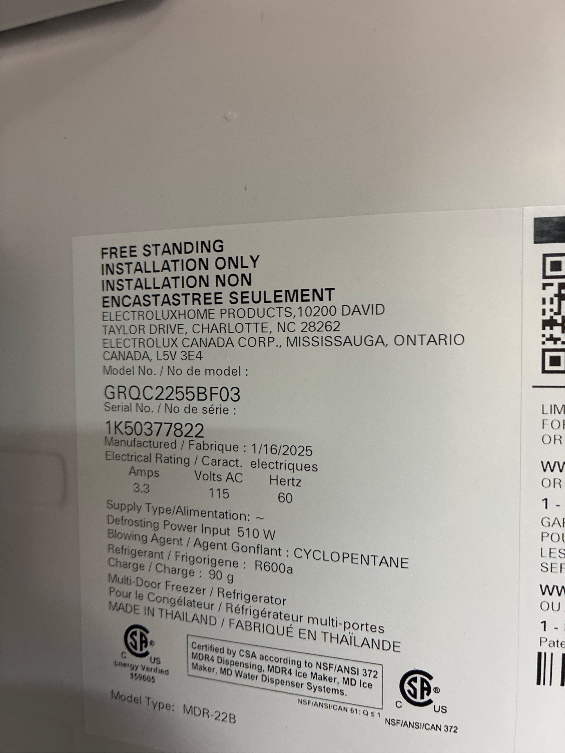 This Frigidaire four-door refrigerator offers the Custom-Flex Temp Zone, which converts from fridge to freezer, so you can store all your family favorites from yogurt to frozen pizza. It helps keep fruits and vegetables fresh longer with CrispSeal crispers with auto humidity, and it's easy to organize and clean with SpaceWise organization system and Smudge-Proof stainless steel. Awarded Editor's Choice of 2023 by Reviewed.com. This Four-Door Refrigerator is literally the best we've ever tested by Reviewed.com (USA Today). Switch from fridge to freezer with bottom-left Custom-Flex zone Keep produce fresher longer with auto moisture removing crispers Organization system has a place for everything, even frozen pizza Easily access your favorites - reach up to 75% of your food with only one door open Our cooling system ensures temperature and airflow distribution is even in both the refrigerator and freezer minimizing common issues, such as freezer burn and warm spots ENERGY STAR Certified Avoid spoiled food with our auto-close doors, which ensure your doors are never left slightly open by automatically closing once the door is ajar 5in or less Smudge-Proof Stainless Steel resists fingerprints and cleans easily Bright LED Lighting Appliance Color/Finish: Stainless steel Cabinet Color: Gray Manufacturer Color/Finish: Fingerprint Resistant Stainless Steel Sub-Brand: Gallery Toe Grille Color: No toe grille Appliance Type: French door refrigerator Actual Width (Inches): 35.8 Common Width (Inches): 36 Popular Widths: 36-in Depth (Excluding Handles) (Inches): 29.5 Depth (Including Handles) (Inches): 29.5 Depth (Less Door) (Inches): 24.6 Depth Type: Counter-Depth Depth with Door Open (Inches): 46.9 Height to Top of Case (Inches): 70 Height to Top of Door (Inches): 70 Height to Top of Door Hinge (Inches): 70.125 Overall Capacity (Cu. Feet): 21.5 Refrigerator Capacity (Cu. Feet): 13.1 Freezer Capacity (Cu. Feet): 5.2 Refrigerator Size: Medium (33 - 36-in) Weight (lbs.): 313 Ice and Water Dispensers: Both Ice/Water Location: External dispenser Ice Maker: Single Ice Type: Cubed/Crushed Space-Saving In-Door Ice: No Built-in Water Pitcher: No Water Filtration: Yes Water Filter Indicator: Yes Matching Replacement Water Filter Model: EPTWFU01 Freezer Door Style: Side swing Freezer Door Bins: 2 Freezer Baskets: 0 Freezer Drawers: 0 Freezer Shelves: 2 Freezer Light: Yes Frost-Free: Yes Reversible Freezer Door: No ADA Compliant: No Air Filtration: Yes Automatic Door Sensor: No Automatic Drawer Sensor: No Built-In: No Child Safety Locks: Yes Customizable: No Dispenser Light: Yes Door Alarm: Yes Door Shelves: 7 Door Style: Flat Door Texture: Smooth Door within Door: No Dual Evaporator Cooling System: Yes Electronic Temperature Control: Yes Fingerprint-Resistant: Yes Gallon Door Storage: Yes Garage Ready: No Hidden Hinge: Yes Hub Required: No Humidity-Controlled Crispers: 2 LED Light: Yes Lowe's Exclusive: No Number of Doors: 4 Panel Ready: No Pantry Drawer: No Professional: No Refrigerator Interior Lighting: LED See-Thru Door: No Shelf Options: Adjustable glass shelves Snack/Deli Drawer: No Soft Close Drawers: No Temperature Controlled Drawer: No Voice Controlled: No App Compatibility: No Bluetooth Compatibility: No Custom Door Kit Compatible: No Matching Air Filter (Model #): PAULTRA2 Smart Compatible: No Wi-Fi Compatibility: No Works with Amazon Alexa: No Works with Android: No Works with Apple HomeKit: No Works with iOS: No Works with SmartThings: No Works with Sonos: No Works with the Google Assistant: No Approved for Outdoor Use: No CA Residents: Prop 65 Warning(s): Yes ENERGY STAR Certified: Yes Safety Listing: CSA safety listing UNSPSC: 52141500