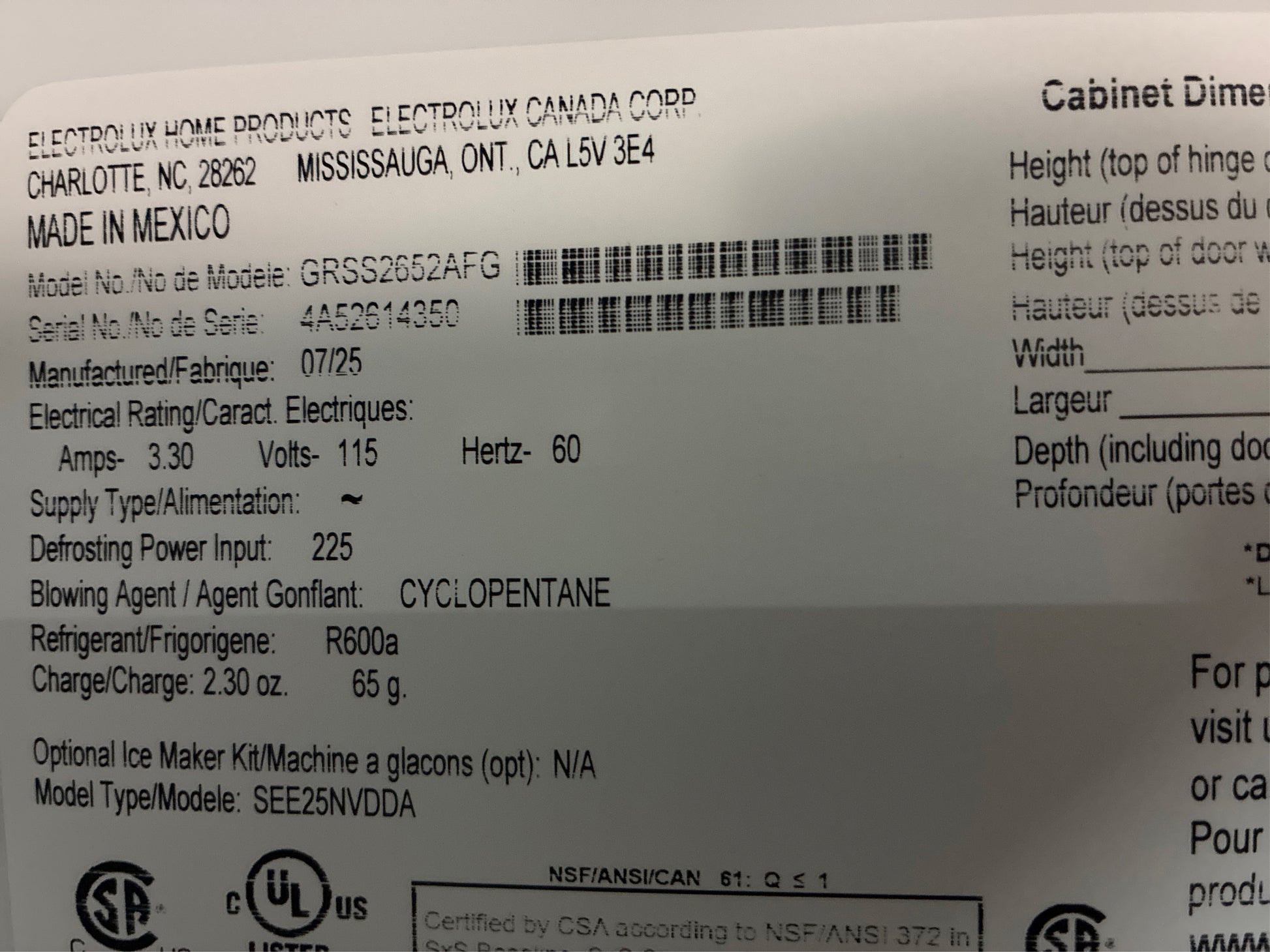 Model: GRSS2652AF