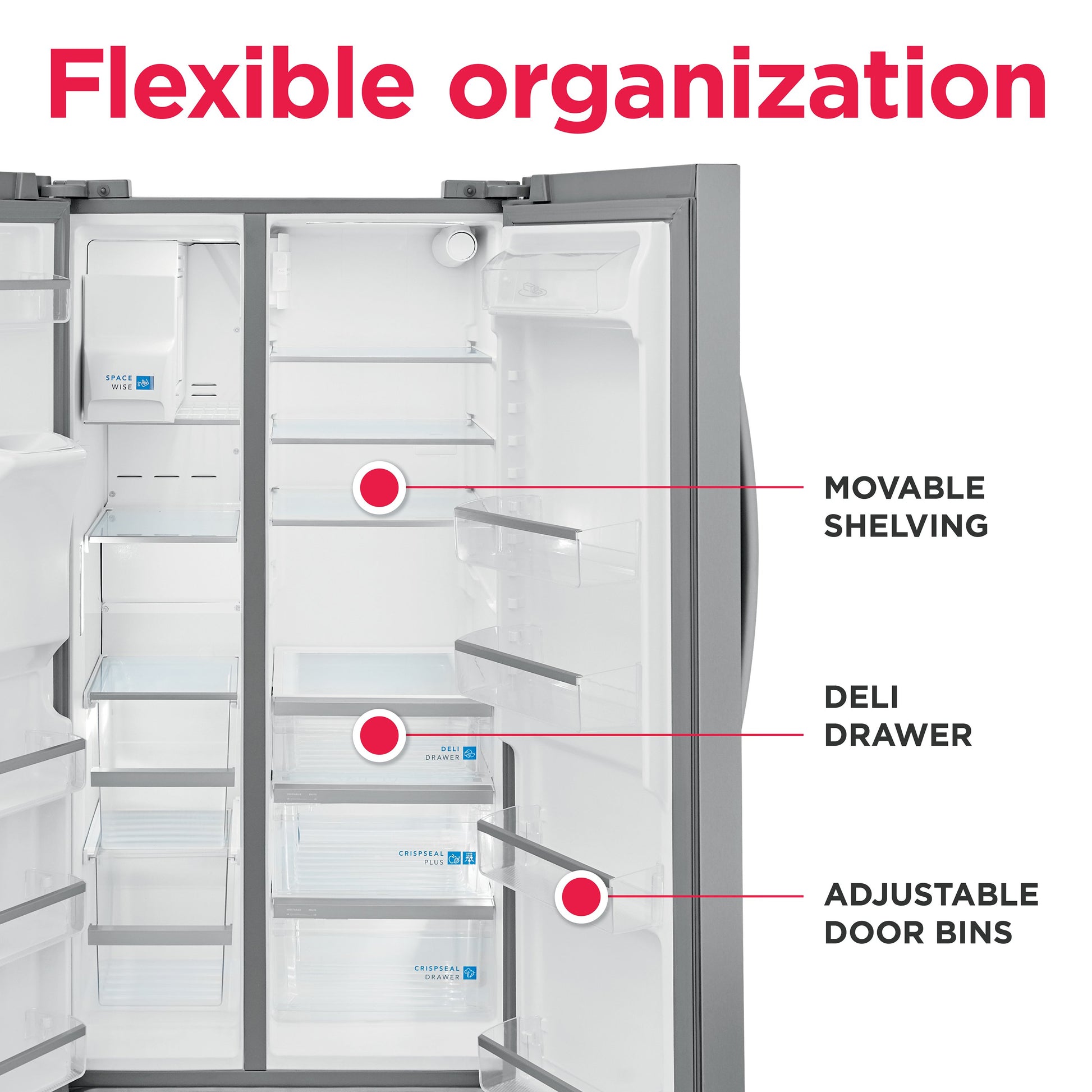 This Frigidaire Gallery 36-in side-by-side refrigerator offers our advanced CrispSeal plus crisper. This crisper keeps produce fresh with a seal that blocks out dry air, plus an added filter reduces the gas that causes produce to ripen faster. It also features our EvenTemp Cooling System which keeps your food fresh by reacting quickly to temperature fluctuations and constantly circulates cold air throughout the fresh food and freezer compartments, ensuring a consistent cool from top to bottom. Convenient dedicated Deli Drawer to easily organize favorites. Built in air filter that captures and keeps odors away. Keep produce fresh longer in our advanced crispers. Smudge-Proof Stainless Steel resists fingerprints and cleans easily. Save money and maximize energy efficiency with ENERGY STAR Certified appliances. Keep sandwich meats and cheeses organized and easy to reach in a convenient dedicated deli drawer. Find fresh foods quickly with our multi-level bright LED lighting. Keep safe, great tasting water flowing - our filter reduces up to 99% of contaminants, cuts back on plastic and saves the cost of bottled water - NSF and WQA certified. Our air filter performs better than baking soda, capturing undesirable smells to keep your fridge fresh for long. Appliance Color/Finish: Stainless steel Cabinet Color: Gray Handle Color: Stainless steel Manufacturer Color/Finish: Fingerprint Resistant Stainless Steel Sub-Brand: Gallery Toe Grille Color: Gray Actual Width (Inches): 36.25 Common Width (Inches): 36 Depth (Excluding Handles) (Inches): 33.375 Depth (Including Handles) (Inches): 35.875 Depth (Less Door) (Inches): 28.75 Depth Type: Standard-Depth Depth with Door Open (Inches): 50 Freezer Capacity (Cu. Feet): 9 Height to Top of Case (Inches): 68.625 Height to Top of Door (Inches): 68.625 Height to Top of Door Hinge (Inches): 69.875 Overall Capacity (Cu. Feet): 25.6 Popular Widths: 36-in Refrigerator Capacity (Cu. Feet): 16.6 Refrigerator Size: Medium (33 - 36-in) Weight (lbs.): 278.35 Ice and Water Dispensers: Both Ice/Water Location: External dispenser Ice Maker: Single Ice Type: Cubed/Crushed Space-Saving In-Door Ice: No Built-in Water Pitcher: No Water Filtration: Yes Water Filter Indicator: Yes Matching Replacement Water Filter Model: FPPWFU01 Freezer Baskets: 2 Freezer Door Bins: 4 Freezer Door Shelves: 0 Freezer Shelves: 3 Freezer Light: Yes Frost-Free: Yes Reversible Freezer Door: No ADA Compliant: Yes Air Filtration: Yes Appliance Type: Side-by-side refrigerator Automatic Door Sensor: No Automatic Drawer Sensor: No Built-In: No Child Safety Locks: Yes Customizable: No Dispenser Light: Yes Door Alarm: Yes Door Shelves: 4 Door Style: Flat Door Texture: Smooth Door within Door: No Dual Evaporator Cooling System: No Electronic Temperature Control: Yes Fingerprint-Resistant: Yes Gallon Door Storage: Yes Garage Ready: No Handle Type: Standard Hidden Hinge: No Hub Required: No Humidity-Controlled Crispers: 2 LED Light: Yes Lowe's Exclusive: No Panel Ready: No Professional: No Refrigerator Interior Lighting: LED See-Thru Door: No Shelf Options: Adjustable sliding glass shelves Snack/Deli Drawer: Yes Temperature Controlled Drawer: No Voice Controlled: No App Compatibility: No Bluetooth Compatibility: No Custom Door Kit Compatible: No Matching Air Filter (Model #): PAULTRA2 Matching Previous (Model #): FGSS2635TF Smart Compatible: No Wi-Fi Compatibility: No Works with Amazon Alexa: No Works with Android: No Works with Apple HomeKit: No Works with iOS: No Works with SmartThings: No Works with Sonos: No Works with the Google Assistant: No Approved for Outdoor Use: No CA Residents: Prop 65 Warning(s): No ENERGY STAR Certified: Yes Safety Listing: UL safety listing UNSPSC: 52141500