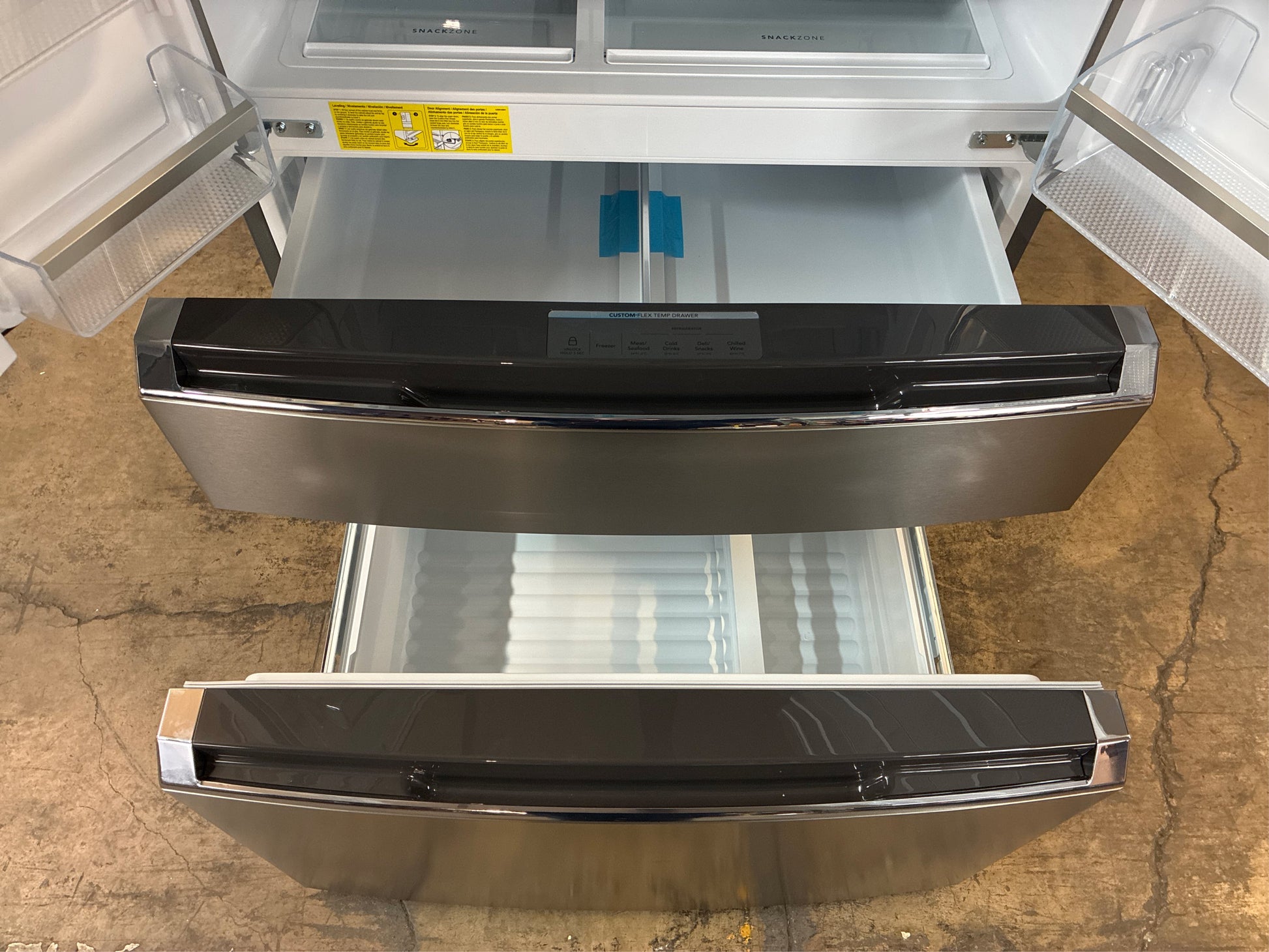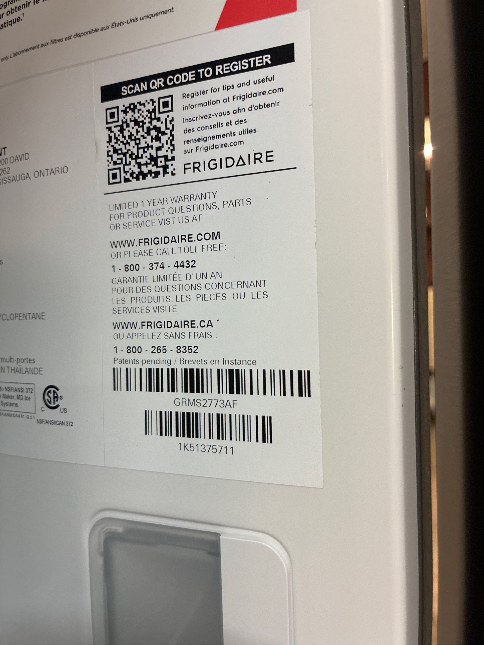 This Frigidaire Gallery 4-Door French Door refrigerator maintains the taste and texture of even your most delicate foods. Our freshness system is packed with technologies that keep food fresh and reduce food waste, such as our cooling system, advanced crispers, and our genuine air and water filtration. Our 3 advanced technologies block out dry air, automatically optimize humidity while removing excess moisture, and our built-in antioxidant filter reduces ethylene gas, odors and preserves produce color. Get more storage out of your refrigerator with clever organization solutions that maximize usable space, including in-door condiment storage, a slide-under shelf, a SnackZone, a flexible bin which can be used as crisper or an open compartment, and accessory railing system which works with our optional storage pan. Get extra space for all your most used items; store yogurt, beer, or even frozen pizzas with the middle drawer that can be a refrigerator or a freezer. Packed with technologies that reduce food waste and energy consumption, our refrigerator is a smart option for the environment and your wallet. Keep safer, great tasting water flowing and reduce up to 99% of contaminants while cutting back on plastic and the cost of bottled water with our water filter. Our cooling system ensures temperature and airflow distribution is even in both the refrigerator and freezer; this minimizes common issues, such as freezer burn and warm spots. Save money and maximize energy efficiency with ENERGY STAR Certified Appliances. Easily access your favorites - reach up to 75% of your food with only one door open. Smudge-Proof Stainless Steel resists fingerprints and cleans easily. Appliance Color/Finish: Stainless steel Cabinet Color: Gray Handle Color: Stainless steel Manufacturer Color/Finish: Fingerprint Resistant Stainless Steel Sub-Brand: Gallery Toe Grille Color: Gray Appliance Type: French door refrigerator Actual Width (Inches): 36 Common Width (Inches): 36 Popular Widths: 36-in Depth (Excluding Handles) (Inches): 34.6 Depth (Including Handles) (Inches): 36.8 Depth (Less Door) (Inches): 29.7 Depth Type: Standard-Depth Depth with Door Open (Inches): 51.8 Height to Top of Case (Inches): 68.1 Height to Top of Door (Inches): 68.1 Height to Top of Door Hinge (Inches): 70.2 Overall Capacity (Cu. Feet): 26.3 Refrigerator Capacity (Cu. Feet): 15.8 Freezer Capacity (Cu. Feet): 7.3 Refrigerator Size: Medium (33 - 36-in) Weight (lbs.): 335 Ice and Water Dispensers: Both Ice/Water Location: External dispenser Ice Maker: Single Ice Type: Cubed/Crushed Space-Saving In-Door Ice: No Built-in Water Pitcher: No Water Filtration: Yes Water Filter Indicator: Yes Matching Replacement Water Filter Model: FPPWFU01 Freezer Door Style: Pull-out drawer Freezer Door Bins: 0 Freezer Baskets: 1 Freezer Drawers: 1 Freezer Shelves: 1 Freezer Light: Yes Frost-Free: Yes Reversible Freezer Door: No ADA Compliant: No Air Filtration: Yes Automatic Door Sensor: No Automatic Drawer Sensor: No Built-In: No Child Safety Locks: No Customizable: No Dispenser Light: Yes Door Alarm: Yes Door Shelves: 7 Door Style: Flat Door Texture: Smooth Door within Door: No Dual Evaporator Cooling System: Yes Electronic Temperature Control: Yes Fingerprint-Resistant: Yes Gallon Door Storage: Yes Garage Ready: No Handle Type: Standard Hidden Hinge: Yes Hub Required: No Humidity-Controlled Crispers: 2 LED Light: Yes Lowe's Exclusive: No Number of Doors: 4 Panel Ready: No Pantry Drawer: No Professional: No Refrigerator Interior Lighting: LED See-Thru Door: No Shelf Options: Adjustable glass shelves Snack/Deli Drawer: No Soft Close Drawers: No Temperature Controlled Drawer: Yes Voice Controlled: No App Compatibility: No Bluetooth Compatibility: No Custom Door Kit Compatible: No Matching Air Filter (Model #): FRGPAAF2 Smart Compatible: No Wi-Fi Compatibility: No Works with Amazon Alexa: No Works with Android: No Works with Apple HomeKit: No Works with iOS: No Works with SmartThings: No Works with Sonos: No Works with the Google Assistant: No Approved for Outdoor Use: No CA Residents: Prop 65 Warning(s): Yes ENERGY STAR Certified: Yes Safety Listing: CSA safety listing UNSPSC: 52141500