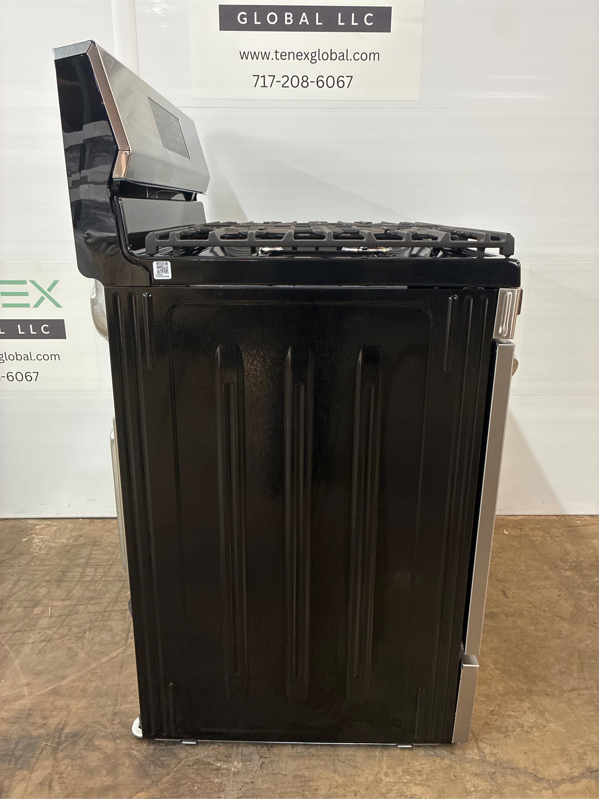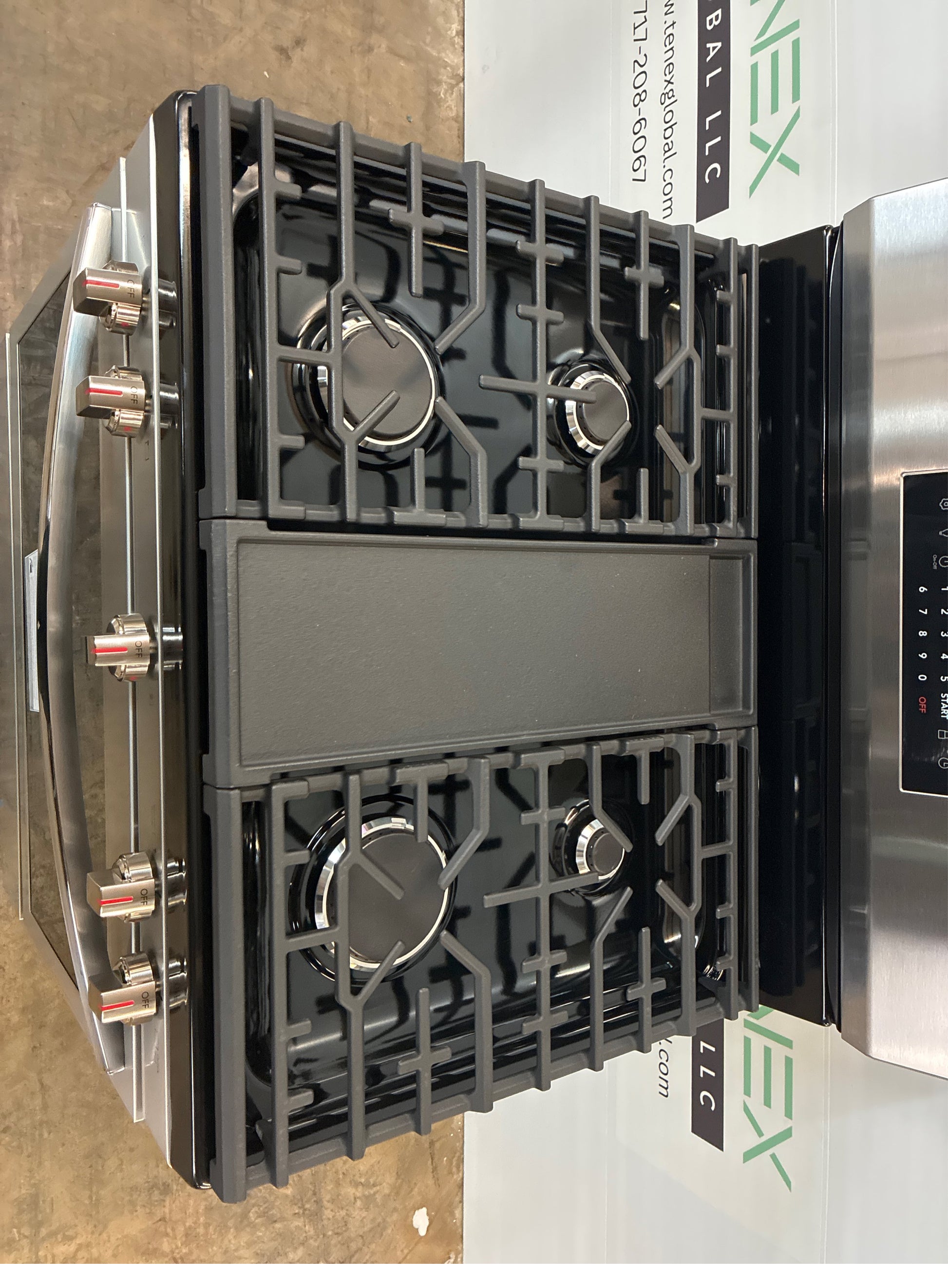 The Frigidaire Gallery 30 Rear Control Gas Range features our most powerful and advanced convection system, Total Convection, enabling so many cooking modes like No Preheat, Air Fry, Slow Cook, Steam Bake, Steam Roast, Air Sous Vide, Convection Roast, Convection Bake and more! The flexible five burner cooktop includes a powerful 18,000 BTU Quick Boil Burner and a center oval burner with an integrated cast iron griddle. Also includes our fingerprint resistant, Smudge-Proof Stainless Steel finish. Slow Cook, Steam Bake plus more, powered by Total Convection Skip preheating and start baking immediately with No Preheat Air Fry allows you to make healthier and delicious meals for the entire family, right in your oven - don't forget to add-on the Frigidaire ReadyCook air fry tray (model FRIGPEREAFT sold separately) With Slow Cook, your food cooks slowly and at a lower temperature (as low as 100 F), allowing you to lock in moisture and flavor without over or undercooking your food This cooktop has five burners designed to handle all of your cooking needs, including a powerful 18,000 BTU Quick Boil Burner and a center oval burner with an integrated cast iron griddle The Temperature Probe monitors and alerts when the desired finished cooking temperature has been reached With Steam Bake, steam evenly circulates throughout the oven cavity, resulting in breads and muffins that rise higher and are light and fluffy Enjoy more cleaning flexibility, select Steam Clean for a quick, 30 minute clean or choose Self Clean, which is available in 2, 3 and 4 hour cycles Steam Roast uses moisture to make perfectly crispy and tender meats and vegetables that are roasted to perfection Appliance Color/Finish: Stainless steel Handle Color: Stainless steel Manufacturer Color/Finish: Fingerprint Resistant Stainless Steel Sub-Brand: Gallery Type: Freestanding Adjustable Height: Yes Capacity (Cu. Feet): 5.1 Cutout Depth (Inches): 26 Cutout Height (Inches): 45 Cutout Width (Inches): 30 Depth (Inches): 26 Maximum Assembled Height (Inches): 47.75 Minimum Assembled Height (Inches): 46.75 Popular Widths: 30-in Range Size (Inches): 30 Usable Oven Interior (H x W x D): 17.625 x 25.187 x 19.875 Width (Inches): 30 ADA Compliant: No Adjustable Cleaning Levels: Yes Air Fry: Yes Appliance Type: Single oven gas range Auto Re-Ignition: Yes Automatic Convection Conversion: Yes Automatic Shut-Off: Yes Broiler Drawer: No Burner #1 Max BTU: 18000 Burner #2 Max BTU: 5000 Burner #3 Max BTU: 14000 Burner #4 Max BTU: 10000 Burner #5 Max BTU: 10000 Burner #6 Max BTU: 0 Burner Grate Material: Matte cast iron Cleaning Method: Self-cleaning and steam cleaning Continuous Grates: Yes Control Location: Behind elements Control Lockout: Yes Convection Element Type: Single-fan European element Convection Oven: Yes Cooking Surface Control Type: Knobs Cooking Surface Type: Standard Customizable: No Delay Bake: Yes Digital Display: Yes Dishwasher-Safe Grates: No Door Lock: Yes Downdraft Exhaust: No Drip Pans: No Dual/Tri-Ring Burner(s): No Favorite Setting: No Fingerprint-Resistant: Yes Food Temperature Probe: Yes Fuel Type: Natural gas Glide/Rollout Racks: No Half/Split Rack: No Hot Surface Indicator Lights: No Hub Required: No Ignition Type: Electronic Installation Type: Freestanding Integrated Griddle: Yes (Included) Interior Light(s) Type: Halogen Keep Warm Setting: Yes Light(s) Control: Oven light touch pad Lowe's Exclusive: No LP Conversion Kit Included: No LP Convertible: Yes Modular Design: No Number of Cooking Zones: 5 burners Number of Oven Rack Positions: 6 Number of Racks: 2 Oval Burner: No Oven Control Type: Electronic Power Burner (15,000 BTU+): Yes Power Cord Included: Yes Power Source: Plug-in Professional: No Rapid Preheat: Yes Removable Washable Trays: No Sabbath Mode: No Sealed Burners: Yes Self-Cleaning Oven Racks: No Simmer Burner: Yes Single/Double Oven: Single Steam Cook: No Temperature-Sensor Baking: No Time Bake: Yes Voice Controlled: No Warming Drawer: No Warranty: 1-year limited Wok Grate Included: No App Compatibility: No Bluetooth Compatibility: No Matching Electric (Model #): GCRE3060BF Matching Newer (Model #): GCRG3060BD Matching Previous (Model #): GCRG3060AF Smart Compatible: No Wi-Fi Compatibility: No Works with Amazon Alexa: No Works with Android: No Works with Apple HomeKit: No Works with iOS: No Works with SmartThings: No Works with Sonos: No Works with the Google Assistant: No CA Residents: Prop 65 Warning(s): Yes ENERGY STAR Certified: No Safety Listing: CSA safety listing UNSPSC: 52141500