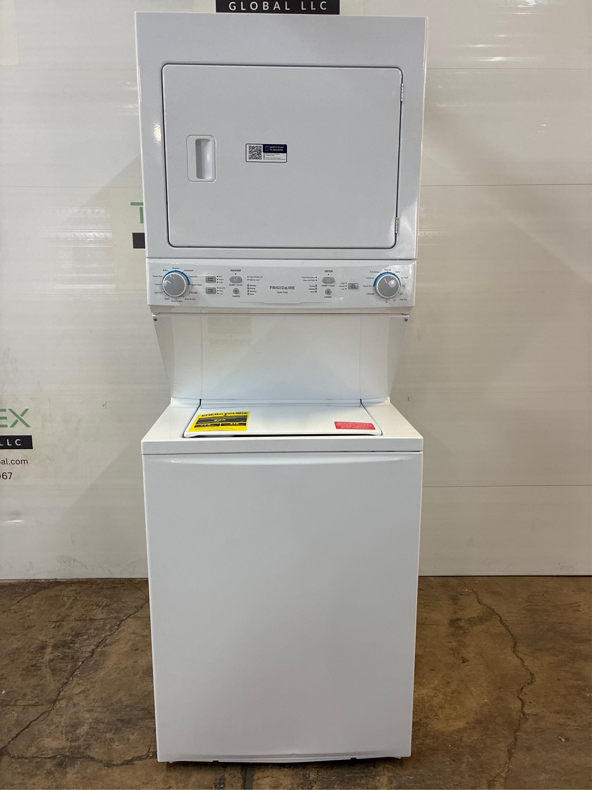 The Frigidaire laundry center with 3.9 Cu. Ft. Washer and 5.5 Cu. Ft. Dryer provides a big-time clean in a tight space with the movement of the powerful agitator. The max fill option allows for maximum water level for the selected cycle and the spacious capacity of the washer allows you to wash a king-sized comforter. Voltage rating 240, minimum 30 amps. Movement of agitator ensures your clothes come out clean. Wash and dry a single load in 60 minutes. Fit king-sized comforter with 3.9 cu ft washer capacity. MaxFill options allows for the maximum water level for the selected cycle. 10 Wash cycles including delicate, active wear, bulky and colors. 6 Dry cycles including delicate, active wear, bulky, and air fluff. 4 Timed dryer cycles so you can select your desired drying time limit that works with your schedule. New sound-dampening technology offers quieter operation. Dryer power cord not included, must be purchased separately. Appliance Color/Finish: White. Manufacturer Color/Finish: White. Series Name: Quick Wash & Dry Cycle, Maxfill and Long Vent. Sub-Brand: N/A. Depth with Door Closed (Inches): 31.5. Depth with Door Open (Inches): 47.5. Dryer Capacity (Cu. Feet): 5.6. Height (Inches): 76. Washer Capacity (Cu. Feet): 3.9. Weight (lbs.): 260. Width (Inches): 27. ADA Compliant: No. Control Type: Electro-mechanical. Customizable: No. Dispensers: Bleach only. Dryer Drum Material: Stainless steel. Dryer Load Type: Front load. End-of-Cycle Signal for Dryer: Yes. Extra Power: No. Fill and Drain Hoses Included: Drain hose included. Gas or Electric: Electric. Handwashable Cycle: No. Heat Pump: No. Heavy Duty Cycle: Yes. Interior Lighting: No. Lowe's Exclusive: No. Number of Drying Cycles: 10. Number of Rinse Cycles: 1. Number of Rinse Temperatures: 1. Number of Temperature Selections: 3. Number of Wash Cycles: 10. Power Source: Electric. Washer Load Type: Top load. Washer Tub Material: Stainless. Water Levels: 3. Matching Previous (Model #): FFLE3900UW. CA Residents: Prop 65 Warning(s): Yes. ENERGY STAR Certified: No. Safety Listing: UL safety listing. UNSPSC: 52141600.