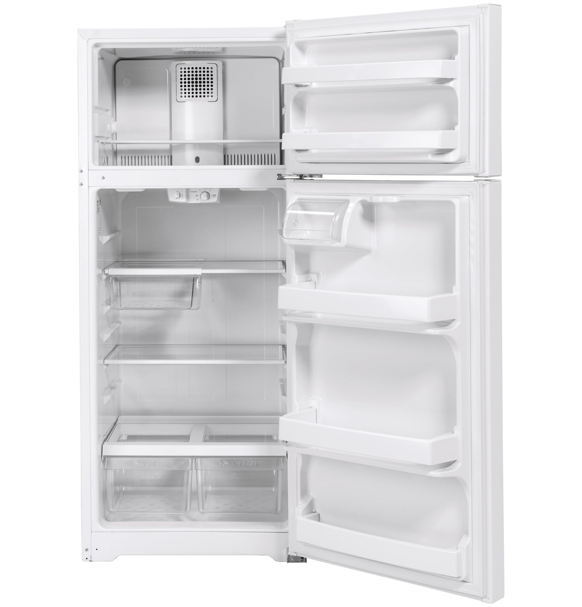 At GE Appliances, we bring good things to life. Our goal is to help people improve their lives at home by providing quality appliances that were made for real life. Whether it's enjoying the tradition of making meals from scratch or tackling a mountain of muddy jeans and soccer jerseys, GE Appliances are crafted to support any and every task in the home. LED lighting - find all your favorite foods under natural-looking light Edge-to-edge glass shelves - enjoy a polished look and easy-access cleaning with edge-to-edge shelves that extend the full width of the refrigerator Sliding deli drawer - enjoy greater flexibility in your fridge and easily create more space for tall items with an innovative drawer that can be positioned wherever you prefer High-gloss finish - make your kitchen shine with a polished finish that stands out in any setting Adjustable glass freezer shelf - provides the flexibility to organize your frozen food items Upfront temperature controls - easy-to-use controls regulate both fresh food and freezer sections High-gloss handles - provide an appearance that is easy to clean Large 13.49 cu ft fresh-food capacity - provides additional interior space 4.03 cu ft freezer capacity - allows for additional storage Appliance Color/Finish: White Cabinet Color: White Handle Color: White Manufacturer Color/Finish: White Sub-Brand: N/A Toe Grille Color: White Appliance Type: Top-freezer refrigerator Actual Width (Inches): 28 Common Width (Inches): 28 Popular Widths: 28-in Depth (Excluding Handles) (Inches): 30.5 Depth (Including Handles) (Inches): 32.5 Depth (Less Door) (Inches): 26.75 Depth Type: Standard-Depth Depth with Door Open (Inches): 57 Height to Top of Case (Inches): 66.875 Height to Top of Door (Inches): 67.375 Height to Top of Door Hinge (Inches): 67.4 Overall Capacity (Cu. Feet): 17.5 Refrigerator Capacity (Cu. Feet): 13.49 Freezer Capacity (Cu. Feet): 4.03 Refrigerator Size: Small (