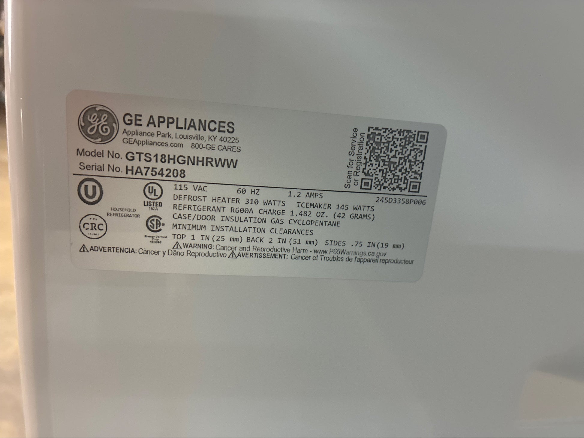 Model: GTS18HGNRWW