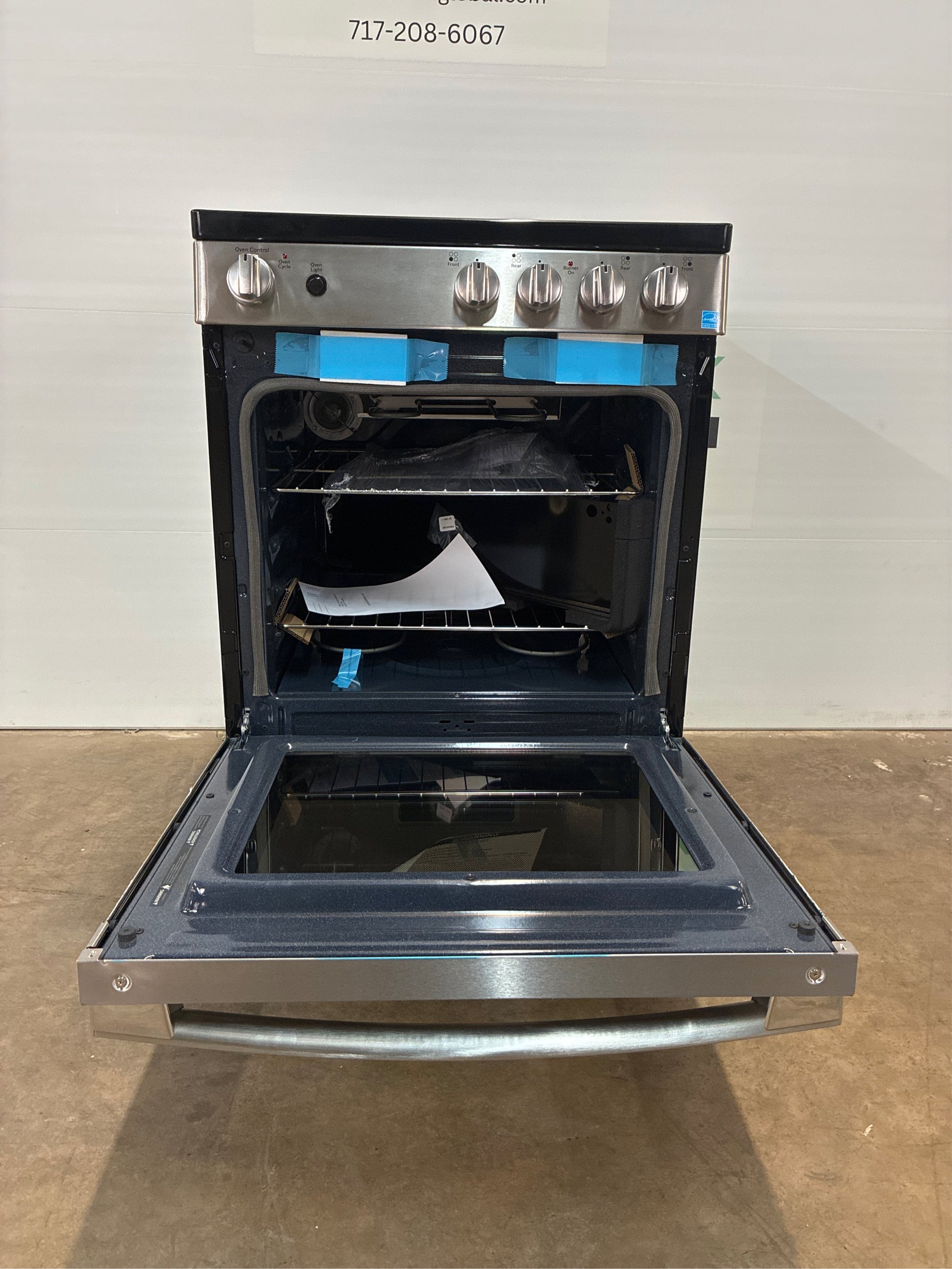 At GE Appliances, we bring good things to life. Our goal is to help people improve their lives at home by providing quality appliances that were made for real life. Whether it's enjoying the tradition of making meals from scratch or tackling a mountain of muddy jeans and soccer jerseys, GE Appliances are crafted to support any and every task in the home. Front controls - easily-assessable controls make it simple to control the stovetop and oven Ceramic glass cooktop - smooth cooktop easily wipes clean Steam clean - the power of steam eliminates oven scrubbing with just a 30-minute cycle Modular Backguard - versatile design gives you the option of a traditional look, or flip down to create a slide-in appearance In-oven broil - healthy meals are hassle-free with in-oven broiling Large window - keep an eye on foods without opening the oven door and losing heat Interior oven light - a bright light illuminates the oven's interior to make it easy to monitor progress Storage drawer - ideal for cookware and kitchen accessories Appliance Color/Finish: Stainless steel Handle Color: Stainless Steel Manufacturer Color/Finish: Stainless Steel Sub-Brand: N/A Type: Freestanding Adjustable Height: Yes Capacity (Cu. Feet): 2.9 Cutout Depth (Inches): 24 Cutout Height (Inches): 36 Cutout Width (Inches): 24 Depth (Inches): 28 Element #1 Size: 6-in Element #2 Size: 8-in Element #3 Size: 6-in Element #4 Size: 8-in Maximum Assembled Height (Inches): 41.25 Minimum Assembled Height (Inches): 41 Popular Widths: 24-in Range Size (Inches): 24 Usable Oven Interior (H x W x D): 15.375-in x 19-in x 17.125-in Width (Inches): 23.875 ADA Compliant: Yes Adjustable Cleaning Levels: No Air Fry: No Air Sous Vide: No Appliance Type: Single oven electric range Automatic Convection Conversion: No Automatic Shut-Off: No Bridge Element: No Cleaning Method: Steam cleaning Control Location: In front of elements Control Lockout: No Convection Element Type: None Convection Oven: No Cooking Surface Control Type: Knobs Cooking Surface Type: Smooth surface Customizable: No Dehydrator Oven: No Delay Bake: No Digital Display: No Door Lock: No Downdraft Exhaust: No Dual/Triple Element: No Element #1 Wattage: 1200 Element #2 Wattage: 2000 Element #3 Wattage: 1200 Element #4 Wattage: 2000 Element #5 Wattage: 0 Element #6 Wattage: 0 Favorite Setting: No Fingerprint-Resistant: No Food Temperature Probe: No Fuel Type: Electric Glide/Rollout Racks: No Half/Split Rack: No Hidden Bake Element: No Hot Surface Indicator Lights: Yes Hub Required: No Induction Cooking: No Installation Type: Freestanding Interior Light(s) Type: Standard (incandescent) Keep Warm Setting: No Light(s) Control: Oven light switch Lowe's Exclusive: No Number of Cooking Zones: 4 burners Number of Oven Rack Positions: 4 Number of Racks: 2 Oven Control Type: Knobs Pan Size Sensor: No Power Cord Included: No (sold separately) Power Element: No Power Source: Electric Professional: No Proofing: No Rapid Preheat: No Removable Washable Trays: No Sabbath Mode: No Self-Cleaning Oven Racks: No Simmer Element: No Single/Double Oven: Single Steam Cook: No Temperature-Sensor Baking: No Time Bake: No True Convection: No Voice Controlled: No Warming Drawer: No Wipe Clean Coating: No App Compatibility: No Bluetooth Compatibility: No Matching Gas (Model #): JGAS640RMSS Smart Compatible: No Wi-Fi Compatibility: No Works with Amazon Alexa: No Works with Android: No Works with Apple HomeKit: No Works with iOS: No Works with SmartThings: No Works with Sonos: No Works with the Google Assistant: No CA Residents: Prop 65 Warning(s): Yes ENERGY STAR Certified: No Safety Listing: UL safety listing UNSPSC: 52141500