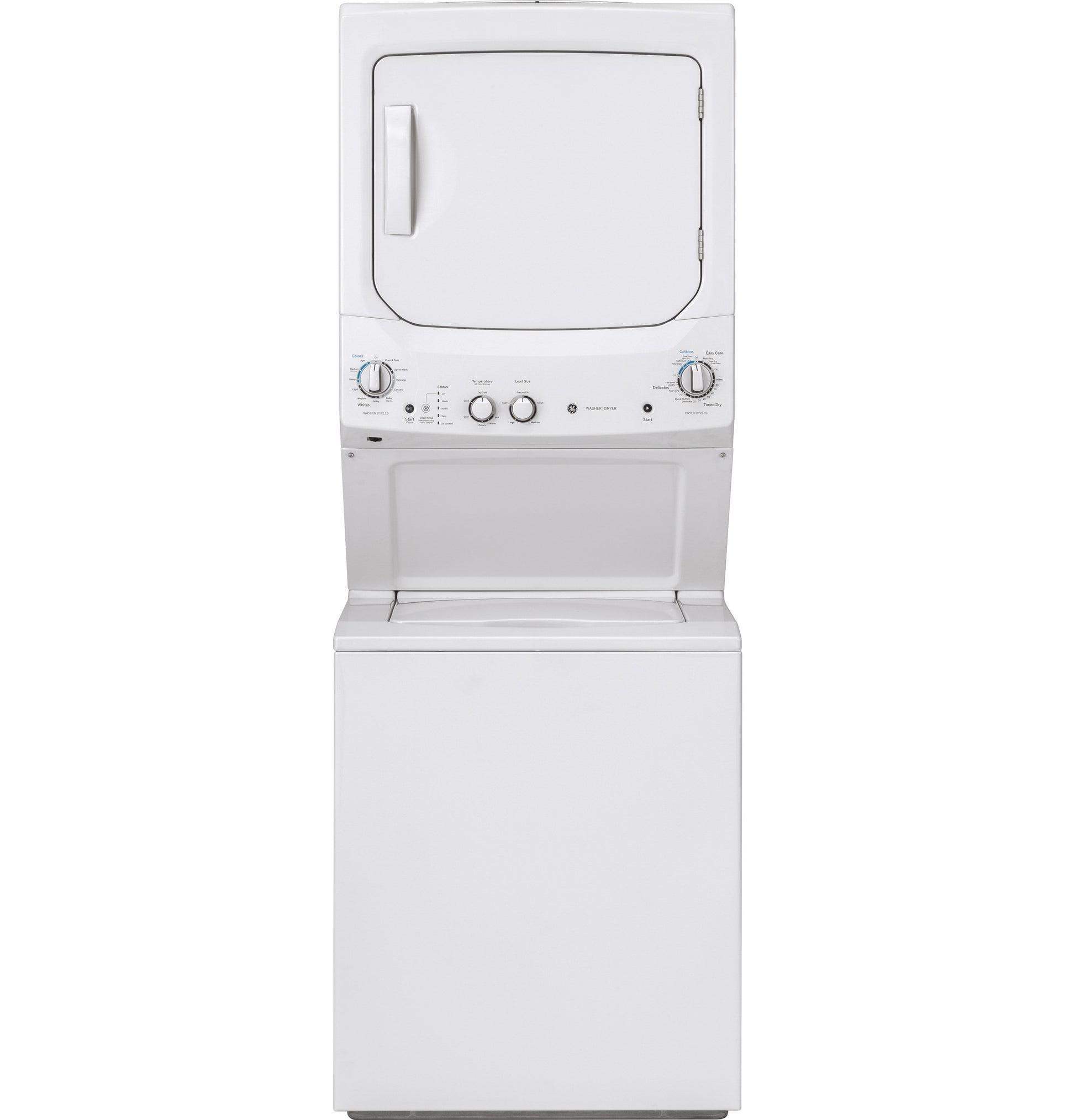 At GE Appliances, we bring good things to life. Our goal is to help people improve their lives at home by providing quality appliances that were made for real life. Whether it's enjoying the tradition of making meals from scratch or tackling a mountain of muddy jeans and soccer jerseys, GE Appliances are crafted to support any and every task in the home. Rotary- electromechanical controls (dryer) - allow fast, easy cycle selection 11 wash cycles - cycles are designed to specifically handle various fabrics and soils 6 wash/rinse temperatures - select the right temperature for ideal wash results 1 wash/spin speed combination - speeds are matched to fabric type for great clothes care Auto-load sensing with 4 water levels - washer will automatically measure the load size and add just the right amount of water Rotary-electronic controls (washer) - simplify cycle selection Washer hoses included; 120V power cord sold separately Appliance Color/Finish: White Manufacturer Color/Finish: White Depth with Door Closed (Inches): 30.875 Depth with Door Open (Inches): 47.5 Dryer Capacity (Cu. Feet): 5.9 Height (Inches): 75.875 Washer Capacity (Cu. Feet): 3.8 Weight (lbs.): 251 Width (Inches): 26.75 ADA Compliant: No Air Dry/Air Fluff Cycle: Yes Allergen/Sanitary Cycle: No Anti-Vibration: No Automatic Detergent Dispenser: No Automatic Temperature Control: Yes Bulky/Large Items Cycle: Yes Child Safety Locks: No Control Type: Rotary-mechanical Custom Program Cycle: No Customizable: No Delay Start: No Delicate Cycle: Yes Dispensers: Bleach; fabric softener Dryer Drum Material: Other Dryer Load Type: Front load Dryer Power Cord Included: No End-of-Cycle Signal for Dryer: No Energy Efficient Cycle: No Extra Power: No Fill and Drain Hoses Included: Fill hoses included Gas or Electric: Gas Handwashable Cycle: No Heat Pump: No Heavy Duty Cycle: Yes Interior Lighting: No Lowe's Exclusive: No LP Convertible: Yes Number of Drying Cycles: 4 Number of Rinse Cycles: 2 Number of Rinse Temperatures: 6 Number of Temperature Selections: 4 Number of Wash Cycles: 11 Odor Blocking: No Permanent Press Cycle: No Power Source: Gas Programmable Wash Cycles: No Quick/Express Cycle: Yes Sensor Dry Cycle: Yes Silk Cycle: No Soak Cycle: Yes Soft Close Lid: No Steam Cycle: No Timed Dry Cycle: Yes Touch-Up Cycle: Yes Towels Cycle: No Volts: 120 Washer Load Type: Top load Washer Power Cord Included: Yes Washer Tub Material: Stainless Water Levels: Adaptive Fill + 4 levels Whites Cycle: Yes Wool Cycle: No CA Residents: Prop 65 Warning(s): Yes ENERGY STAR Certified: No Safety Listing: UL safety listing UNSPSC: 52141600