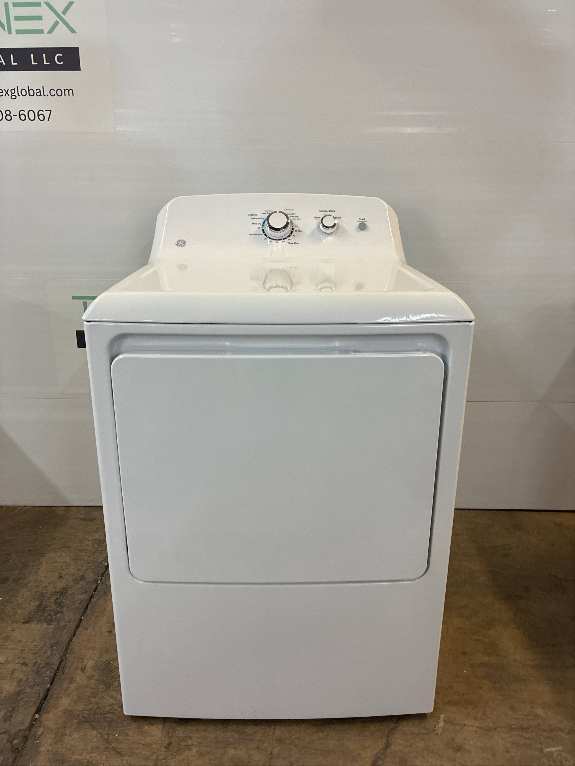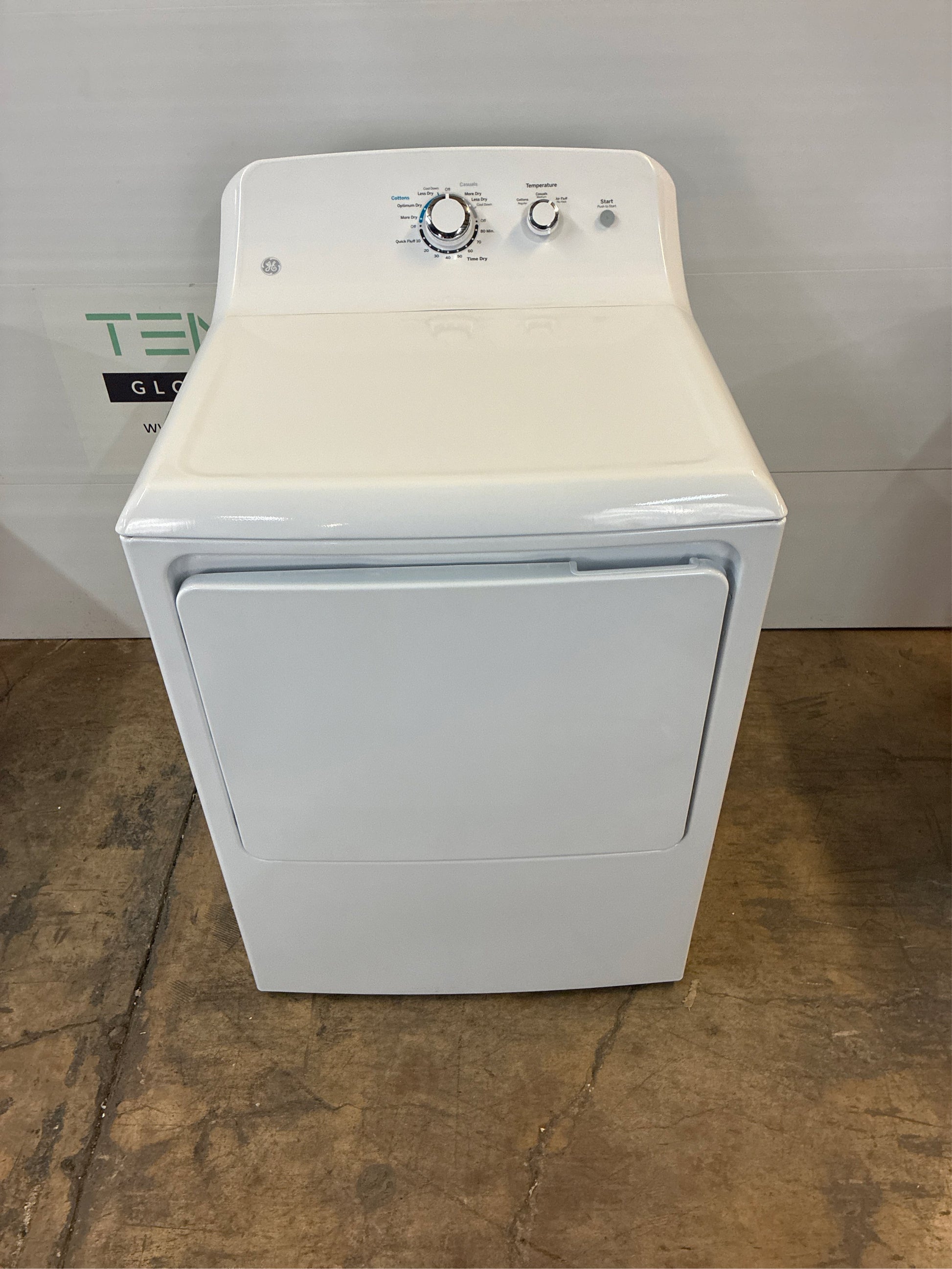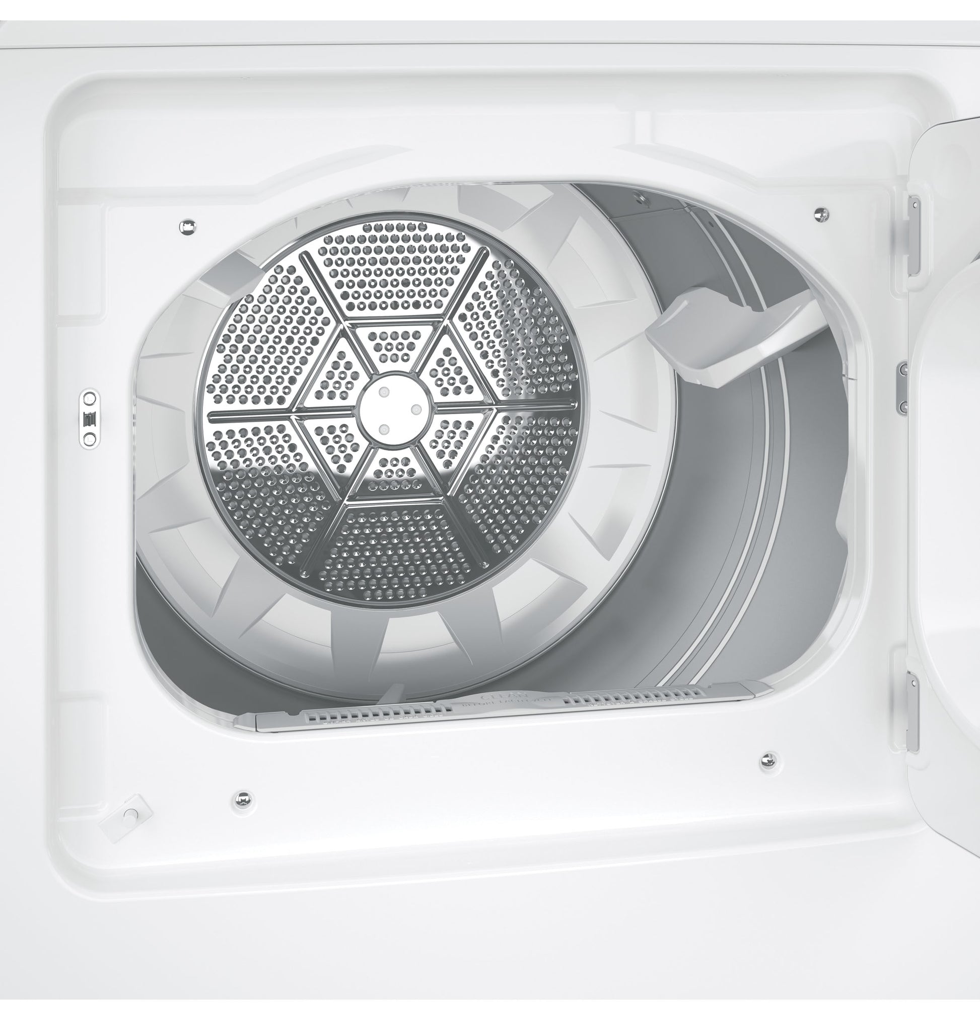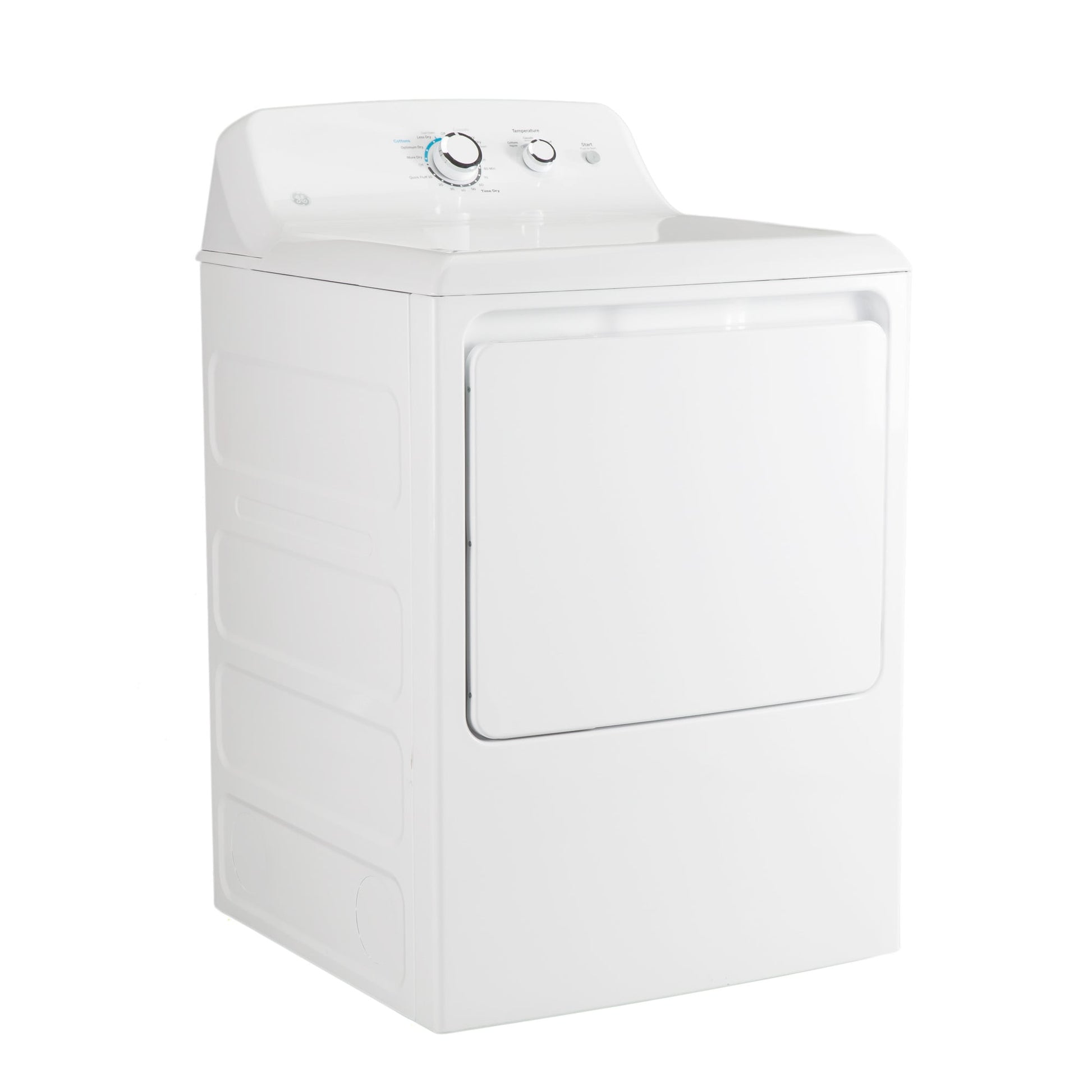 At GE Appliances, we bring good things to life. Our goal is to help people improve their lives at home by providing quality appliances that were made for real life. Whether it's enjoying the tradition of making meals from scratch or tackling a mountain of muddy jeans and soccer jerseys, GE Appliances are crafted to support any and every task in the home. Auto Dry - for clothes that come out feeling and looking great, this setting monitors air temperature to set the optimal drying time Up to 120 ft venting capability - provides flexible installation Aluminized alloy drum - improves energy efficiency and resists corrosion 3 heat selections - offer a choice of drying temperatures for personalized fabric care Flat back design - makes it easy to install in small areas like closets and utility rooms where space is limited Rotary electromechanical controls - make it simple to set cycles Upfront lint filter - makes cleaning out lint easy Reverse-a-door - door opening can be reversed to meet laundry room needs Appliance Color/Finish: White Manufacturer Color/Finish: White Sub-Brand: N/A Adjustable Height: No Capacity (Cu. Feet): 6.2 Depth with Door Closed (Inches): 26.75 Depth with Door Open (Inches): 49.25 Dryer Capacity (Cu. Feet): 6.2 Height (Inches): 44 Item Weight (lbs.): 100 Maximum Assembled Height (Inches): 44 Minimum Assembled Height (Inches): 44 Size: Medium Width (Inches): 27 ADA Compliant: No Air Dry/Air Fluff Cycle: Yes Appliance Type: Electric dryer Automatic Temperature Control: No Check Lint Screen Light: No Child Safety Locks: No Control Panel Language: English Control Type: Electro-mechanical Custom Program Cycle: No Customizable: No Cycle Status Lights: No Delay Start: No Delicate Cycle: No Door Type: Reversible side swing Drum Material: Aluminum alloy Dryer Load Type: Top load Dryer Rack: No Eco Monitor: No End-of-Cycle Signal: No Energy Efficient Cycle: No Fingerprint-Resistant: No Four-Way Venting: Yes Heat Pump: No Heavy Duty Cycle: No Hub Required: No Interior Lighting: No Lowe's Exclusive: No Number of Cycles: 3 Number of Temperature Selections: 3 Permanent Press Cycle: No Pet Hair Removal: No Portable: No Power Cord and Venting Sold Separately: Yes Power Source: Electric Quick/Express Cycle: No Reversible Door: Yes Self-Cleaning Lint Filter: No Sensor Dry Cycle: No Sound Reduction: No Stackable: No Steam Cycle: No Time Remaining Display: No Timed Dry Cycle: Yes Touch-Up Cycle: No Towels Cycle: No Venting Type: Vented Voice Controlled: No Volts: 240 Window in Door: No Wrinkle Free Cycle: No App Compatibility: No Bluetooth Compatibility: No Matching Gas (Model #): GTX33GASKWW Matching Washer (Model #): GTW330ASKWW Smart Compatible: No Wi-Fi Compatibility: No Works with Amazon Alexa: No Works with Android: No Works with Apple HomeKit: No Works with iOS: No Works with SmartThings: No Works with Sonos: No Works with the Google Assistant: No CA Residents: Prop 65 Warning(s): Yes ENERGY STAR Certified: No NSF Certified Sanitary Dry: No Safety Listing: UL safety listing UNSPSC: 52141600