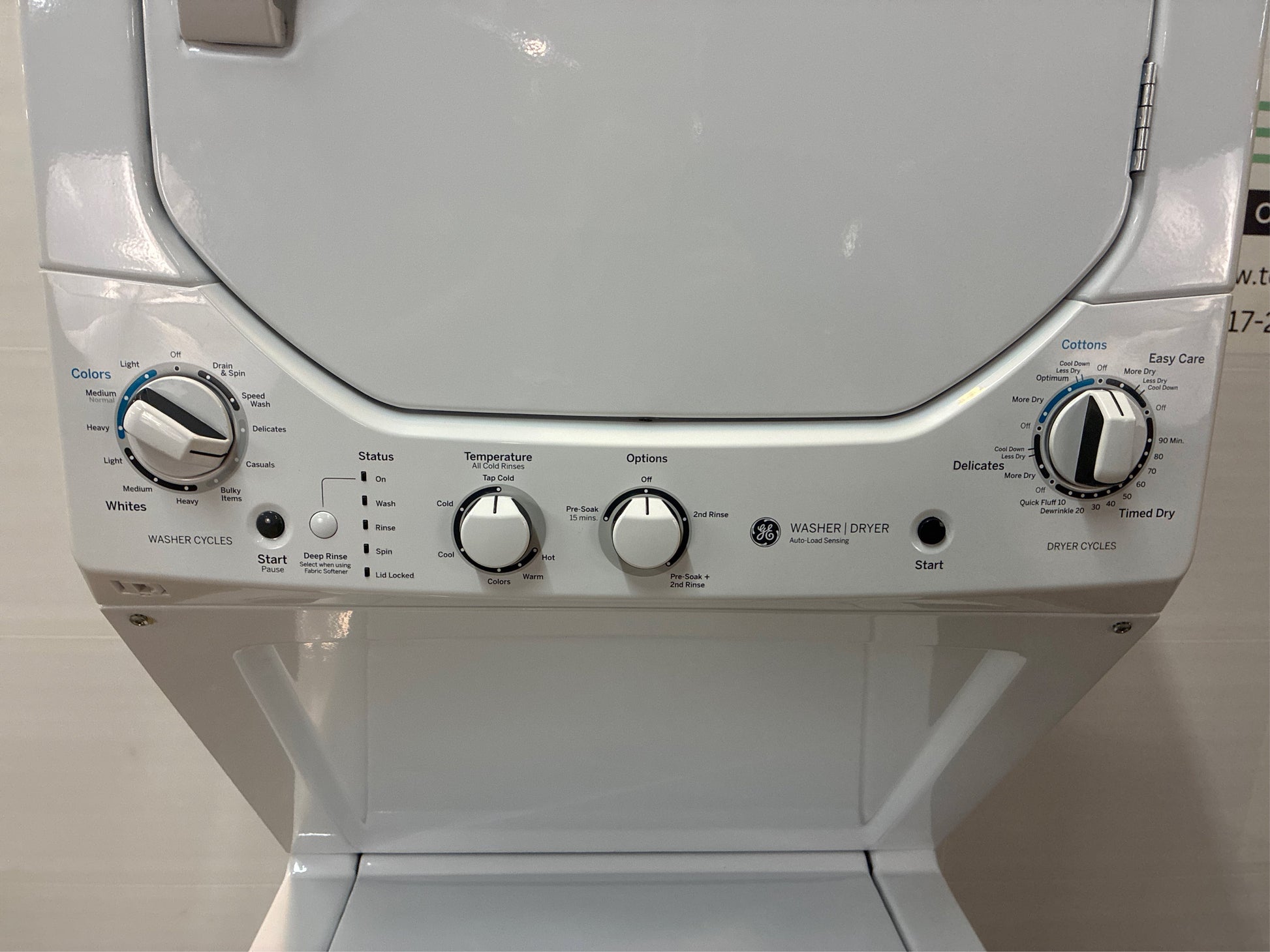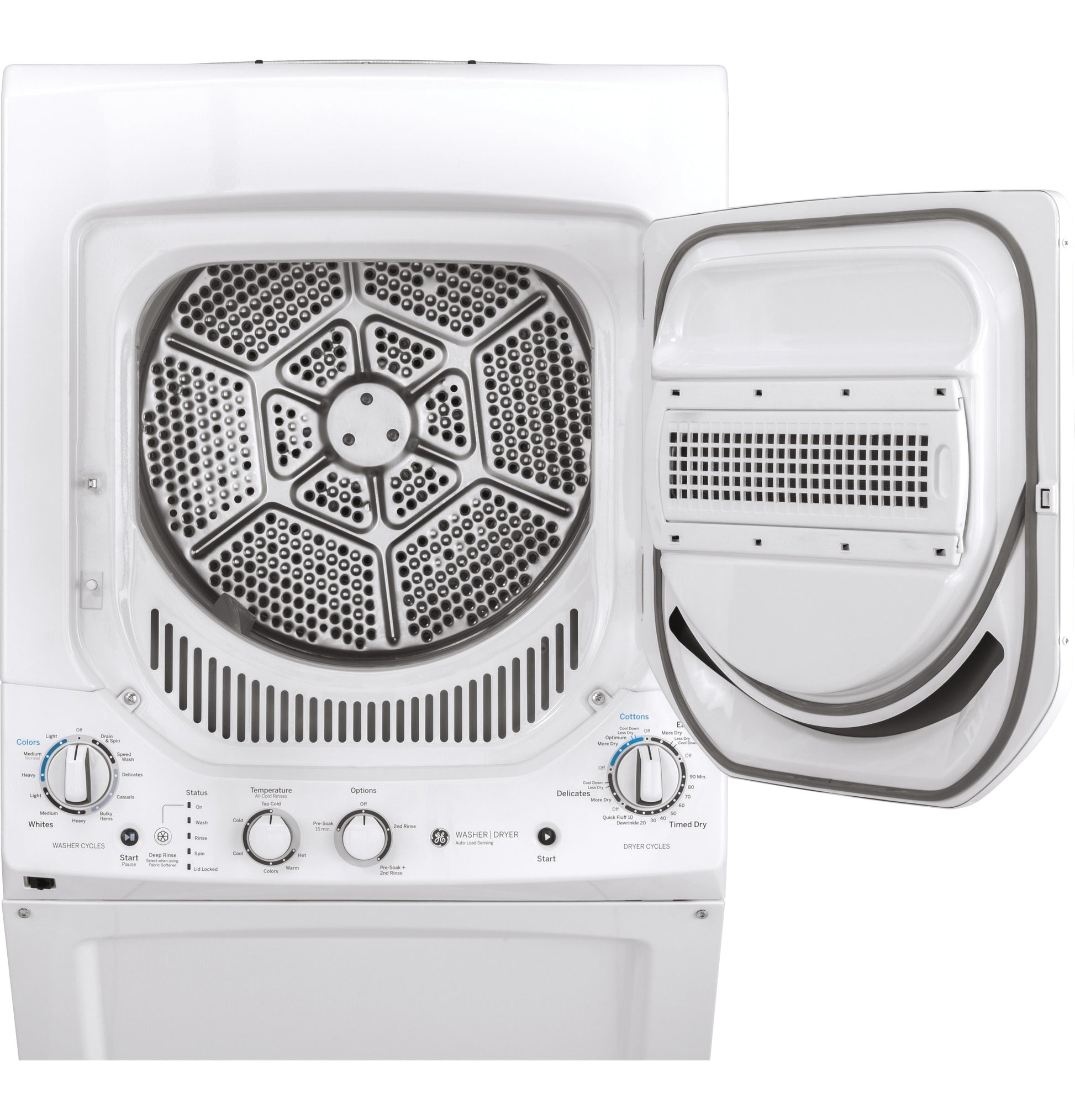 At GE Appliances, we bring good things to life. Our goal is to help people improve their lives at home by providing quality appliances that were made for real life. Whether it's enjoying the tradition of making meals from scratch or tackling a mountain of muddy jeans and soccer jerseys, GE Appliances are crafted to support any and every task in the home. Rotary-electromechanical dryer controls - allow fast, easy cycle selection 11 wash cycles - multiple cycles are designed to specifically handle various fabrics and soils 6 wash/rinse temperatures - select the right temperature for ideal wash results 1 wash/spin speed combination - speeds are matched to fabric type for great clothes care Auto-load sensing - washer will automatically measure the load size and add just the right amount of water Rotary-electronic controls (washer) - simplify cycle selection Bleach and fabric softener dispensers - solutions are automatically mixed with wash water for bright, soft-to-the-touch results Cycle status lights - easily see where your load is in the cleaning process Washer hoses included; 120V power cord sold separately Appliance Color/Finish: White Manufacturer Color/Finish: White Depth with Door Closed (Inches): 27.375 Depth with Door Open (Inches): 43 Dryer Capacity (Cu. Feet): 4.4 Height (Inches): 74.875 Washer Capacity (Cu. Feet): 2.3 Weight (lbs.): 221 Width (Inches): 23.75 ADA Compliant: No Air Dry/Air Fluff Cycle: Yes Allergen/Sanitary Cycle: No Anti-Vibration: No Automatic Detergent Dispenser: No Automatic Temperature Control: Yes Bulky/Large Items Cycle: Yes Child Safety Locks: No Control Type: Rotary-mechanical Custom Program Cycle: No Customizable: No Delay Start: No Delicate Cycle: Yes Dispensers: Bleach; fabric softener Dryer Drum Material: Other Dryer Load Type: Top load Dryer Power Cord Included: No End-of-Cycle Signal for Dryer: No Energy Efficient Cycle: No Extra Power: No Fill and Drain Hoses Included: Fill hoses included Gas or Electric: Gas Handwashable Cycle: No Heat Pump: No Heavy Duty Cycle: Yes Interior Lighting: No Lowe's Exclusive: No LP Convertible: Yes Number of Drying Cycles: 4 Number of Rinse Cycles: 2 Number of Rinse Temperatures: 6 Number of Temperature Selections: 4 Number of Wash Cycles: 11 Odor Blocking: No Permanent Press Cycle: No Power Source: Gas Programmable Wash Cycles: No Quick/Express Cycle: Yes Sensor Dry Cycle: Yes Silk Cycle: No Soak Cycle: Yes Soft Close Lid: No Steam Cycle: No Timed Dry Cycle: Yes Touch-Up Cycle: Yes Towels Cycle: No Volts: 120 Washer Load Type: Top load Washer Power Cord Included: Yes Washer Tub Material: Stainless Water Levels: Adaptive Fill Whites Cycle: Yes Wool Cycle: No CA Residents: Prop 65 Warning(s): Yes ENERGY STAR Certified: No Safety Listing: UL safety listing UNSPSC: 52141600
