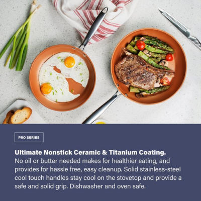 Gotham Steel Pro cookware is engineered to provide the perfect combination of durability, effectiveness, and style. The solid aluminum, hard anodized, nonstick, and beautiful design ensures you get perfectly and deliciously cooked foods day in and day out, hassle free, while adding style to any kitchen. Complete Cookware Set: This kitchen cookware set contains everything you need to start cooking like a pro in your home right out of the box. The set includes an 8 skillet, 10 fry pan, 12. 5 fry pan, 1. 5-quart sauce pan with lid, 2. 5-quart sauce pan with lid, 3-quart chef s pan with lid, 3-quart saut pan with lid, 6-quart stock pot with lid Hard Anodized: Built to last, Gotham Steel Pro cookware set is constructed from hard anodized aluminum, stronger than any stainless steel or regular aluminum, providing quick and even heat conduction through cookware, while resisting wear and tear, and ensuring years of outstanding usage from each piece of cookware. Long Lasting Nonstick: Think healthier foods, easy food release, and effortless cleanups for years to come with Gotham Steel Pro - Each piece of cookware is generously cooked 3x with Gotham Steel s award winning nonstick coating, ensuring foods and sticky sauces won t stick to your cookware while using for years to come. Easy Cleanup: Cleanup is quick and effortless with Gotham Steel Pro - The unique, nonstick, triple coated design is constructed for an effortless wipe down after using. Each piece of cookware is dishwasher safe allowing you to simply throw your cookware in the dishwasher for a 1,2,3 cleanup. Stay Cool Handles: Pick pots and pans right off the stove with the ergonomic rubberized handles to flip or mix your foods or for easy transfer. The uniquely riveted handles are designed for both righties and lefties to easily use while allowing heat to dissipate, keeping the handles cool to the touch while on or off the stove. 100% Healthy & Toxin Free: Gotham Steel cookware is free of PFOA, PFOS & other harmful chemicals including lead & cadmium, allowing you to Keep a healthy, toxin free, and ecofriendly cooking environment. Stovetop and Oven Safe: Each piece of cookware is compatible with all types of stovetops- Gas, electric, halogen, induction, or ceramic stovetop allowing you to cook virtually anywhere you d like Quick & Even Cooking: Stamped from a single sheet of solid aluminum, each piece of cookware quickly and evenly conducts heat from end to end, ensuring there are no dead zones or hot spots, providing deliciously and perfectly cooked foods day in and day out.# Pieces In Set: 13Included: 1 6 Qt. Covered Stock Pot(s), 1 8 Inch Fry Pan(s), 1 12 Inch Fry Pan(s), 1 3 Qt. Covered Saucepan(s), 1 1.5 Qt. Covered Saucepan(s), 1 2.5 Qt. Covered Saucepan(s), 1 10 Inch Fry Pan(s)Features: Heat Resistant Handle, Metal Utensil Safe, Hard Anodized, Dishwasher Safe, Scratch Resistant, Even Heating, Pfoa Free, Non-StickCooktop Compatibility: Gas, ElectricRecommended Utensil Material: Silicone, MetalMaximum Temp (f): 500 Degrees FBase Material: 100% AluminumCare: Hand Wash, Dishwasher SafeDecor Styles: ContemporaryMaterial: AluminumCountry of Origin: Imported