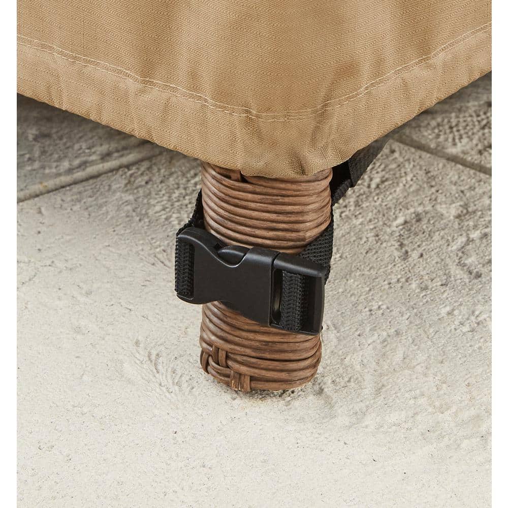 Keep your patio chairs looking new year after year with this Hampton Bay High-Back Outdoor Chair Cover. It's highly durable and sleek-looking with a polyester design with a neutral color pallet, plus it's mildew and water resistant. This cover is for large chairs that measure 35 in. H x 35 in. W x 28 in. D.. Includes a patio chair cover for outdoor use. Made from high-grade polyester for durability. UV-resistant feature prevents fading. Polyester construction offers durability. Cover measures 35 in. H x 35 in. W x 28 in. D. Rectangular cover offers compatibility with large patio chairs. Mildew-resistant and UV-protected for lasting use. No assembly required for setup. Click here to learn more about exclusive Hampton Bay patio products . See our full collection of Patio Furniture Covers to choose the best option for you. . Click here for information about Hampton Bay Customer Service . Color Family: Beige. Color/Pattern: Beige. Cover Type: Chair. Material: Polyester. Patio Furniture Features: Mildew Resistant,UV Protected,Waterproof,Weather Resistant,Weather Resistant. Product Weight (lb.): 2.13 lb. Shape: Rectangular. Style: Style. Assembled Depth (in.): 28.00 in. Assembled Height (in.): 35.00 in. Assembled Width (in.): 35.00 in