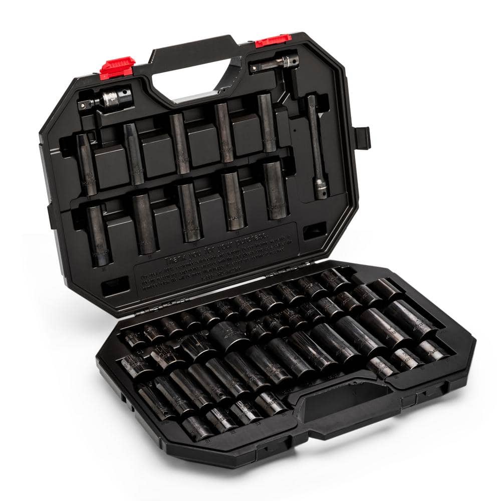 Upgrade your toolbox with the 56-piece 1/2 in. Drive SAE/Metric 6-Point Impact Socket Set, designed for both professional mechanics and serious DIY enthusiasts. This comprehensive set covers all your impact socket needs with superior durability and precision. Tackle any heavy-duty project with confidence, knowing you have the best tools at your disposal.. Black phosphate finish to protect against rust and corrosion. Come in a sturdy, blow-molded case for convenient storage. 46 impact sockets in both SAE and metric sizes. Extensive socket range includes 46 impact sockets in both SAE and metric sizes, ensuring you have the right size for every job. 6-point socket design provides a more secure grip on fasteners, reducing the risk of slippage and rounding. Durable construction: made from high-strength chrome molybdenum steel, these sockets are built to withstand high torque and impact conditions. Furnished in a sturdy, blow-molded case for convenient storage and transport, keeping your sockets organized and easily accessible. Corrosion resistance: each socket features a black phosphate finish to protect against rust and corrosion, extending the life of your tools. Versatile applications: suitable for use with impact wrenches and drivers, making it perfect for automotive, industrial and home maintenance tasks. Carrier Type: Hard Shell Carrier. Hand Tool Type: Impact Socket Set. Individual/Set: Set. Measurement Standard: Metric,SAE. Measurement System: Inches,Metric. Number of Pieces: 56. Socket Depth: Shallow. Socket Type: Impact Socket. Tools Included: Sockets. Tools Product Type: Hand Tool. Universal: Non-Universal. Drive Size: 1/2 in