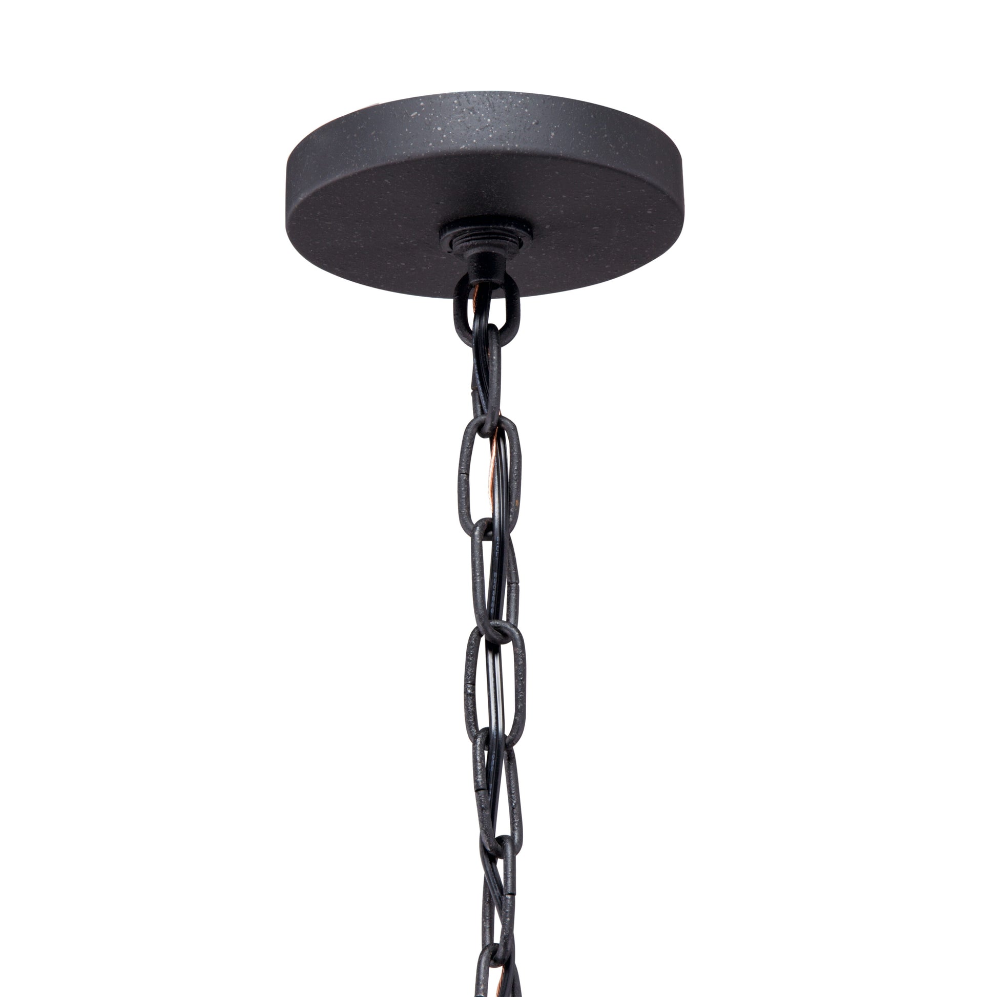 The Barrington collection offers a wide variety of lighting fixtures with an attractive wood tone finish and metal combination. Many are available in two color palettes: distressed black with wood tone and anvil iron with driftwood. All of the Barrington collection fixtures add form and function as well as beauty to your room. Distressed black and wood tone finish chandelier from the Barrington collection offers a touch of rustic elegance. Clear seeded glass shades complement the simple, yet striking black and wood combination. Fixture dimensions 18-in W x 18-in D x 16.63-in H. Requires three 60-watt medium base bulbs (not included). Chain and down rods adjust up to 36-in. Great for pairing with a craftsman-style table or worn leather chair. ETL listing demonstrates this product has met minimum requirements of widely accepted product safety standards. Light is dimmable, so you can create your desired ambiance. Collection Name: Barrington. Fixture Color Family: Black. Fixture Finish: Distressed. Manufacturer Color/Finish: Distressed Black and Wood Tone. Shade Color: Clear Seeded. Type: Chandelier. Adjustable Height: Yes. Chain/Downrod Length (Inches): 36. Depth (Inches): 18. Height (Inches): 16.63. Maximum Hanging Height (Inches): 53.38. Minimum Hanging Height (Inches): 17.38. Size: Medium. Weight (lbs.): 9.24. Width (Inches): 18. Wire Length (Inches): 72. Bulb Type: Incandescent. Bulb(s) Included: No. Dimmable: Yes. Fixture Material: Mixed material. For Use in Bathrooms: No. For Use in Bedrooms: Yes. For Use in Dining Rooms: Yes. For Use in Foyers: Yes. For Use in Kitchens: Yes. For Use in Living Rooms: Yes. Frosted Glass: No. Glass Type: Clear glass. Hanging Light: Yes. Light Bulb Base Type: Medium base (E-26). Lowe's Exclusive: Yes. Maximum Bulb Wattage: 60.0. Maximum Bulb Wattage (or Equivalent): 60.0. Maximum Fixture Wattage: 180. Mounting Hardware Included: Yes. Number of Bulbs Included: 0. Number of Lights: 3. Number of Tiers: 1. Power Source: Hardwired. Recommended Light Bulb Shape: A19. Shade Material: Glass. Shape: Candle. Style: Rustic. Swag Kit Included: No. Type of Hanging Device: Chain. Usage Rating: Dry. Use Location: Indoor. Slope Ceiling Compatibility: Yes. CA Residents: Prop 65 Warning(s): Yes. ENERGY STAR Certified: No. Safety Listing: ETL safety listing. UNSPSC: 39111500.