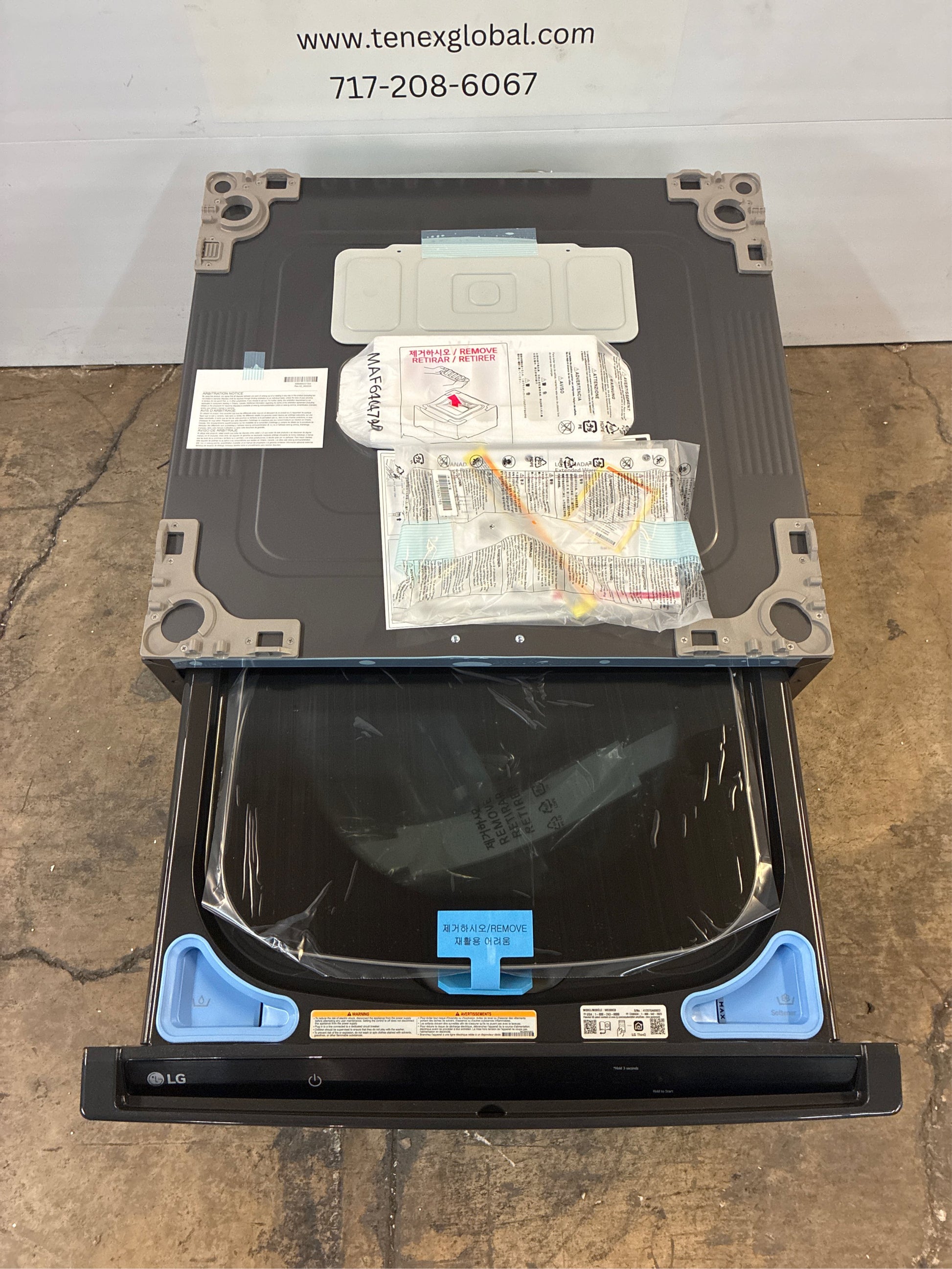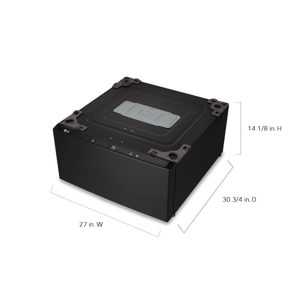 Meet your newest laundry ally LG's ingenious SideKick washer. Disguised as an everyday pedestal, this 27 in. W mini LG washer pairs with almost any LG front load unit so you can wash two loads at the same time. The main tub is the workhorse, taking on your biggest, bulkiest family-size loads like towels and bedding, while the SideKick gives delicates, hand washables and workout wear the special care they deserve. With this LG pedestal washer on your side, you can divide and conquer your laundry and the rest of your day like never before. Compatible with select 27 Front Load Washers. Perfect for Intimates and Hand Wash. Electronic Control Panel with Dual LED Display. Specially designed for your small, custom-care laundry loads so you can clean 3-days of delicate now rather than waiting for a full load in your regular washer. Special cycles for Intimates, hand wash and active wear, each setting is designed to deliver a thorough clean and proper fabric care for items you prefer to wash separately. Dual LED display indicators and intuitive dial-a-cycle controls help you find the right setting every time. Neverust wash tub is made of durable stainless steel, avoiding nicks that can snag fabrics. Just right for cleaning smaller loads as often as you need. Optional multi-function remote offers a convenient way to start, stop or select a cycle. Custom cycles provide the perfect balance of cleaning and fabric care. Requires the use of only high-efficiency (HE) detergent, do not use pods or pre-measured detergent. 1 cu. ft. capacity perfect for items you prefer to wash separately, such as hand wash only or active wear. Tubclean cycle keeps your sidekick fresh, clean and in tip-top condition. Sidekick pedestal washer is compatible with both LG front load washers or front load dryers of the same size. 6-cycles available including normal, intimates, hand wash, active wear, rinse and spin, tub clean. Fits the equivalent of 3 - 4 lbs. or hand-held basket of laundry. Inverter direct drive motor. All compatible LG washers, dryer, sidekick pedestal washers and laundry pedestals sold separately. Amperage (A): 5 A. Appliance Category: Washer. Appliance Series: Not Applicable. Appliance Type: Front Load Washer. Color/Finish: Black Steel. Color/Finish Family: Black. Control Type: Electronic. Door Material: Plastic. Door Shape: Round Door. Door Style: Hamper. Energy Consumption (kWh/year): 60. Energy Efficiency Tier Rating: Not CEE rated. Hardware Color/Finish: None. Hardware Color/Finish Family: None. Included: Power Cord. Maximum Spin Speed (RPM): 700. Number of Rinse Cycles: 2. Number of Rinse Temperatures: 3. Number of Wash Cycles: 6. Number of Wash Speeds: 6. Number of Wash Temperatures: 2. Pedestal Model#: WM5005HKA. Product Weight (lb.): 100 lb. Stackable: Not Stackable. Stacking Kit Model#: not applicable. Steam Function: No Steam. Voltage (volts): 120. Wash Cycles: Active Wear, Cotton, Delicates, Extra Rinse, Handwashable, Normal, Rinse & Spin, Tub Clean. Washer Dispensers: Not Available. Washer Features: Add Garment (pause), Anti Vibration, Control Lock, Cycle Status Indicator, Front Control, High-Efficiency Detergent Required. Washer Tub/Drum Material: Stainless Steel Drum. Certifications and Listings: UL Listed. Capacity - Washer (cu. ft.): 1. Depth With Door Open 90 Degrees (in.): 50.5 in. Door Opening Height (In.): 15. Door Opening Width (In.): 15. Product Depth (in.): 30.75 in. Product Height (in.): 14.13 in. Product Width (in.): 27 in.