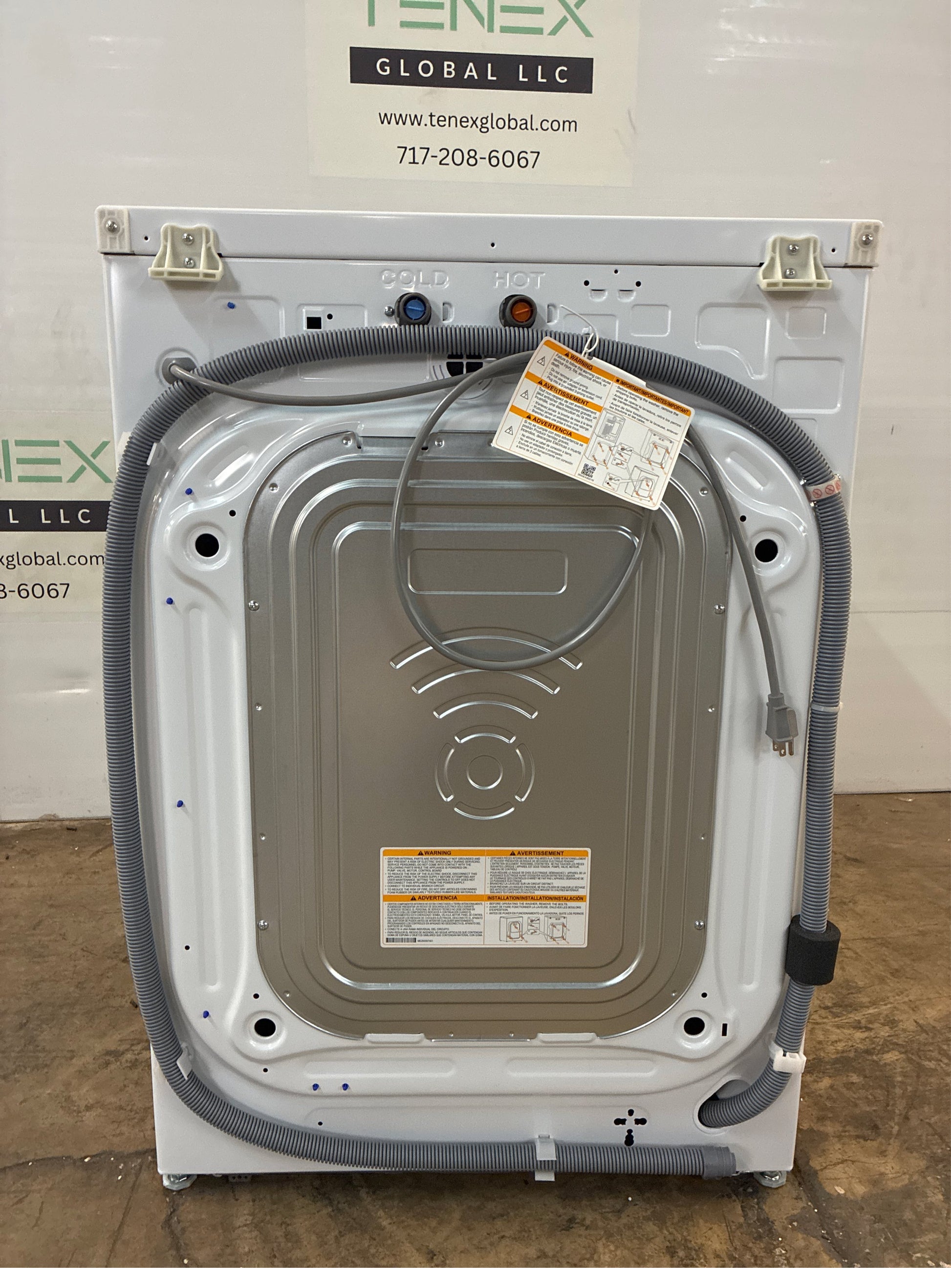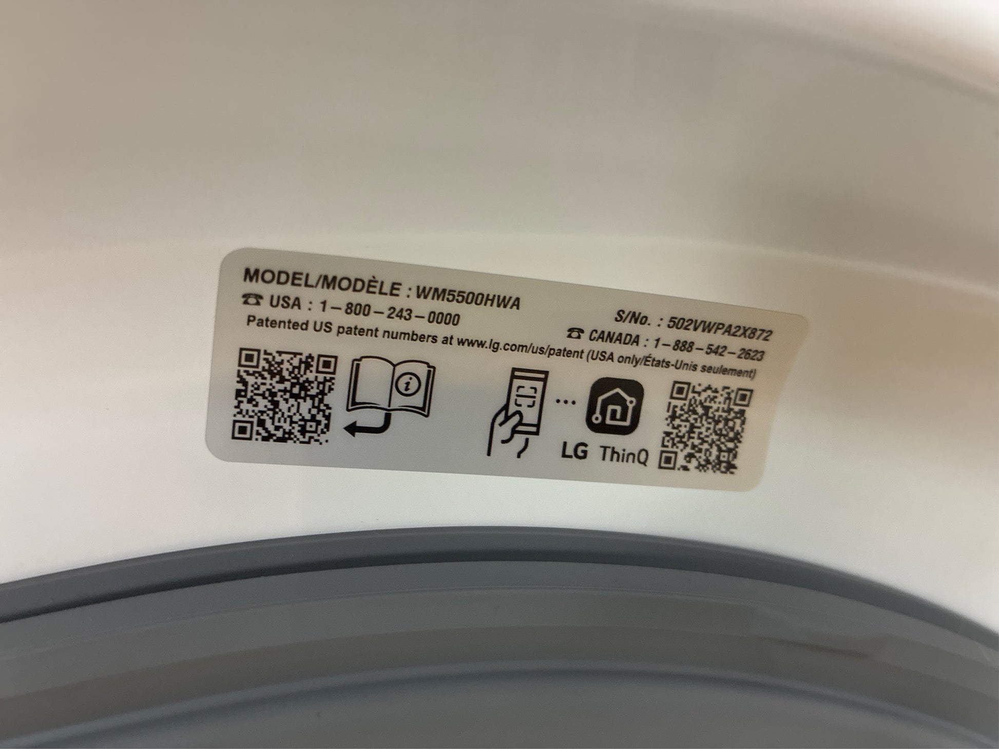 Our intuitive dial control with LCD display and built-in intelligence that gets smarter with every use makes it easy to give your favorite clothes the care they deserve. AI technology and advanced sensors detect fabric texture, load size, and soil level to automatically select the perfect settings. All wrapped in a sleek, minimalist design-plus turbo-charged cleaning that puts time back into your day.. Amperage (A): 10 A. Appliance Category: Washer. Appliance Series: Not Applicable. Appliance Type: Front Load Washer. Color/Finish: White. Color/Finish Family: White. Control Type: Electronic. Door Material: Tempered Glass. Door Shape: Round Door. Door Style: Left Swing. Energy Consumption (kWh/year): 105. Energy Efficiency Tier Rating: Tier II. Hardware Color/Finish: White. Hardware Color/Finish Family: White. Included: Hardware. Maximum Spin Speed (RPM): 1300. Number of Rinse Cycles: 12. Number of Rinse Temperatures: 5. Number of Wash Cycles: 25. Number of Wash Speeds: 5. Number of Wash Temperatures: 5. Pedestal Model#: WD300CW. Power Options: Hardwired. Product Weight (lb.): 200.8 lb. Remote Access: Remote Access. Requires Hub?: No Hub Required. Returnable: Non-Returnable. Smart Home: Smart Home Enabled. Smart Home Protocol: Wi-Fi. Stackable: Stackable. Stacking Kit Model#: KSTK4. Steam Function: Steam. Voice Control Hub Required: No Hub Required for Voice Control. Voltage (volts): 120. Wash Cycles: Allergen,Bedding,Cold,Delicates,Extra Rinse,Heavy Duty,Normal,Permanent Press,Prewash,Rinse & Spin,Sanitize,Speed Wash,Towels and Sheets,Tub Clean,Whites. Washer Dispensers: Bleach,Fabric Softener,Liquid Detergent,Prewash Detergent. Washer Features: Add Garment (pause),Anti Vibration,Control Lock,Delay Start,Wi-Fi Enabled. Washer Tub/Drum Material: Stainless Steel Drum. Works With: Alexa, Alexa, Google, Google Assistant, SmartThinQ. Certifications and Listings: AAFA (Asthma and Allergy Foundation of America),Energy Star,UL Listed. Capacity - Washer (cu. ft.): 4.5. Depth With Door Open 90 Degrees (in.): 55 in. Door Opening Height (In.): 16.93. Door Opening Width (In.): 16.93. Product Depth (in.): 30.25 in. Product Height (in.): 39 in. Product Width (in.): 27 in. Capacity (cu. ft.): 4.5. Width (in.): 27 in. Stackable: Stackable. Series: Not Applicable. Appliance Type: Front Load Washer. Steam Function: Steam. Wash Cycles: Allergen,Bedding,Cold,Delicates,Extra Rinse,Heavy Duty,Normal,Permanent Press,Prewash,Rinse & Spin,Sanitize,Speed Wash,Towels and Sheets,Tub Clean,Whites. Smart Home: Smart Home Enabled