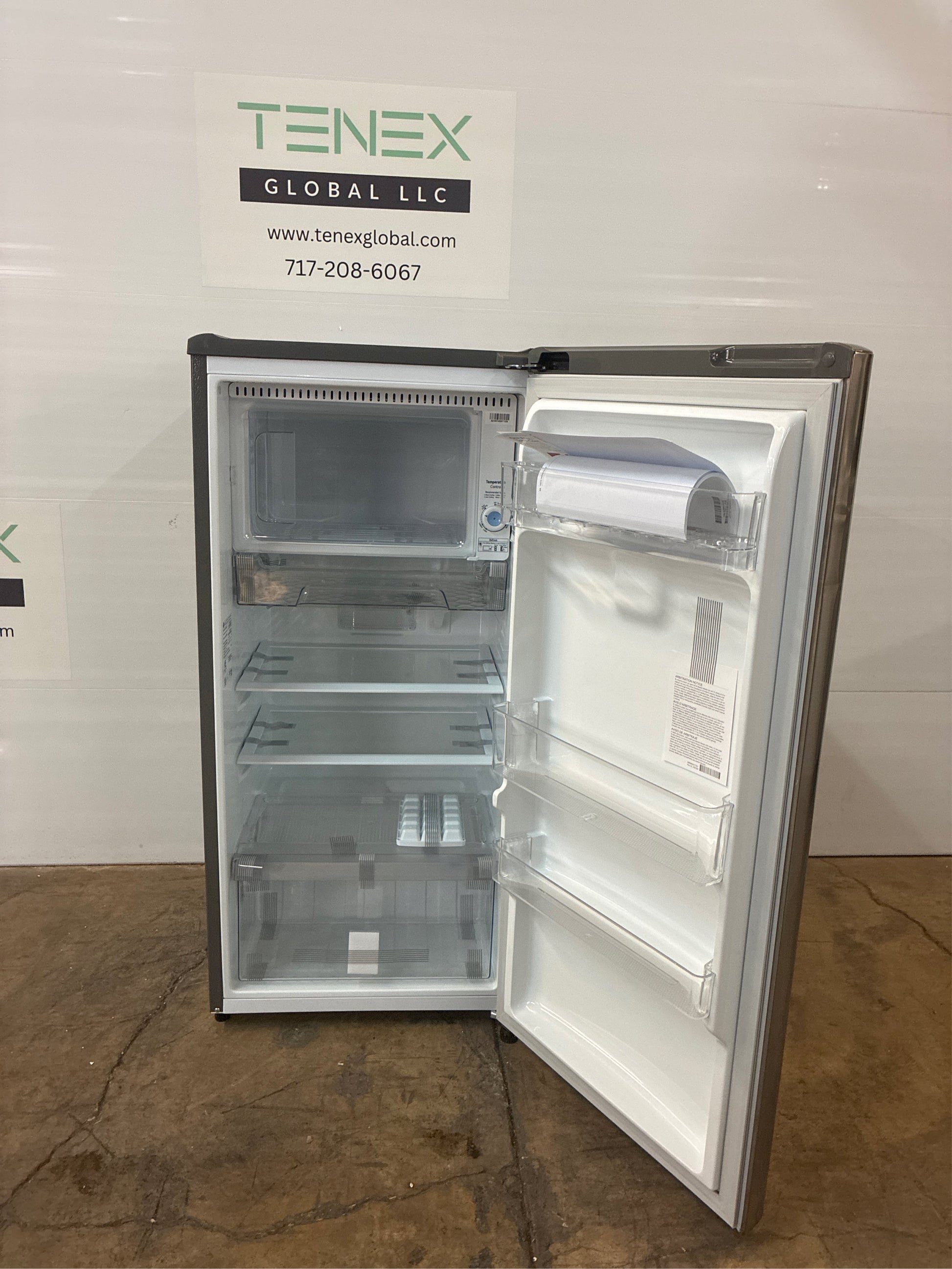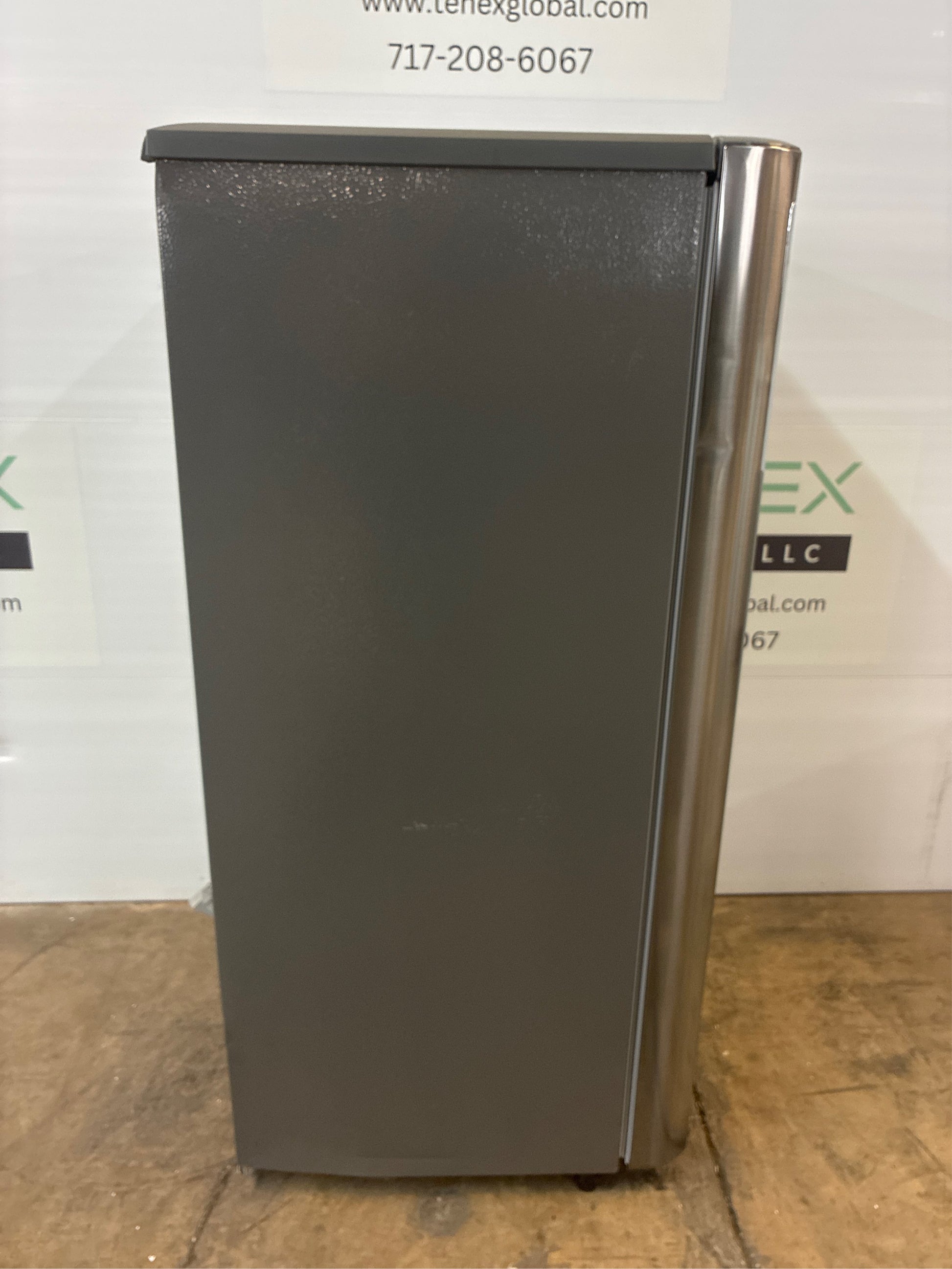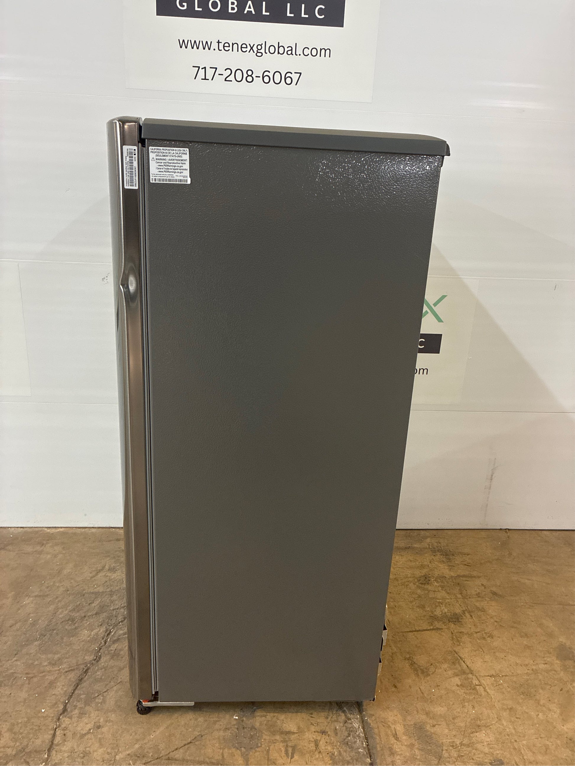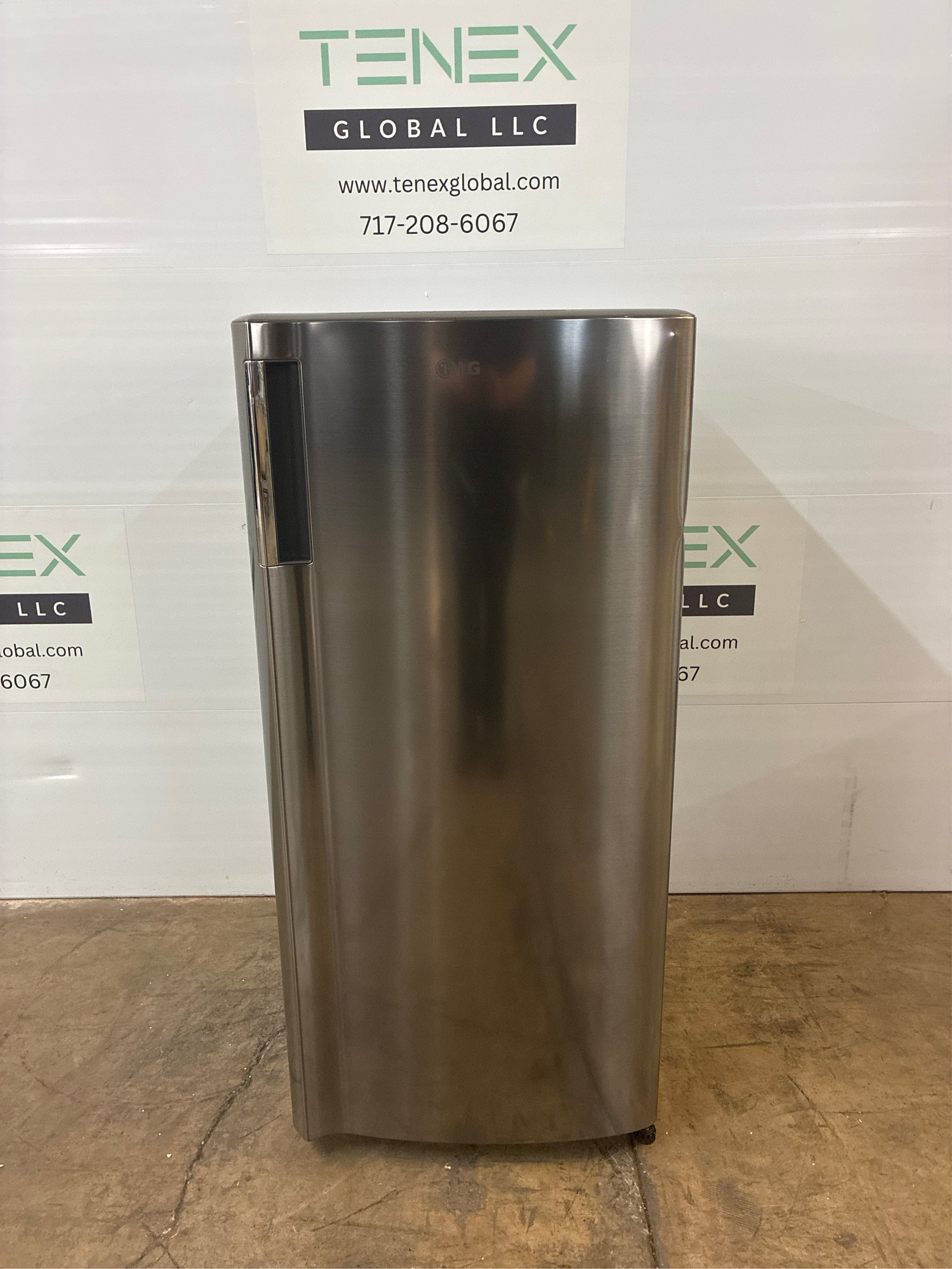 Expand your freshness possibilities with a refrigerator you won't want to hide. 5.8c u. ft. of easy-reach space is great for busy families or entertaining a crowd. Stock up on meats and family favorites, and even expand your product storage with a spacious bin. Modern platinum finish elevates any room with a curved pocket handle that is both unobtrusive and easy to touch. Discover the storage of a 5.8 cu ft capacity, stock up at the store and have your favorite meats and extra veggies on hand. Vertical design gives direct sight to what you have and need - organize your food with 6 shelves, all within an easy glance. Extra-large produce bin helps keep more vegetables fresher, longer, so you can make fewer trips to the store. Defrosting is easy and convenient with the touch of one button - Semi Auto Defrost, the automatic process is done in 1 hour, for a quick return to maximum cooling. This modern Platinum Silver finish doesn't compromise on style, plus the curved pocket handle is both sleek and comfortable to the grip. LED panels located on the rear of the refrigerator provide an exceptionally bright interior and save energy over traditional lighting. Save money and energy with this ENERGY STAR qualified LG refrigerator that exceeds energy standards. Appliance Color/Finish: Stainless steel. Cabinet Color: Gray. Manufacturer Color/Finish: Platinum Silver. Type: Mini fridge. Actual Width (Inches): 20.63. Adjustable Height: No. Can Dispenser Capacity: 0. Common Width (Inches): 21. Depth (Including Handles) (Inches): 21.88. Depth Type: Standard-Depth. Freezer Capacity (Cu. Feet): 0.92. Maximum Assembled Height (Inches): 44.63. Minimum Assembled Height (Inches): 44.63. Overall Capacity (Cu. Feet): 5.79. Refrigerator Capacity (Cu. Feet): 4.87. Weight (lbs.): 68.3. ADA Compliant: No. Adjustable Legs: No. Adjustable Shelves: Yes. Amperage: 15. Amps: 15. Appliance Type: Mini fridge. Built-In: No. Can Dispenser: No. Crisper Drawer: Yes. Customizable: No. Door Material: Aluminum. Door Shelves: 2. Door Style: Single door. Door Swing: Left-hand. Door Texture: Smooth. Dry Erase: No. Electronic Temperature Control: Yes. Fingerprint-Resistant: No. Flat-Back Design: No. For Use with Medical Supplies: No. Freezer Compartment: Yes. Freezer Shelves: 1. Freezer Type: Drawer freezer. Frost-Free: Yes. Gallon Door Storage: No. Garage Ready: No. Handle Type: Integrated. Hidden Hinge: Yes. Installation Type: Freestanding. Interior Lighting: Yes. LED Light: Yes. Lowe's Exclusive: No. Material: Aluminum/Plastic. Maximum Height (Inches): 44.63. Minimum Height (Inches): 44.63. Number of Compartments: 2. Number of Drawers: 1. Number of Shelves: 2. Pattern: Solid. Patterned: No. Performance: Compressor. Portable: No. Power Source: Plug-in. Quiet Mode: No. Reversible Door: No. Sabbath Mode: No. Security Lock: No. See-Thru Door: No. Shelf Options: Adjustable spillproof glass shelves. Style: Classic. Temperature Control: Yes. Use Location: Indoor. Voltage: 120. Width (Inches): 20.63. App Compatibility: No. Bluetooth Compatibility: No. Compatible Bulb Type: LED. Smart Compatible: No. Works with Android: No. Works with iOS: No. Works with SmartThings: No. Approved for Outdoor Use: No. CA Residents: Prop 65 Warning(s): No. ENERGY STAR Certified: Yes. Safety Listing: CSA safety listing. UNSPSC: 52141500.