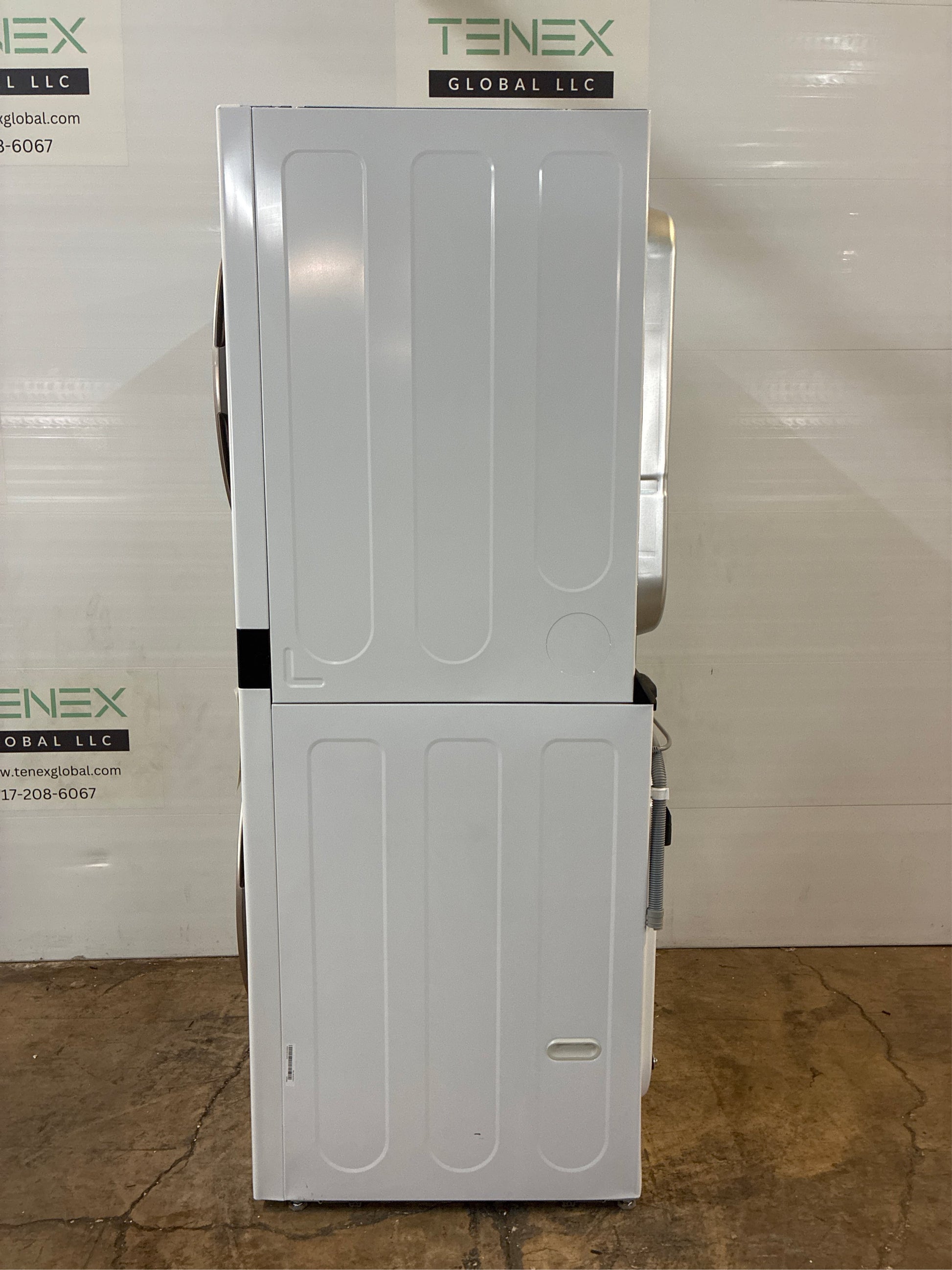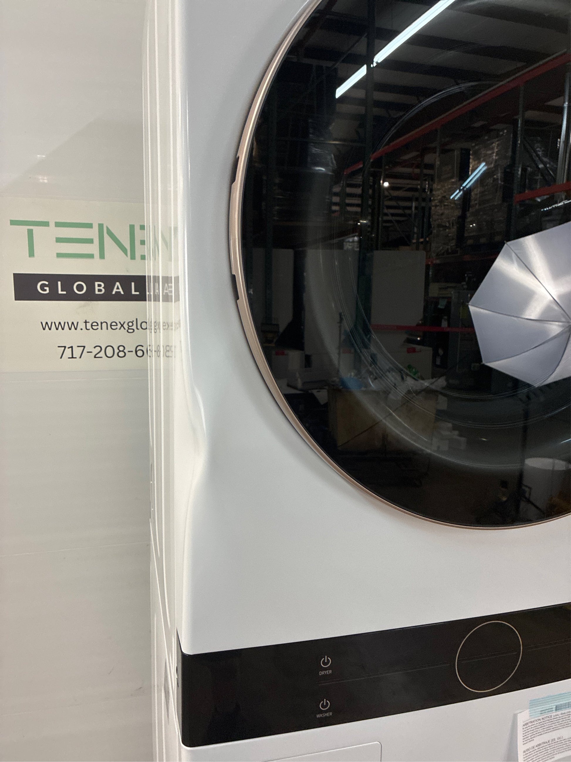 Full-size and fully featured, with the washer on the bottom and dryer on top, the sleek single unit LG WashTower takes up half the space, giving you room to add a sink, a folding table or whatever you like. But unlike conventional stacked pairs, LG's exclusive Center Control panel is perfectly positioned with both washer and dryer controls at just the right height. Built-in intelligence makes laundry less of a chore by taking out the guesswork, while top-of-the-line innovations put advanced cleaning power within reach. Single Unit WashTower Design. AI Fabric Sensors/Smart Learner/Smart Pairing . Install anywhere with both a 120v and 240v outlet. Say never again to never-ending piles of laundry - ultra-large capacity fits more clothes in every load and helps you power through laundry day in less time, with 4.5 cu. ft. in the washer and 7.4 cu. ft. in the dryer, you can fit from big loads of towels or jeans to a king-size comforter and more in a single load, for big time savings every week. Redefine your space and reinvent how you do laundry with room to add a sink, a folding table or just organized storage-all with a sleek, streamlined look, only LG STUDIO WashTower has the convenient Center Control panel that's perfectly positioned with both washer and dryer controls at just the right height, typical stacked washers and dryers place dryer controls at the very top, making them hard to see and reach without using a step stool every time. Forget about endless sorting or toggling through cycles-built-in sensors use AI technology to detect fabric texture and load size, then automatically select the right wash/dry motions, temperatures and more for advanced fabric care activate Smart Learner in the ThinQ app, and WashTower will remember your preferred settings, from wash temp to spin speed to dry level-so you don't have to with Smart Pairing, the washer can even tell the dryer to select a compatible drying cycle, making it the ultimate laundry hack. Reduce common household allergens in fabrics by more than 95%, certified asthma and allergy friendly by the Asthma and Allergy Foundation of America (AAFA)- LG washers are the first to earn this distinction, breathe easier with the Allergenic cycle that uses the gentle power of steam to remove pet dander and dust from bedding, baby clothes and more, a proven tool for creating a healthier home perfect for the more than 65 million Americans living with asthma and allergies. Let's face it: Sometimes, you just don't have time to wait for a standard wash cycle, when you're in a rush, LG's SpeedWash Cycle gets small lightly soiled loads refreshed in just 15-minutes. No more damp clothes the built-in sensor detects moisture levels and automatically adjusts drying time for loads of all sizes, no more over drying dryer shuts off at just the right time to save energy with less wear and tear on clothes. LG front load washers and dryers are the first to use tempered glass doors for a sleek, stylish look that resists shock and scratches, Chrome rims and matching control knobs complement the doors and enhance the premium feel. High efficiency washer uses far less water and energy than a conventional washer for savings that add up with each load, Get additional savings with load-sensing technology that adjusts water levels and wash times or by adding the ColdWash option to almost any cycle, for drying, efficient sensor drying and low-heat settings save energy and money without sacrificing performance. FlowSense Duct Clogging and Lint Filter Indicators let you know when your ducts and filter need cleaning to avoid lint buildup, improve the dryer's performance for greater efficiency and lower utility bills, and help give you safer, worry-free operation with fewer service calls. Unlike tubs made from porcelain or plastic, the full stainless steel tub avoids the chips and nicks that can snag fabrics and ruin expensive clothing, durable surface actually gets smoother over time and keeps your washer looking like new, even after years of use. With the LG TubClean system, you don't have to worry about mold, mildew or musty odors, simply select the TubClean cycle, add liquid bleach or other cleaner and let the washer do the work to thoroughly clean and dry the tub, door and gaskets, run it every month or so to keep your washer and your laundry clean and fresh. Noisy, out-of-balance loads can disrupt your laundry routine-and your day, LG helps you wash in peace with the TrueBalance anti-vibration system that keeps even big loads in balance to reduce washer noise and vibration. A must-have for main-floor or second-floor laundry rooms. Run the washer or dryer whenever you want, without interrupting naptime or your favorite show, the LG STUDIO WashTower is designed for quiet operation, from the motor to the cabinet to individual components. When you hate wrinkles but can't be there to remove clothes as soon as they're dry, just select the Wrinkle Care option before hitting start, the dryer will periodically tumble the load for up to 3-hours after the cycle is done or until the door is opened to help keep wrinkles at bay. Doors are not reversible - left swing only. Energy star. Agitator/Impeller Type: Impeller. Amperage (A): 30 A. Appliance Series: Not Applicable. Appliance Type: Washer & Dryer Combo. Capacity - Dryer (cu. ft.): 7.4. Color/Finish: White. Color/Finish Family: White. Control Type: Touch. Door Material: Glass. Dry Cycles: Bedding,Cotton,Delicates,Heavy Duty,Sensor Dry,Wrinkle Free. Dryer Door Style: Left Swing. Dryer Drum Material: Aluminized Alloy Steel Drum. Dryer Features: Adjustable Legs,Control Lock,Lint Filter,Remote Diagnostics,Sensor Dry. Dryer Fuel Type: Electric. Energy Consumption (kWh/year): 105. Energy Efficiency Tier Rating: Tier II. Exhaust Vent Location: Back,Left Side,Right Side. Hardware Color/Finish: None. Hardware Color/Finish Family: None. Included: No Additional Items Included. Lint Filter Location: Front. Maximum Spin Speed (RPM): 1300. Num