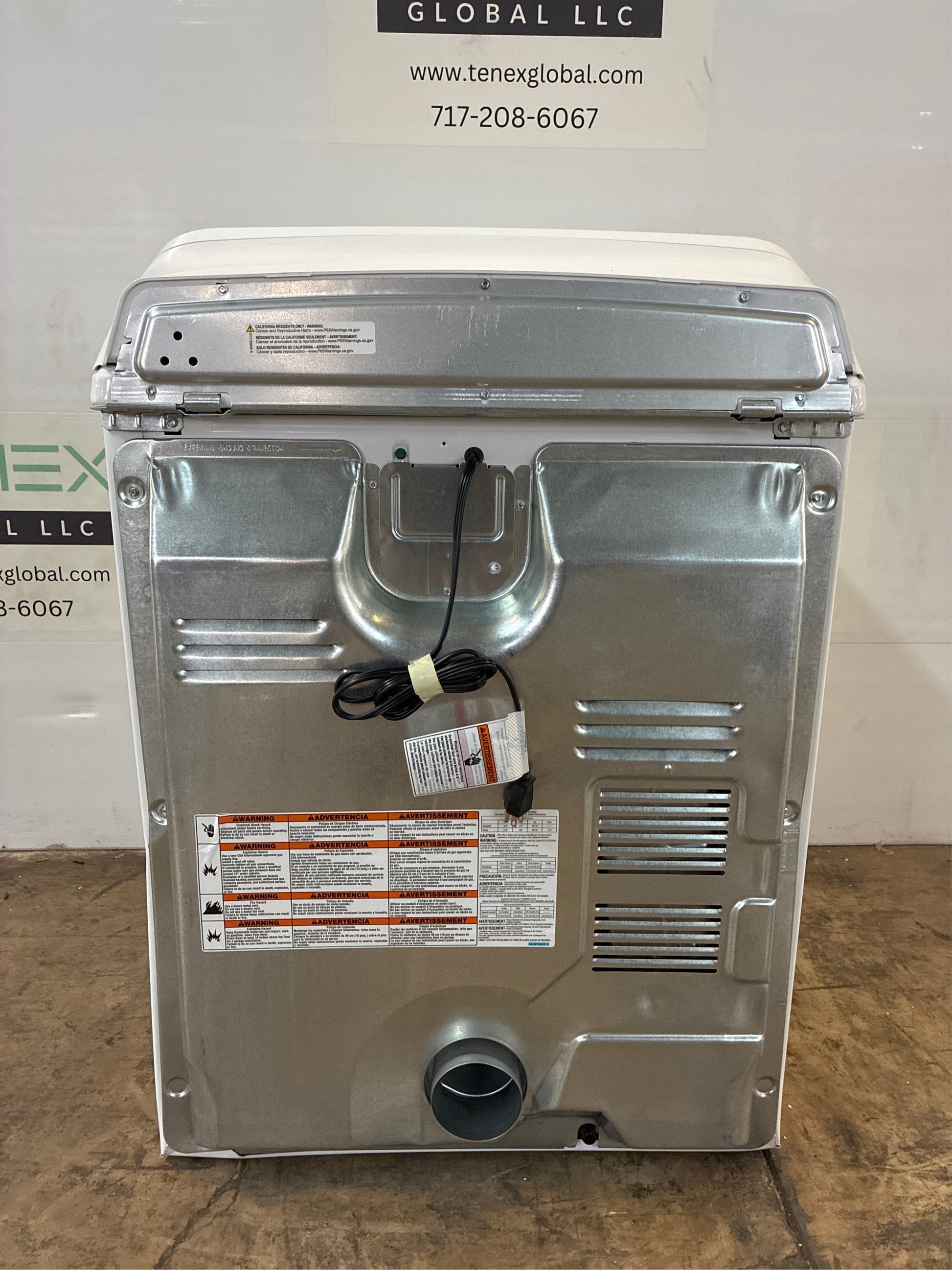 Evenly dry large loads with this 7.0 cu. ft. capacity dryer. Equipped with Moisture Sensing, two sensors monitor inside moisture and air temperatures to help prevent overdrying and underdrying. The Wrinkle Prevent option runs for up to 150 minutes after the cycle has ended to help keep wrinkles from forming and the drum light gives a clear view of laundry for quick unloading. Amperage (A): 30 A. Appliance Category: Dryer. Appliance Series: Not Applicable. Appliance Type: Electric Dryer. Capacity - Dryer (cu. ft.): 7. Color/Finish: White. Color/Finish Family: White. Control Type: Electro-Mechanical. Door Material: Stainless Steel. Door Shape: Square Door. Door Style: Right Swing. Dry Cycles: Air Fluff, Bulky Items, Delicates, Extra Dry, Heavy Duty, Quick Dry, Timed Dry, Touch Up, Towels and Sheets, Wrinkle Free. Dryer Drum Material: Powder-Coated Steel Drum. Dryer Features: Damp Alert, Interior Light, Lint Filter, Moisture Sensor, Rear Control, Timed Dry. Dryer Fuel Type: Electric. Exhaust Vent Location: Rear. Hardware Color/Finish: Black. Hardware Color/Finish Family: White. Included: No Additional Items Included. Lint Filter Location: Top. Matching Washer Type: Top Load Matching. Number of Drying Cycles: 11. Number of Drying Temperatures: 4. Pedestal Model#: NA. Product Weight (lb.): 113 lb. Stackable: Not Stackable. Stacking Kit Model#: NA. Steam Function: No Steam. Vent Type: Vented. Voltage (volts): 240. Certifications and Listings: UL Listed. Depth With Door Open 90 Degrees (in.): 50.69 in. Door Opening Height (In.): 0. Door Opening Width (In.): 0. Product Depth (in.): 28.38 in. Product Height (in.): 40.69 in. Product Width (in.): 29 in. Capacity (cu. ft.): 7. Voltage (volts): 240. Features: Lint Filter. Vent Type: Vented. Features: Interior Light. Features: Timed Dry. Features: Moisture Sensor. Stackable: Not Stackable.