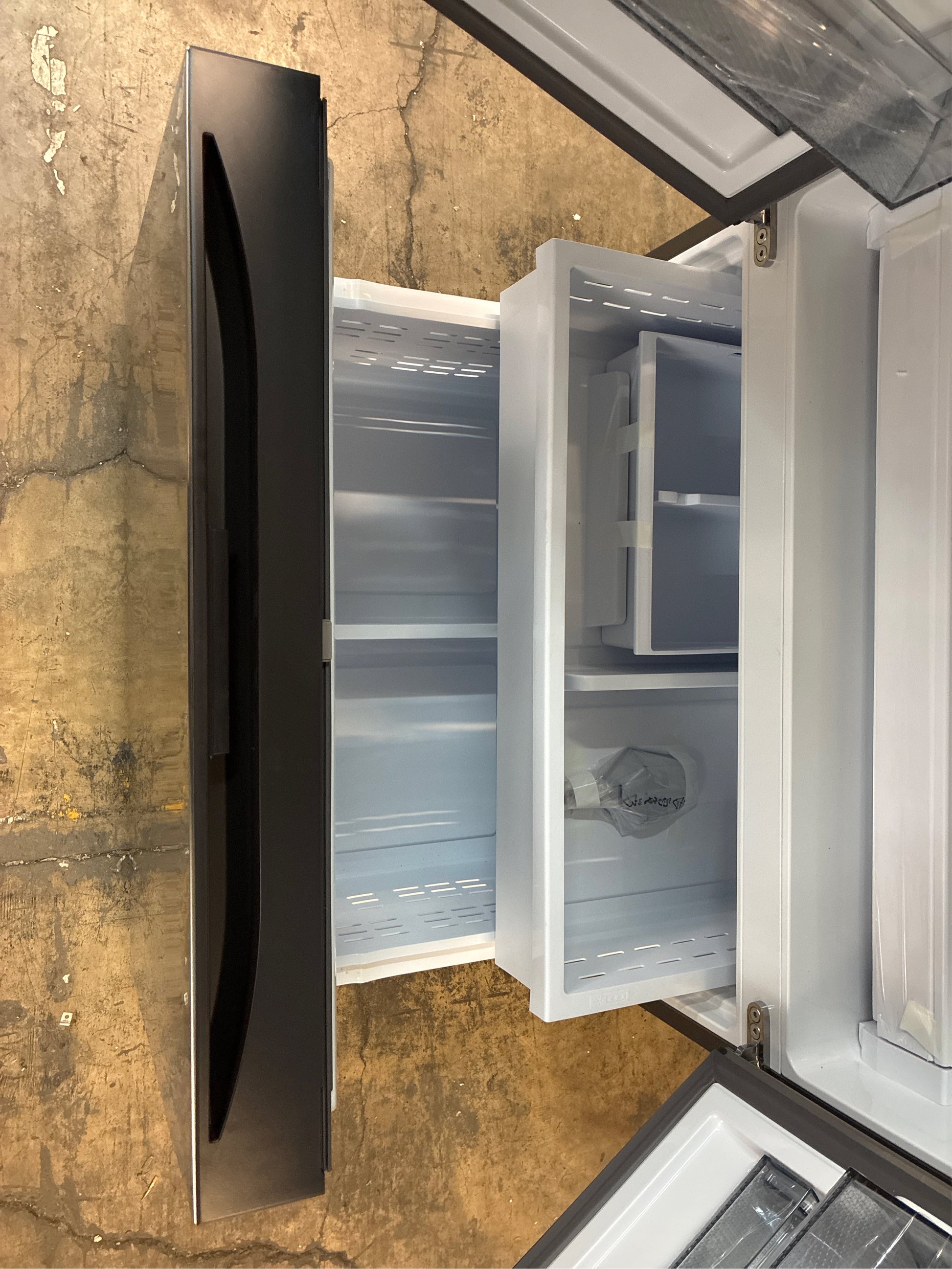Samsung Mega Capacity 4-Door French Door refrigerator with 30 cu. ft. Refrigerator comes with 4 types of ice and modern design. Store more groceries, including big and bulky items. The Dual Auto Ice Maker makes two types of ice - cubed or Ice Bites while the external dispenser offers two additional ice options, curved and crushed.. Appliance Category: Refrigerator. Appliance Series: Not Applicable. Appliance Type: French Door Refrigerator. Built-In and Standard Type: French Door. Color - Appliance Cabinet: Black. Color - Door Handle(s): Stainless Steel. Color/Finish: Stainless Steel. Color/Finish Family: Stainless Steel. Defrost Type: Auto / Cycle. Dispenser Location: External Ice Dispenser,External Water Dispenser. Door Finish: Smooth. Energy Consumption (kWh/year): 786. Energy Efficiency Tier Rating: Not CEE rated. Freezer Capacity (cu. ft.): 9.2 cu ft. Freezer Door Type: Pull Out Drawer. Freezer Features: No Additional Features. Freezer Type: Drawer Freezer. General Features: Door Alarm,LED Light Type. Handle Type: Bar Handle. Hardware Color/Finish: Stainless Steel. Hardware Color/Finish Family: Stainless Steel. Ice Maker Features: Ice Maker,Removable Basket. Ice/Water Dispenser: Both. Indoor/Outdoor: Indoor. Installation Depth: Standard Depth. Installation Type: Free Standing. Number of Doors: 3 Door. Number of Drawers: Single Drawer. Number of Freezer Baskets/Bins: 1 Basket/Bin. Number of Freezer Shelves: No Shelves. Number of Refrigerator Shelves: 4 Shelves. Operational Features: No Additional Features. Power Options: Plug-in. Product Weight (lb.): 306 lb. Refrigeration Dispenser Features: Crushed Ice,Cubed Ice,Dual Ice Maker,Water Filtration. Refrigerator Capacity (cu. ft.): 21.3 cu ft. Remote Access: No Remote Access. Requires Hub?: No Hub Required. Returnable: Non-Returnable. Shelf Material - Freezer: No Shelf. Shelf Material - Refrigerator: Glass. Smart Home: Smart Home Enabled. Smart Home Protocol: Wi-Fi. Storage Features: Adjustable Door Storage,Adjustable Shelves/Racks. Temperature Control Type: Internal Digital. Total Capacity (cu. ft.): 30.5 cu ft. Voice Control Hub Required: No Voice Control. Water Filter Replacement Model#: HAF-QIN. Works With: Homey, Samsung SmartThings. Certifications and Listings: Energy Star. Depth (Excluding Handles) (in.): 33.875 in. Depth (Including Handles) (in.): 36.25 in. Depth (Less Door) (in.): 29.4375 in. Depth With Door Open 90 Degrees (in.): 44 in. Height to Top of Door Hinge (in.): 70 in. Height to Top of Refrigerator Case (in.): 68.875 in. Product Depth (in.): 36.25 in. Product Height (in.): 70 in. Product Width (in.): 35.75 in. Refrigerator Width (in.): 35.75 in. Installation Depth: Standard Depth. Total Capacity (cu. ft.): 30.5 cu ft. Height to Top (in.): 68.875 in. Ice Maker Features: Ice Maker. No of Doors: 3 Door. Dispenser Features: Cubed Ice. Depth (Excluding Handles) (in.): 33.875 in. Dispenser Features: Water Filtration