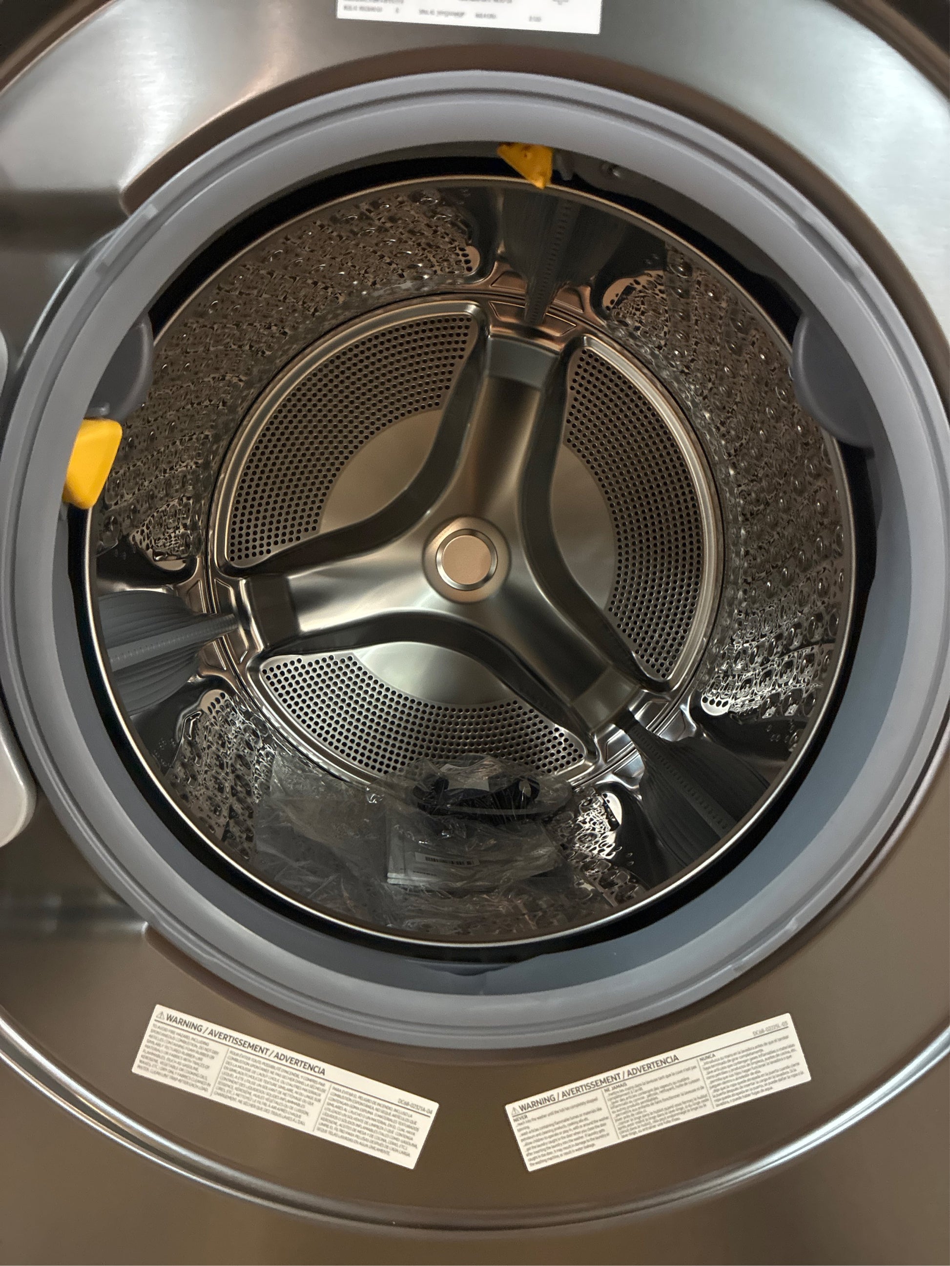 The Bespoke AI Laundry Combo machine is the industry's fastest and largest All-in-One Combo washer & dryer.* It washes and dries clothes in one machine in 98 minutes with the Super Speed cycle.** *Among W/D Combo with heat pump dryers, based on a 10 LB. DOE load.**Based on using a Super Speed cycle with an 10lb DOE load (cotton 50% + polyester 50%). Dryer only: with a Residual Moisture Content of 48% after a wash cycle.. Amperage (A): 15 A. Appliance Series: Samsung BESPOKE. Appliance Type: Washer & Dryer Combo. Capacity - Dryer (cu. ft.): 5.3. Color/Finish: Dark Steel. Color/Finish Family: Stainless Look. Control Type: Digital. Door Material: Glass. Door Style: Left Swing. Dry Cycles: Active Wear,Air Fluff,Auto Dry,Bedding,Delicates,Heavy Duty,Permanent Press,Sanitize,Timed Dry,Towels and Sheets,Wool. Dryer Door Style: Left Swing. Dryer Features: Adjustable End-of-Cycle Signal,Adjustable Legs,Anti Vibration,Automatic Temperature Control,Condenser,Control Sounds On/Off,Delay Start,Digital Cycle Countdown,Door Window,Energy Saver,Front Control,Heat Pump,Interior Light,Lint Filter,Moisture Sensor,Remote Diagnostics,Sensor Dry,Small Load,Spin Speed Option,Timed Dry,Wi-Fi Enabled. Dryer Fuel Type: Electric. Energy Consumption (kWh/year): 103. Energy Efficiency Tier Rating: Tier III. Exhaust Vent Location: No Exhaust Vent. Fuel Type: Electric. Hardware Color/Finish: Dark Steel. Hardware Color/Finish Family: Stainless Look. Included: Power Cord. Lint Filter Location: Front. Maximum Spin Speed (RPM): 1200. Number of Drying Cycles: 4. Number of Drying Temperatures: 4. Number of Rinse Cycles: 23. Number of Rinse Temperatures: 5. Number of Wash Cycles: 23. Number of Wash Speeds: 5. Number of Wash Temperatures: 5. Power Options: Plug-in. Product Weight (lb.): 317.5 lb. Remote Access: Remote Access. Requires Hub?: No Hub Required. Returnable: Non-Returnable. Smart Home: Smart Home Enabled. Smart Home Protocol: Wi-Fi. Steam Function: Steam. Tub/Drum Material: Stainless Steel Drum. Vent Type: Ventless. Voice Control Hub Required: Voice Control via Proprietary App. Voltage (volts): 120. Wash Cycles: Active Wear,Bedding,Cold,Colors,Delicates,Heavy Duty,Normal,Permanent Press,Rinse & Spin,Sanitize,Small Load,Speed Wash,Steam,Towels and Sheets,Whites. Washer Dispensers: Bleach,Fabric Softener,Liquid Detergent. Washer Features: Adaptive Fill,Anti Vibration,Automatic Detergent Dispenser,Automatic Temperature Control,Control Lock,Control Sounds On/Off,Cycle Status Indicator,Delay Start,Door Window,End-Of-Cycle Signal,Front Control,High-Efficiency Detergent Required,Interior Light,Remote Diagnostics,Water Heater,Wi-Fi Enabled. Works With: Alexa, Google Assistant, Homey, Samsung SmartThings. Certifications and Listings: Energy Star. Capacity - Washer (cu. ft.): 5.3. Depth With Door Open 90 Degrees (in.): 56.3 in. Door Opening Height (In.): 23.46. Door Opening Width (In.): 23.48. Product Depth (in.): 34.5 in. Product Height (in.): 43.75 in. Product Width (in.): 27 in. Capacity (cu. ft.): 5.3. Voltage (volts): 120. Features: Lint Filter. Features: Sensor Dry. Vent Type: Ventless. Features: Energy Saver. Features: Interior Light. Features: Timed Dry