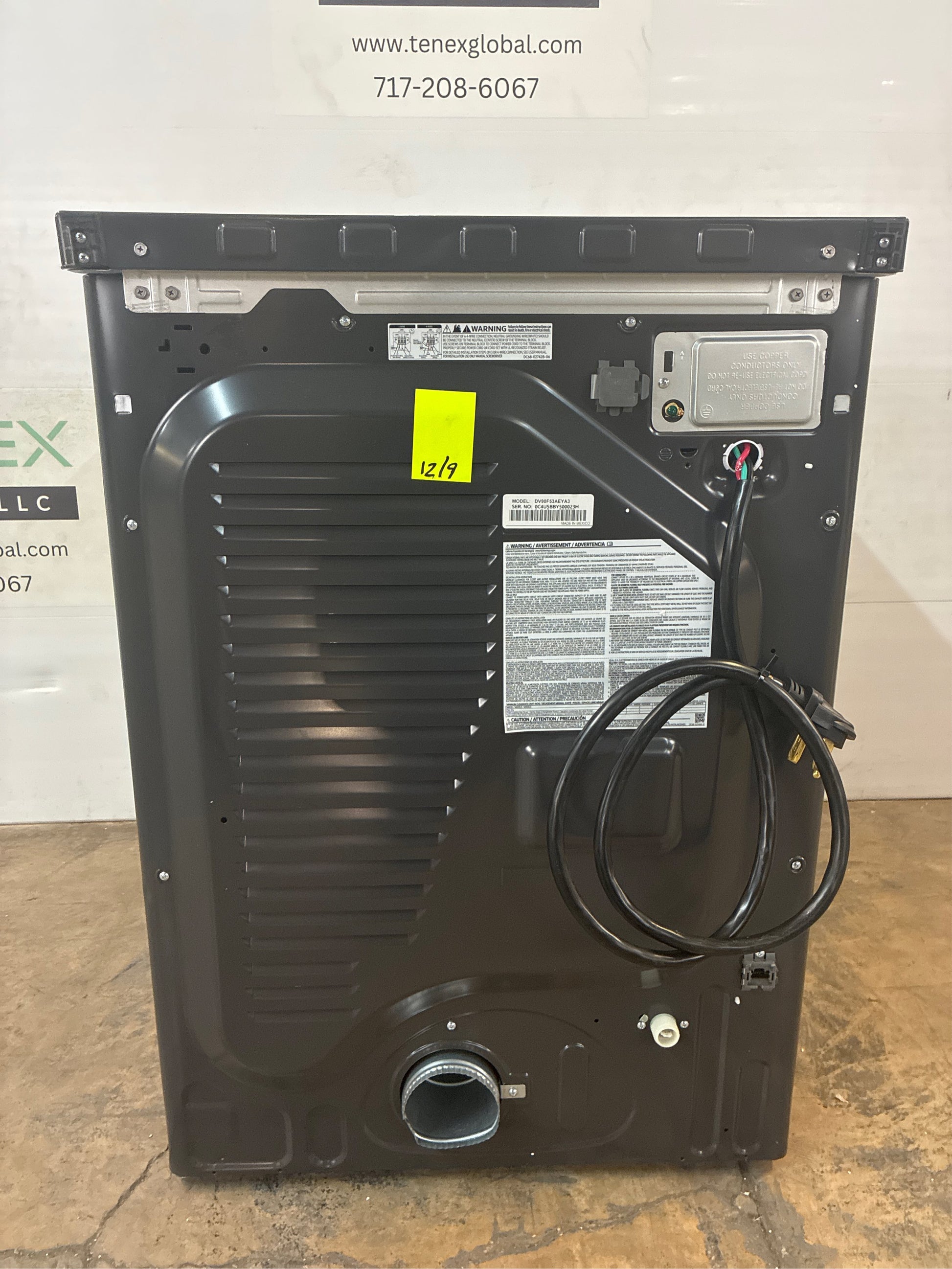 The Samsung Bespoke AI Front Load Dryer with ultra-capacity brings innovation and convenience together to make laundry less of a chore. With smart features like an AI Home LCD display that's easy to control and AI OptDry+ which takes the guesswork out of cycle selection, drying couldn't be easier. Use Super Speed Dry to dry a full load in 30 minutes for a simple and fast laundry experience.. Amperage (A): 30 A. Appliance Category: Dryer. Appliance Series: Samsung BESPOKE. Appliance Type: Electric Dryer. Capacity - Dryer (cu. ft.): 7.6. Color/Finish: Ivory. Color/Finish Family: White. Control Type: Digital. Door Material: Glass. Door Shape: Round Door. Door Style: Right Swing. Dry Cycles: Active Wear,Air Fluff,Delicates,Heavy Duty,Permanent Press,Sanitize,Timed Dry,Towels and Sheets,Wool,Wrinkle Free. Dryer Drum Material: Stainless Steel Drum. Dryer Features: Damp Alert,Interior Light,Lint Filter,Sensor Dry,Wi-Fi Enabled. Dryer Fuel Type: Electric. Exhaust Vent Location: Bottom,Left Side,Rear,Right Side. Hardware Color/Finish: Ivory. Hardware Color/Finish Family: White. Included: Short Hose,Y-Connector. Lint Filter Location: Front. Matching Washer Type: Front Load Matching. Number of Drying Cycles: 20. Number of Drying Temperatures: 5. Pedestal Model#: WE602NY. Product Weight (lb.): 121.3 lb. Returnable: Non-Returnable. Stackable: Stackable. Stacking Kit Model#: SKK-RWG. Steam Function: Steam. Vent Type: Vented. Voltage (volts): 240. Certifications and Listings: Energy Star. Depth With Door Open 90 Degrees (in.): 53.12 in. Door Opening Height (In.): 23.46. Door Opening Width (In.): 23.48. Product Depth (in.): 31.43 in. Product Height (in.): 38.75 in. Product Width (in.): 27 in. Capacity (cu. ft.): 7.6. Voltage (volts): 240. Vent Type: Vented. Features: Sensor Dry. Features: Lint Filter. Width (in.): 27 in. Features: Interior Light. Stackable: Stackable