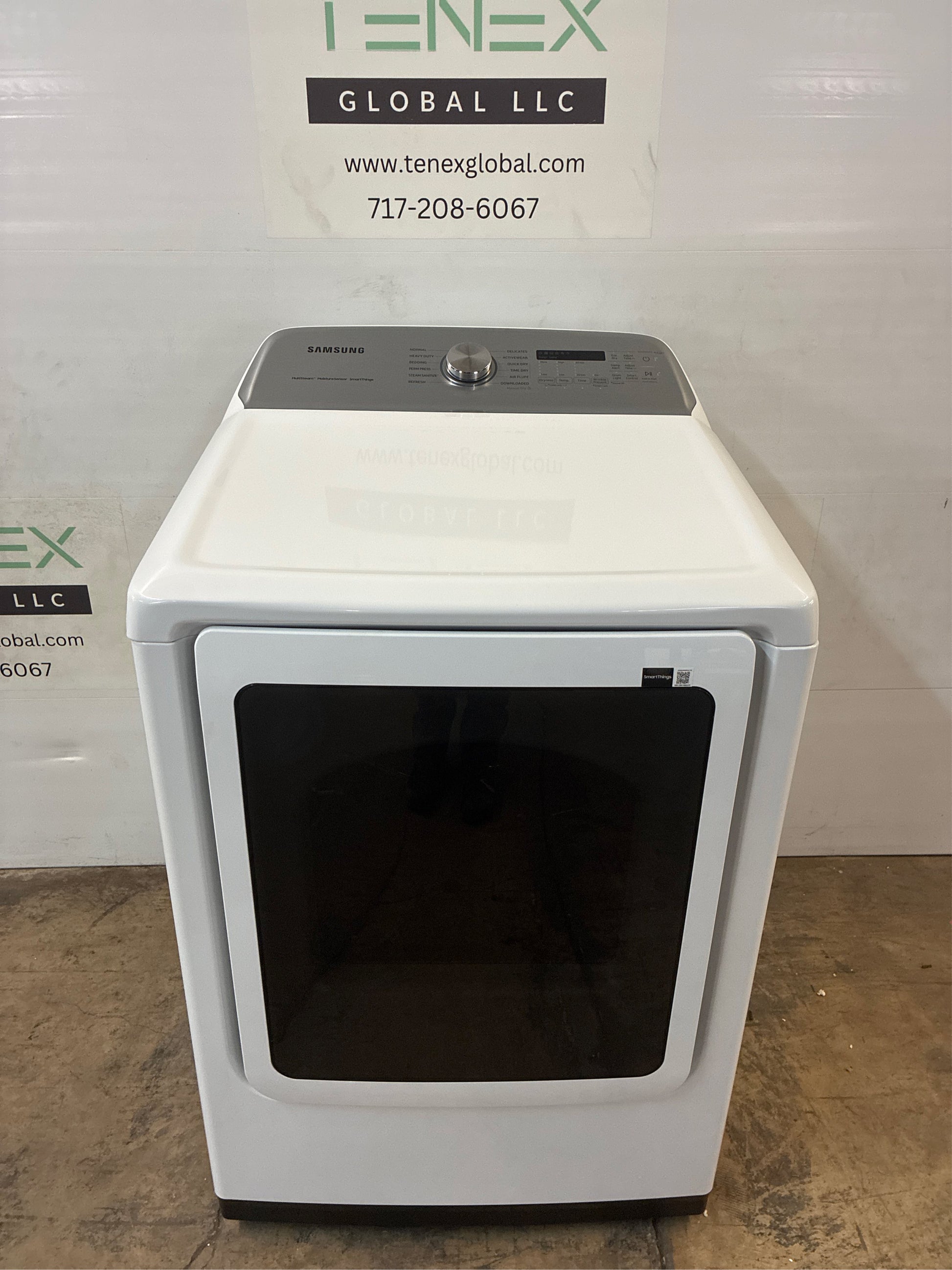 Samsung's new Smart Dryer has integrated Wi-Fi that allows you to remotely start or stop your cycle, schedule laundry on your time, and receive end of cycle alerts and more, right from your smartphone. Also, the Steam Sanitize+ cycle eliminates 99.9% of germs and bacteria while relaxing and smoothing away wrinkles from everyday wear. Continuously monitors the condition of the air duct to ensure it's operating safely and efficiently. Requires wireless network, Samsung account and SmartThings App. The Samsung SmartThings App supports Android OS 4.0 (ICS) or later which is optimized for Samsung smartphones (Galaxy S and Galaxy Note series). This app also supports iOS 7 or later for iPhone models. SmartThings App available in App Store and Play Store. Based on internal testing and independently verified by Intertek.. Put an end to stray socks or smaller laundry items that are hard to spot, an interior drum light brightly illuminates your laundry and the rest of the interior, so you can quickly and safely check your dryer's contents. Have peace of mind with antimicrobial technology that protects high-touch areas of your dryer. Vent Sensor continually monitors the condition of your dryer's air duct to ensure it is operating safely and efficiently, it automatically notifies you when it is time for a cleaning and prompts you to check for obstructions, so you can always maintain optimum drying performance. Steam Sanitize cycle removes 99.9% of germs and bacteria, over 95% of pollen, and kills 100% of dust mites, Multi-Steam technology steams away wrinkles, odors, and static. Automatically optimizes the time and temperature of your drying cycle to protect your clothes from heat damage, while avoiding excess energy use. Choose the direction your dryer door opens to better suit your laundry room layout. Stop worrying about lint or fluff building up and blocking your dryer's air intake, the Lint Filter Indicator light on the control panel will provide you with a helpful reminder when it is time to clean the filter, so your dryer maintains optimal performance. Click here for more information on Electronic Recycling Programs . Requires Samsung Smart Washer/Dryer App, the Samsung Smart Washer/Dryer App supports Android OS 2.3.6 or later and iOS 3 or later for iPhone models, Samsung Smart Washer/Dryer App available in App Store and Play Store. Aiding the visually and hearing impaired, your washer and dryer now features audio assistance, playing a different sound for each option, and braille right next to key control panel buttons. Based on internal testing and independently verified by Intertek. Easy troubleshooting from the convenience of your smartphone, Smart Care interacts with your washer and dryer to perform an immediate diagnosis and offer quick solutions. Fewer loads, less time in the laundry room, and more time doing the things you love. Antimicrobial treatment does not protect users or other items against bacteria, viruses, germs, or other disease organisms. Wi-Fi connected so you can receive end of cycle alerts, remotely start or stop your drying, schedule cycles on your time, and more, right from your smartphone with the SmartThings App. . Requires wireless network, Samsung account and SmartThings App, the Samsung SmartThings App supports Android OS 4.0 (ICS) or later which is optimized for Samsung smartphones (Galaxy S and Galaxy Note series), this app also supports iOS 7 or later for iPhone models, SmartThings App available in App Store and Play Store. Sensor Dry icon turns on when in use
