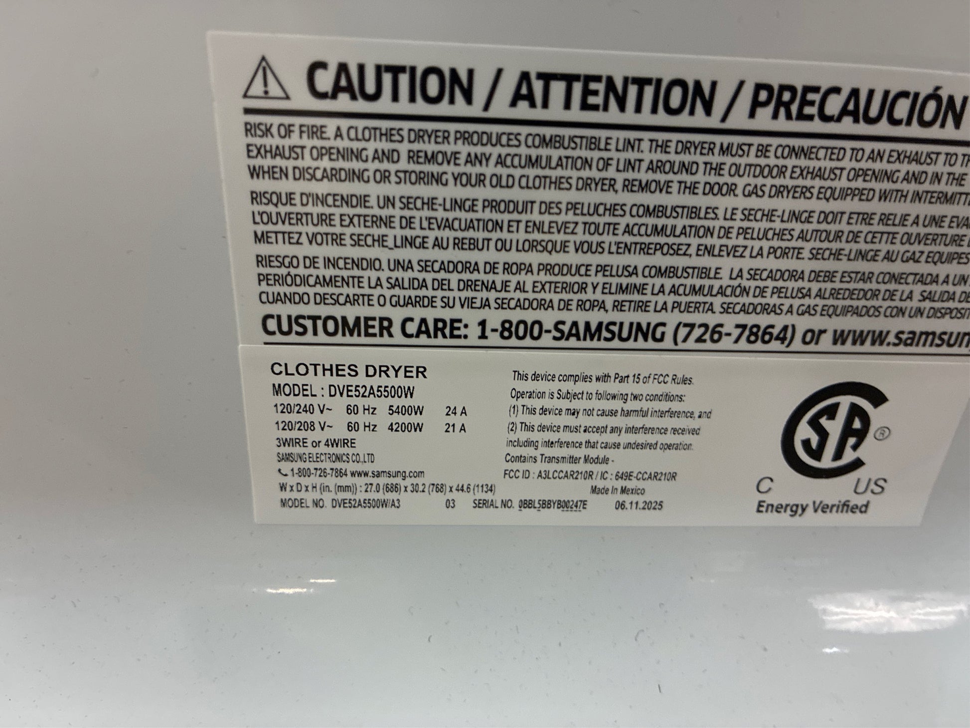 Model: DVE52A5500W